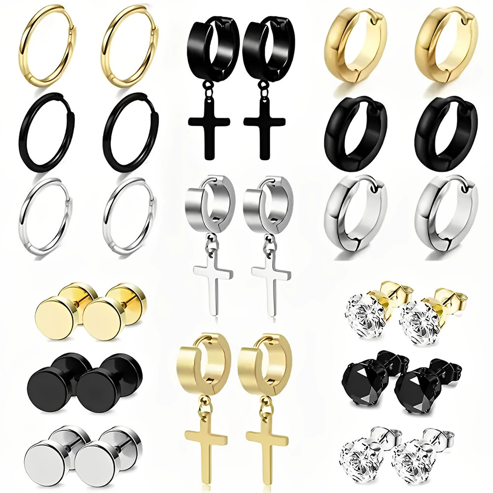 Europe and the United States cross-border Amazon trend hot men's stainless steel zircon cross pendant earrings ear clip suit