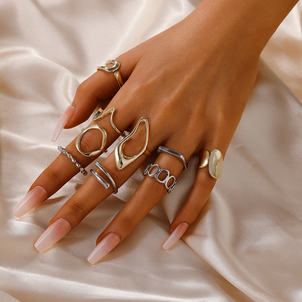 European and American best-selling retro geometric ring alloy personality hip-hop punk opening all-match ring women's jewelry
