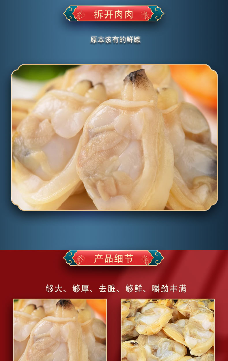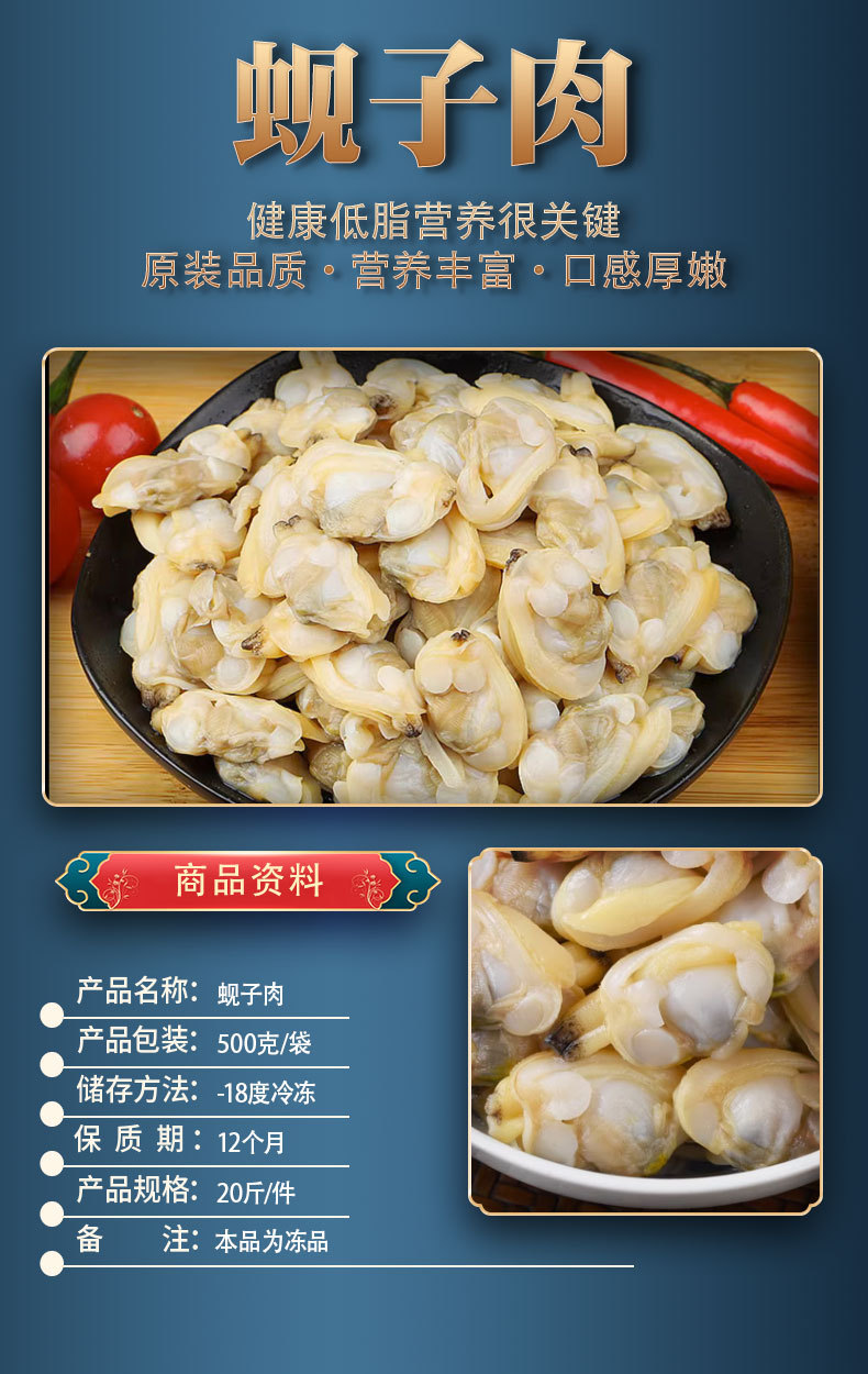 Raw dongyang clam meat without sand: Abalone meat, oysters, fresh frozen raw dan dong clam meat, sand-free fresh flower-claw meat, clam meat, frozen gala meat, shell meat puree, variegated clams