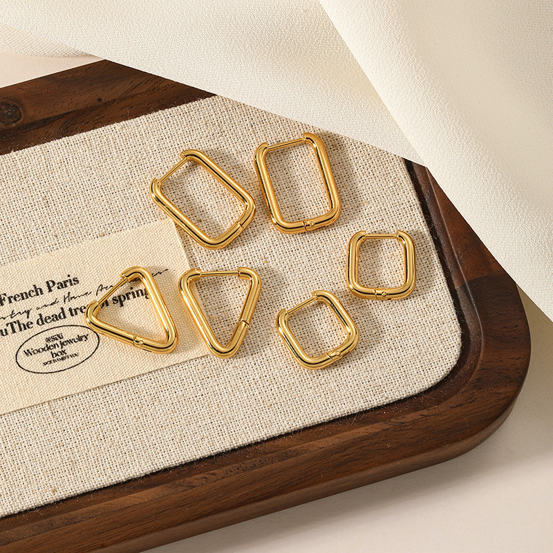 Cross-border 18K stainless steel personalized triangle earrings men and women's European and American titanium steel fashion all-match earrings earrings women