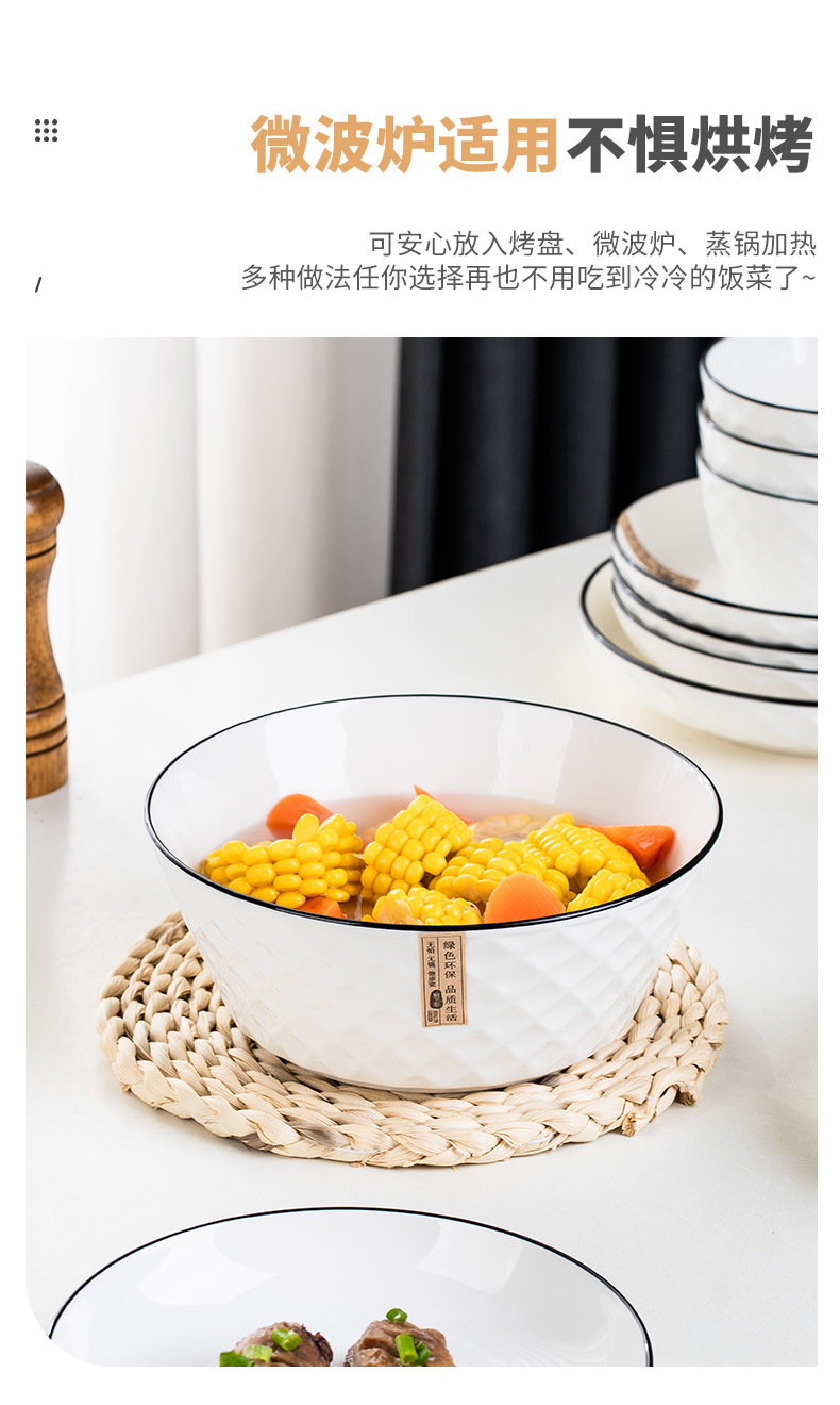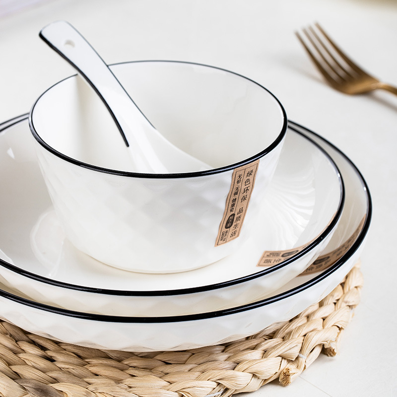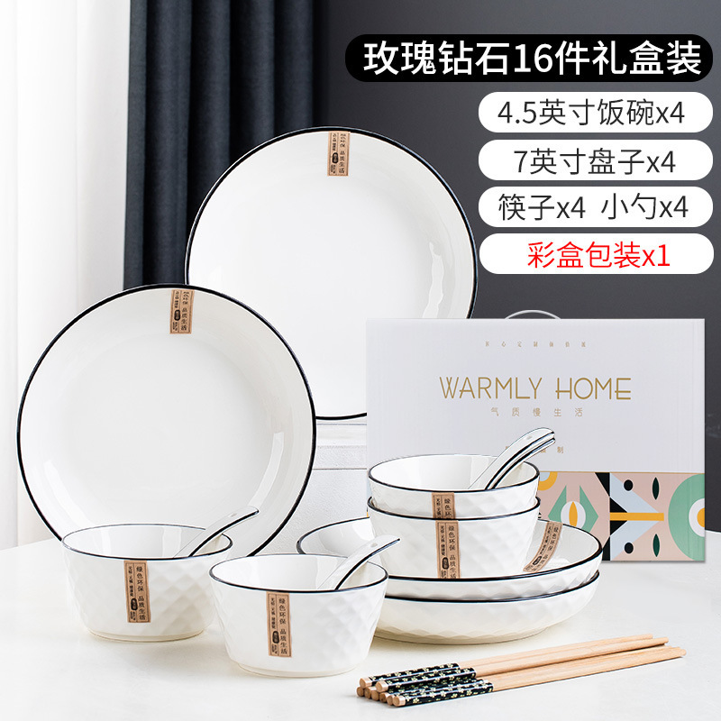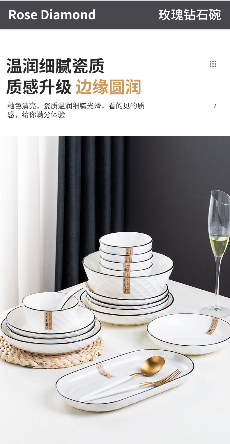 Jingdezhen Ceramic Tableware Japanese Rose Diamond Bowl and Dish Set Household Underglaze Color Tableware Set Complete Gift Set