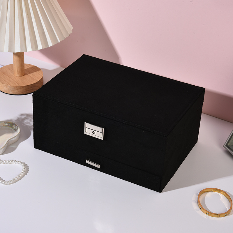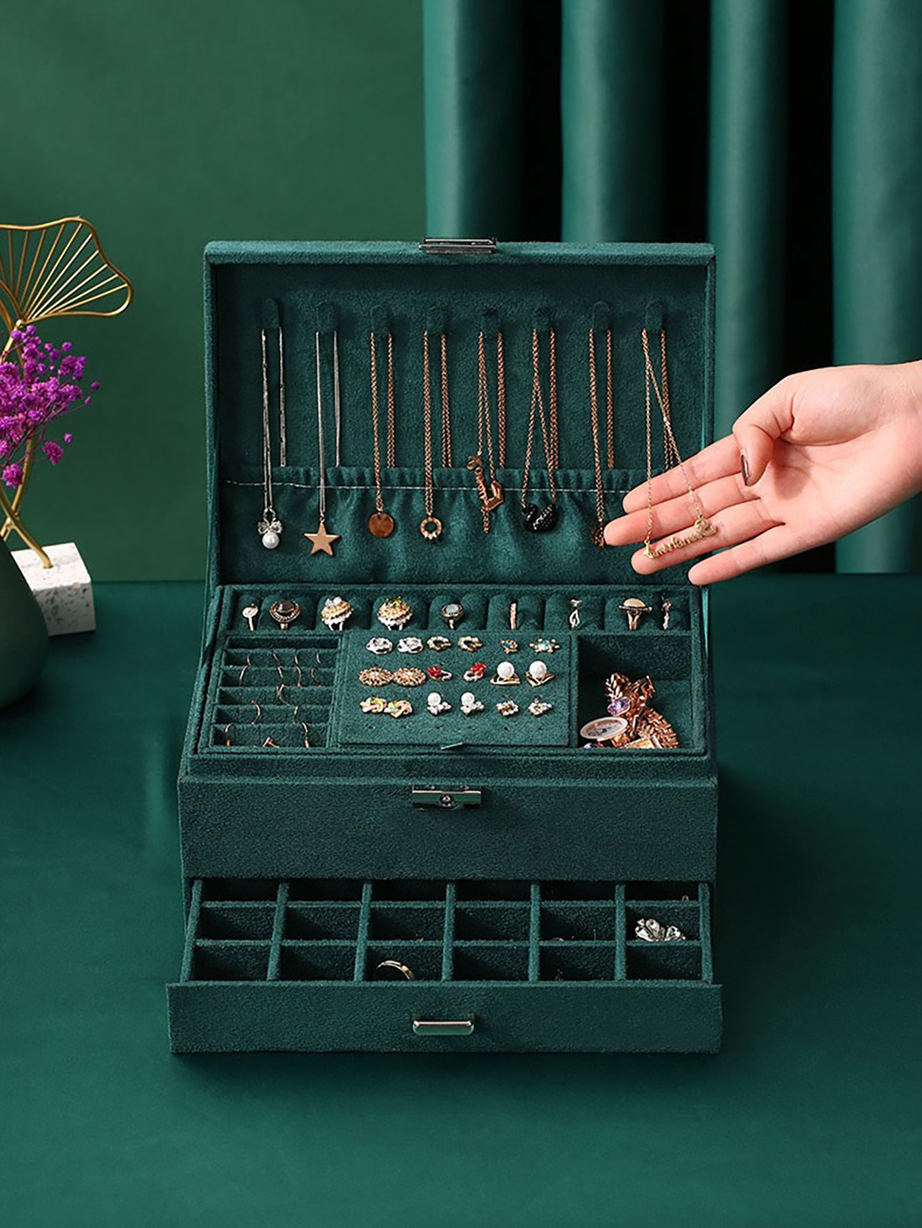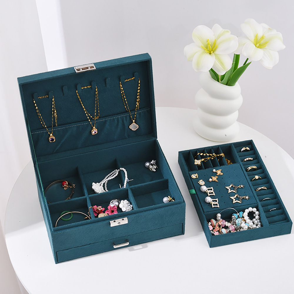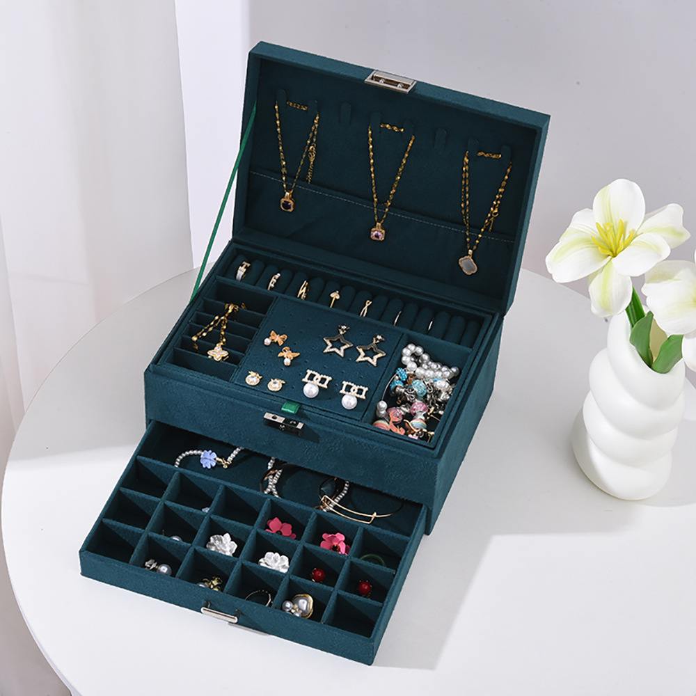 Cross-border Retro Jewelry Box Three-layer Flannel Jewelry Necklace Ring Earrings Jewelry Box Drawer Jewelry Storage Box