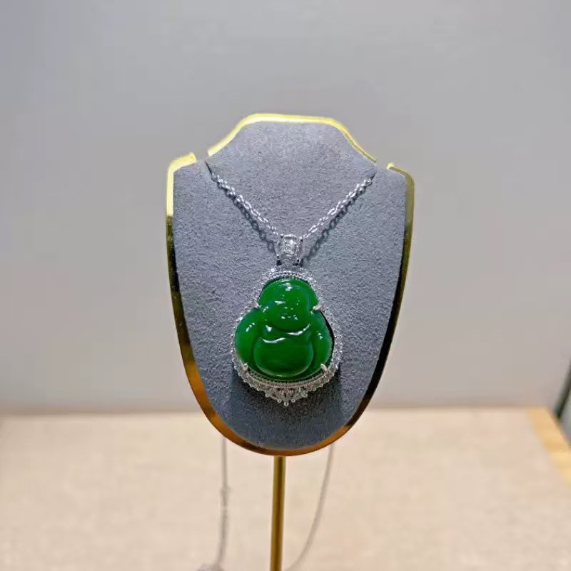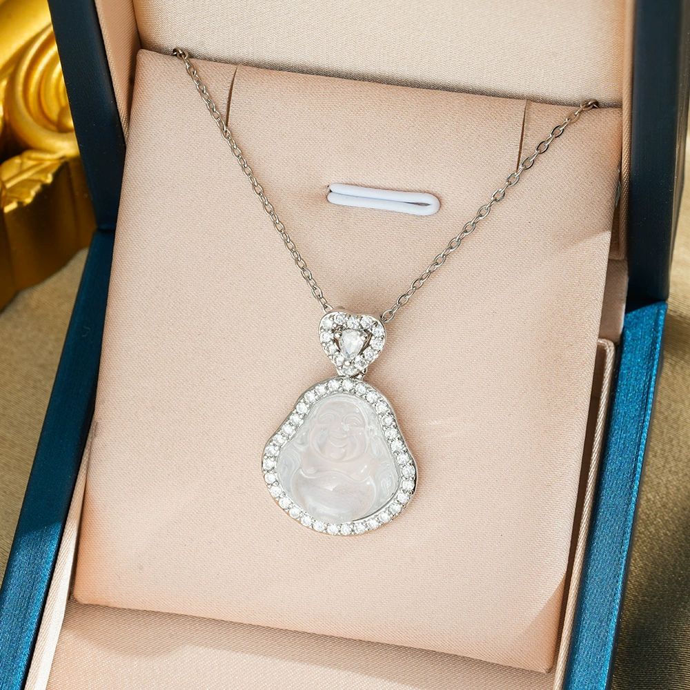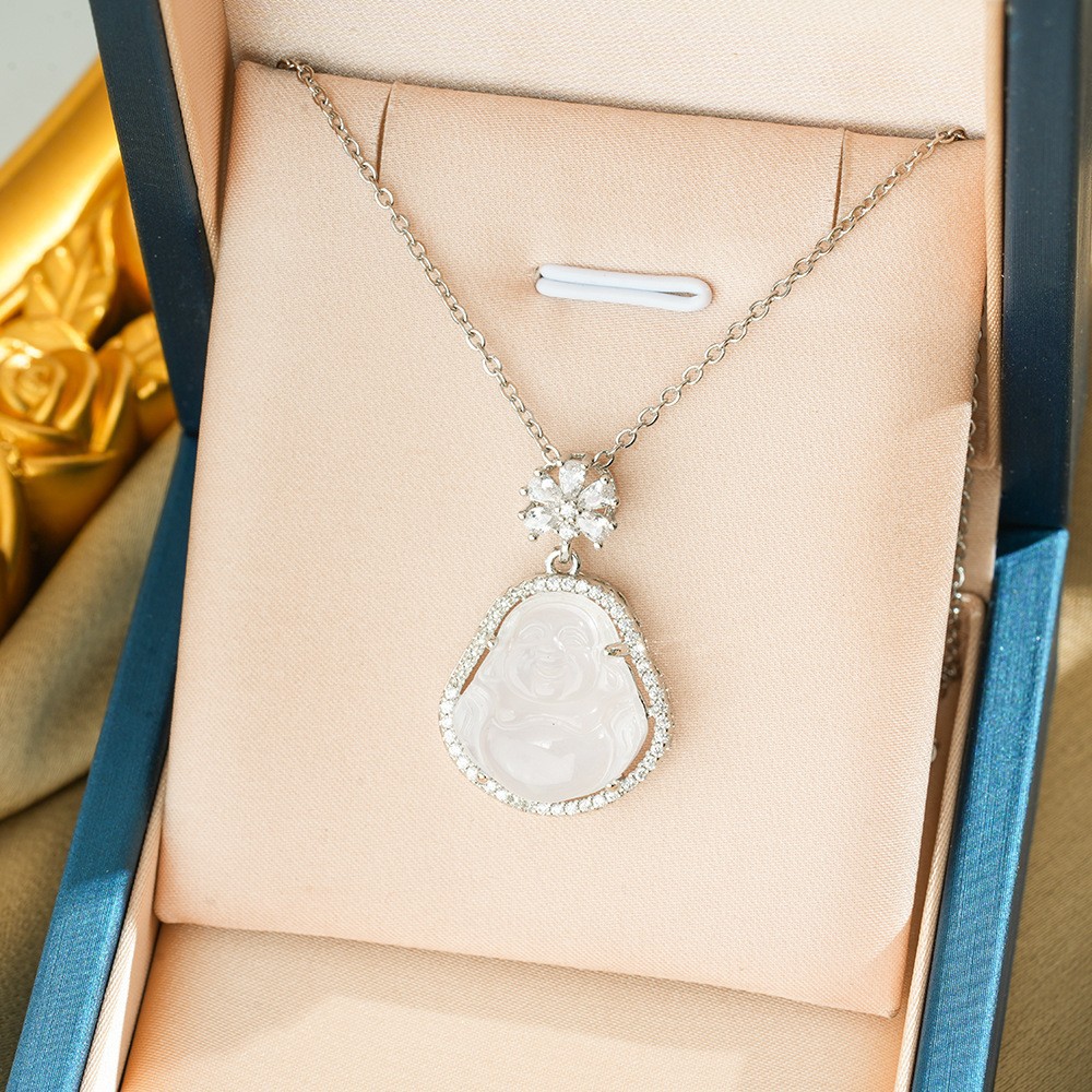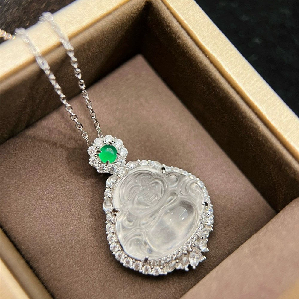 Color: 256-1 great maitreya buddha necklace-silver white green