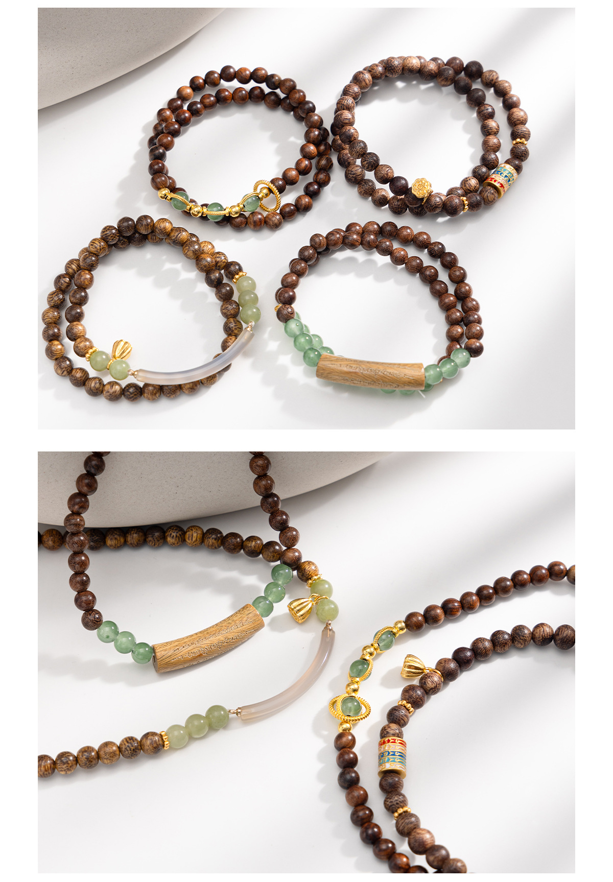 Exquisite Joker New Chinese Style Tao Culture Gold Silk Sandalwood Bracelet Wen Play Transfer Ailwood Black Pear Flower Beaded Bracelet