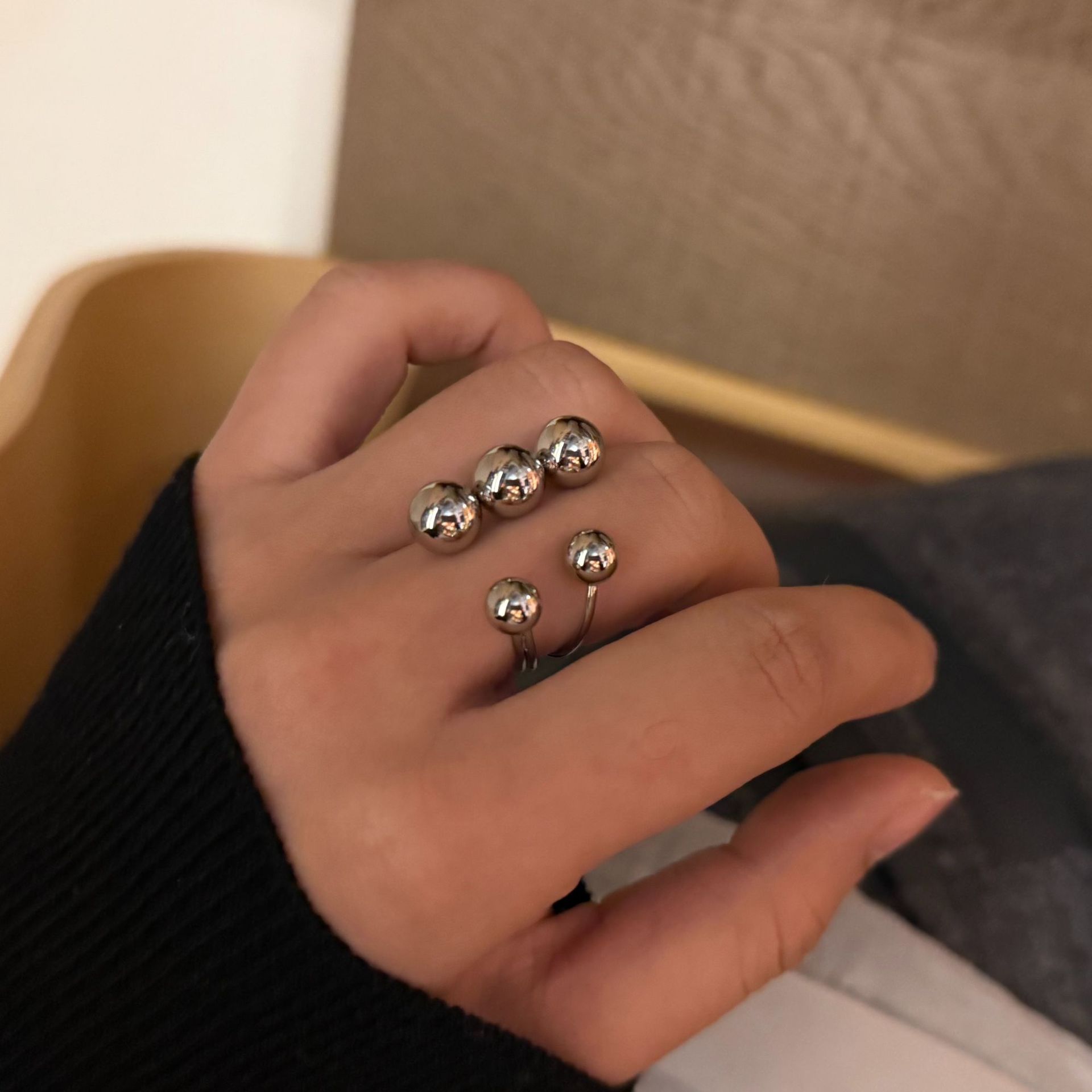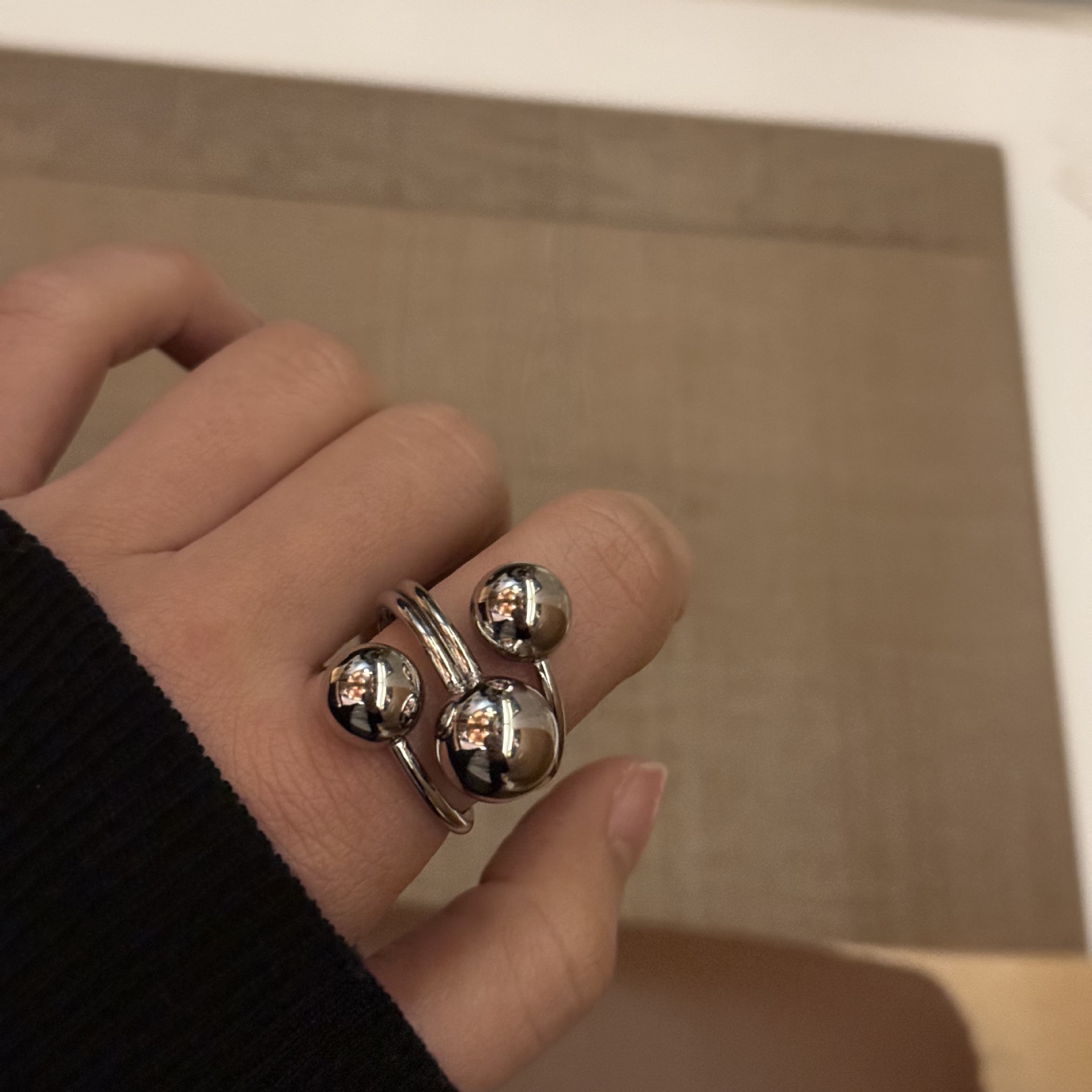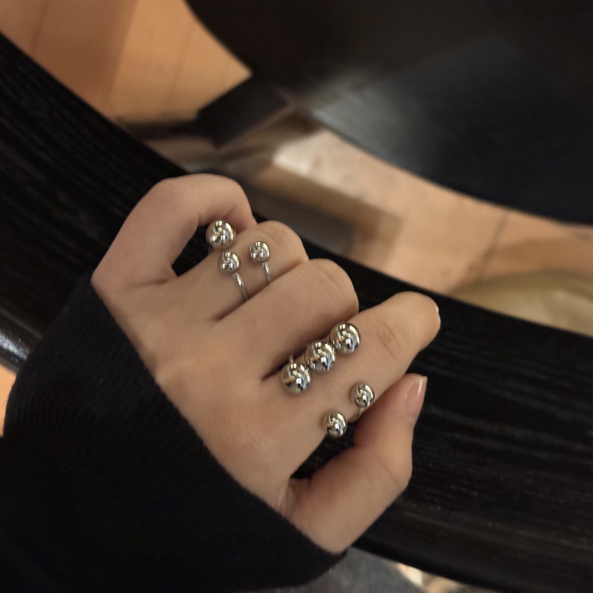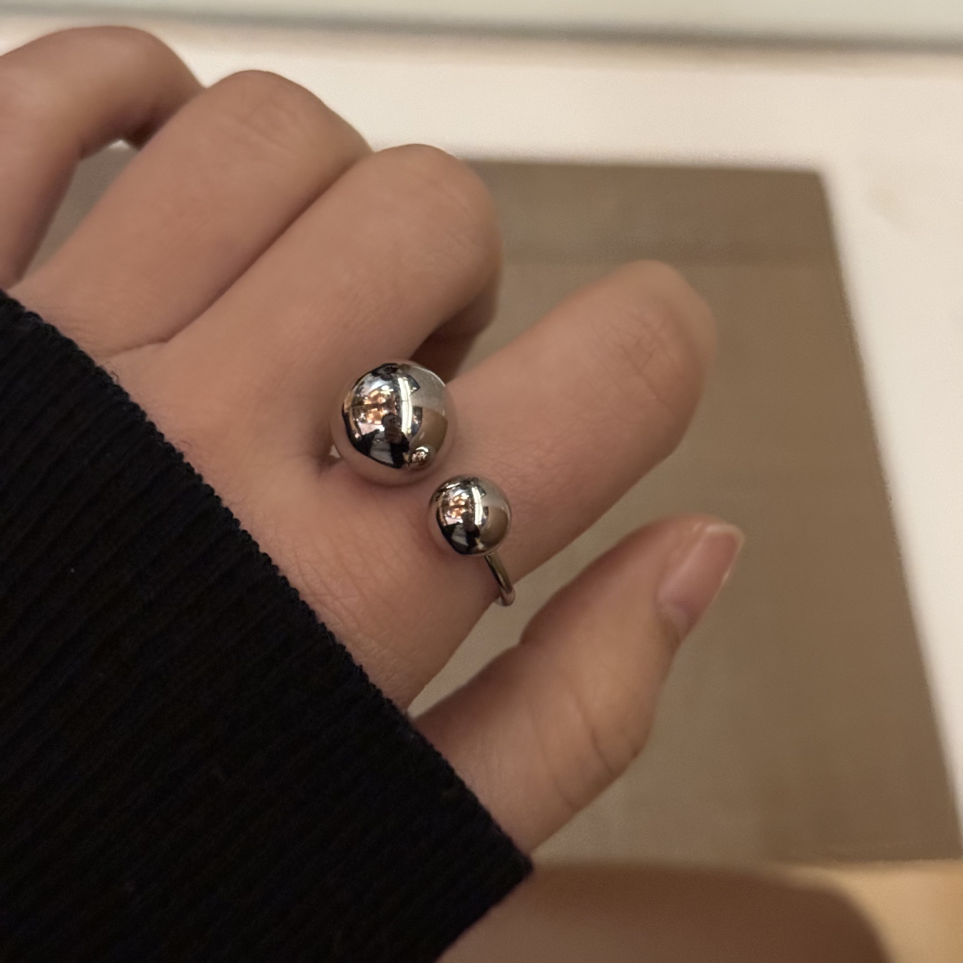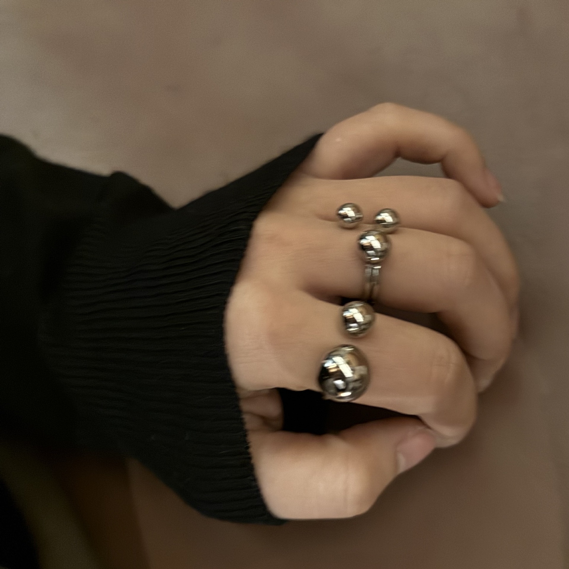 Europe and the United States spherical stainless steel ring women's steel color size ball ring senior sense niche foreign trade accessories ring wholesale