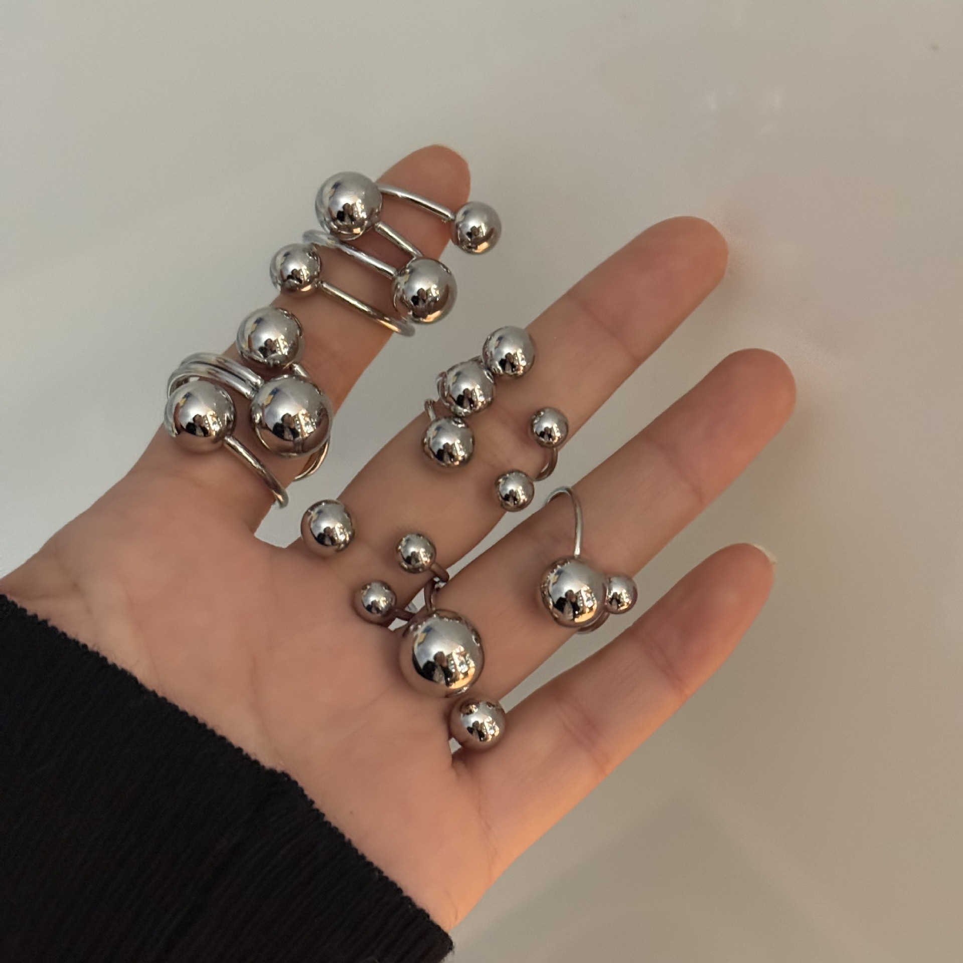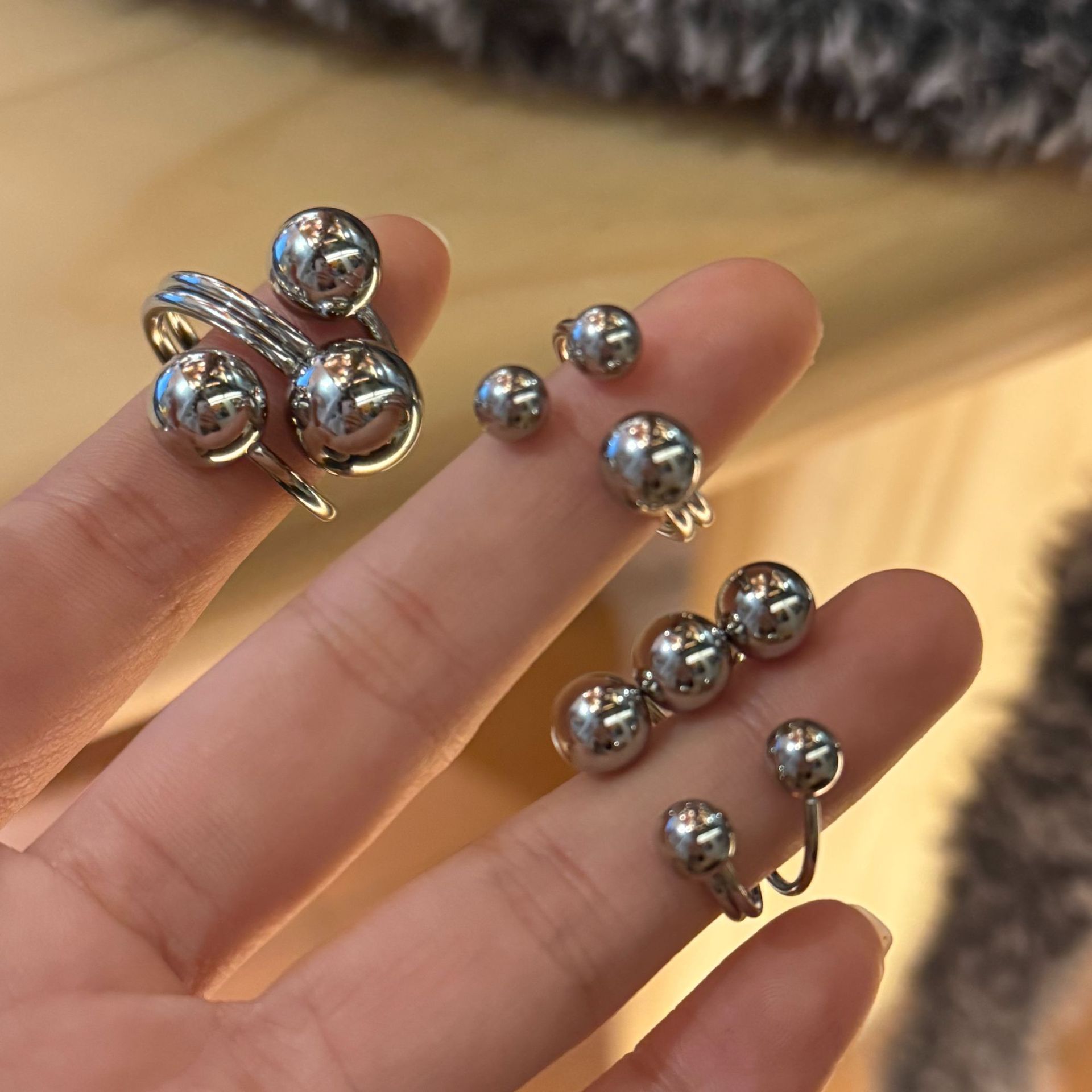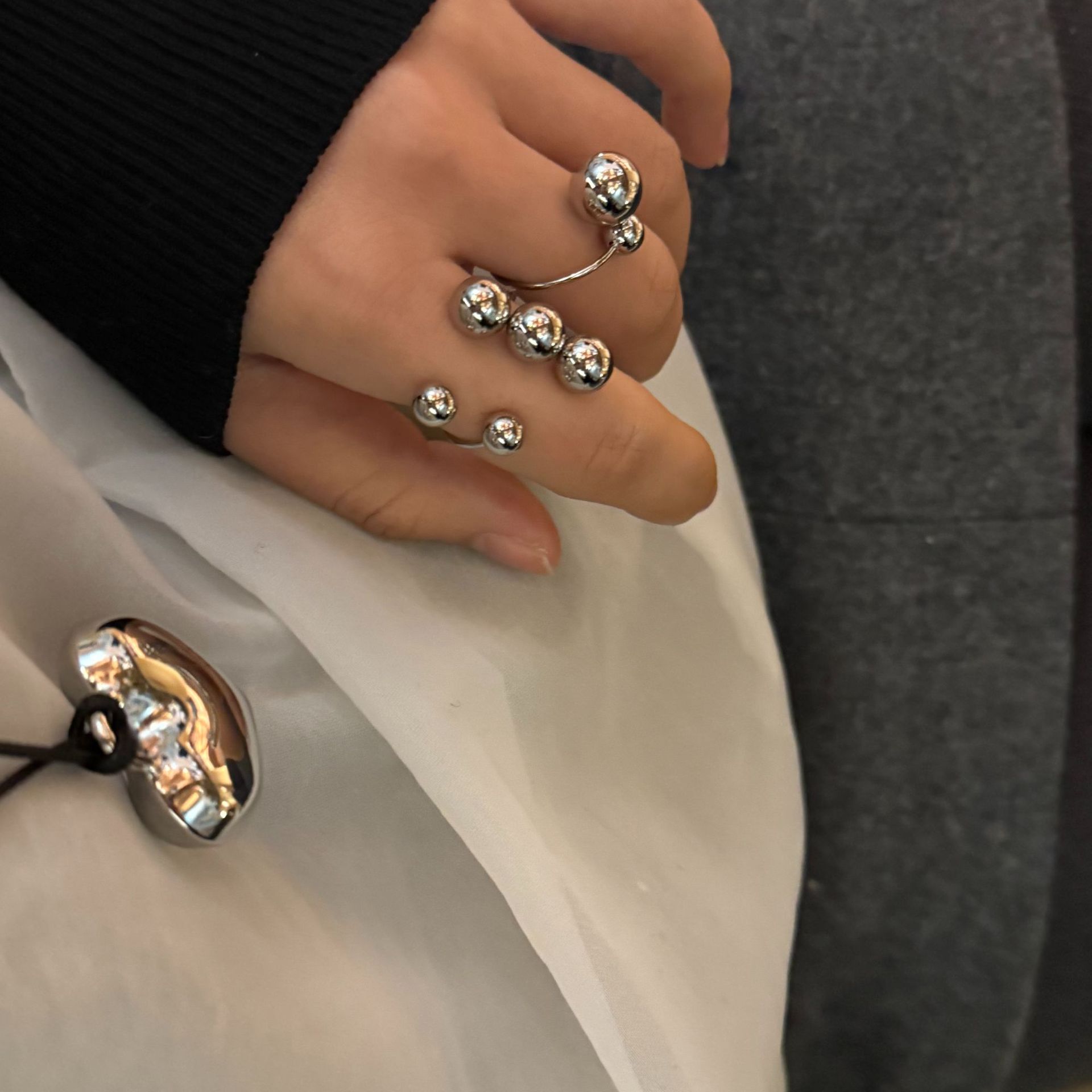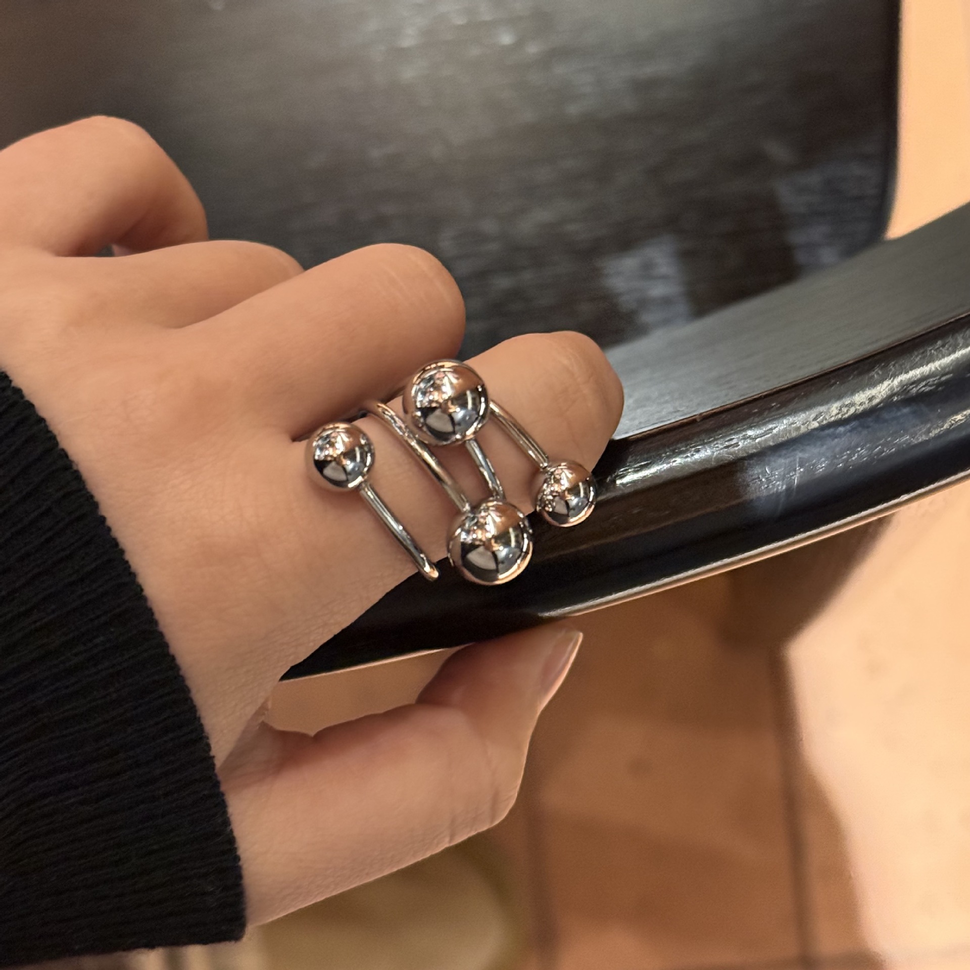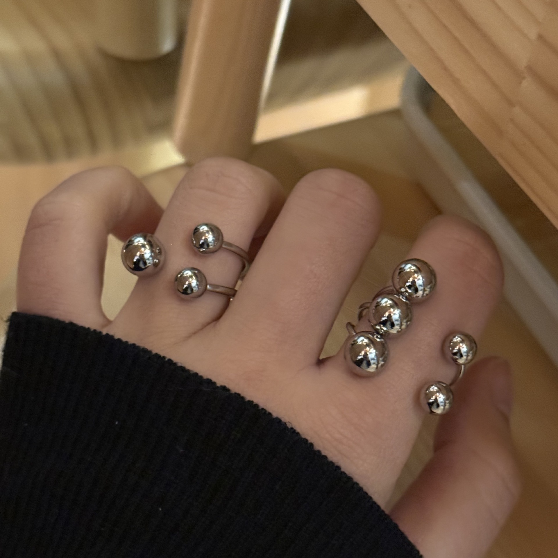 Europe and the United States spherical stainless steel ring women's steel color size ball ring senior sense niche foreign trade accessories ring wholesale