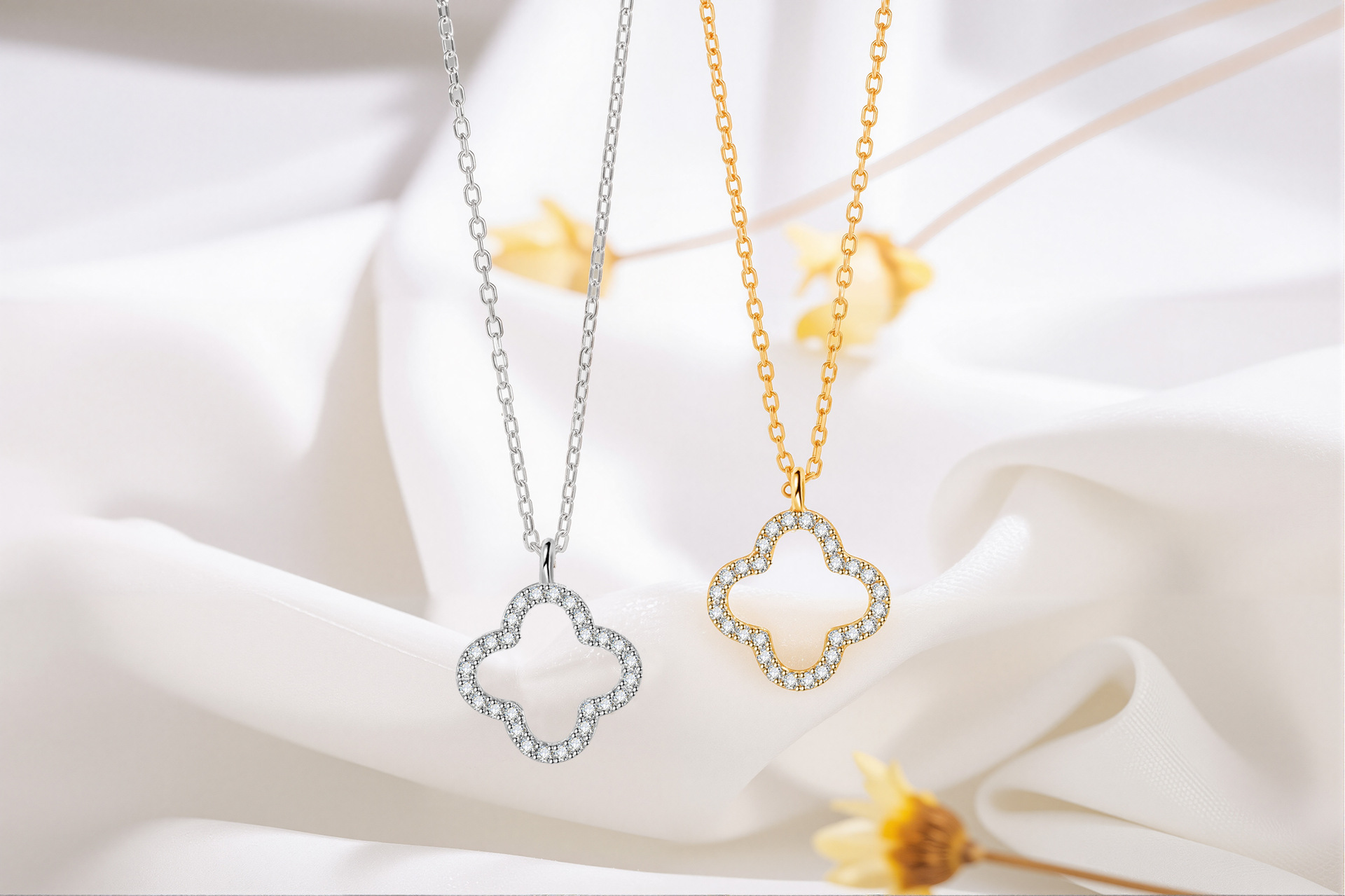 Color: X1163 four-leaf clover necklace, sterling silver, chain length: 40+5cm, weight: 1.69g, white gold