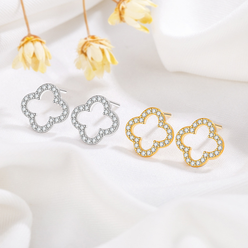 Color: E2254 four-leaf clover earrings, sterling silver, weight: about 0.9 grams, gold color