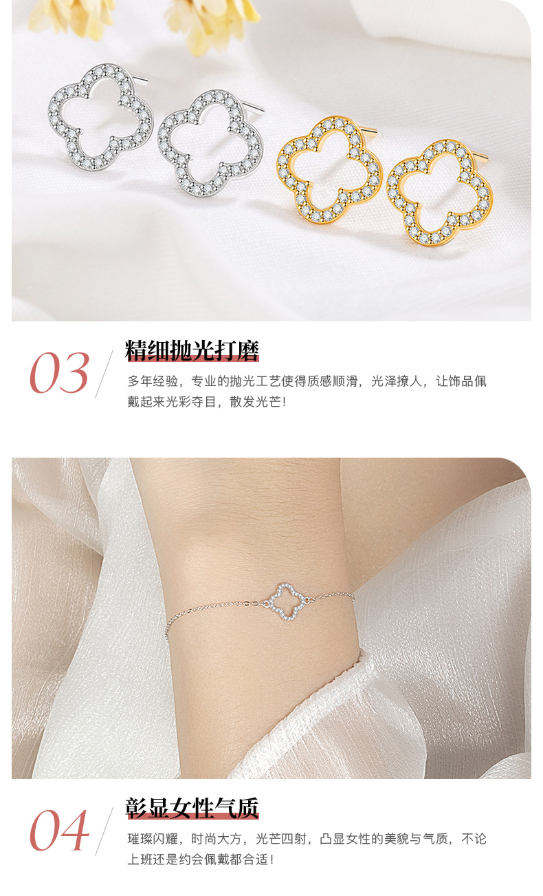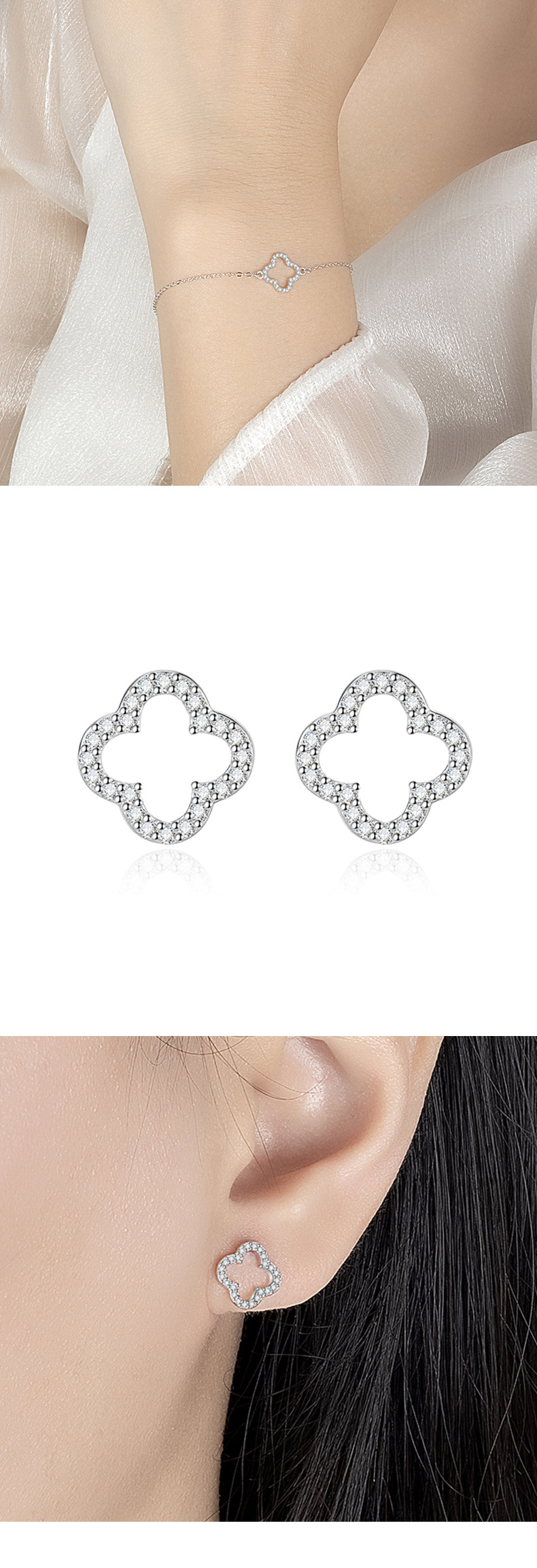 Color: E2254 four-leaf clover earrings, sterling silver, weight: about 0.9 grams, white gold