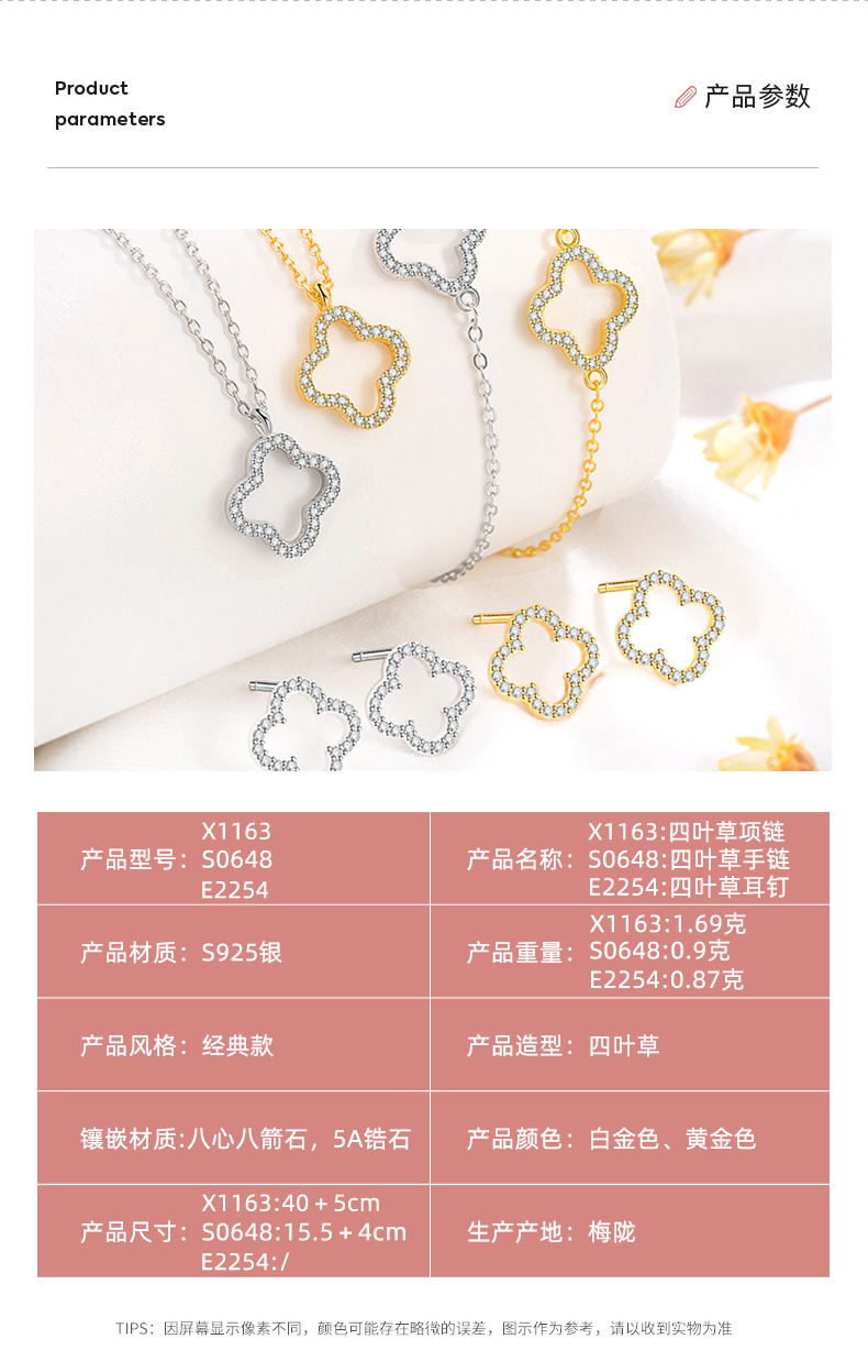 Item number: X1163 four-leaf clover necklace s0648 four-leaf clover bracelet e2254 four-leaf clover earrings
