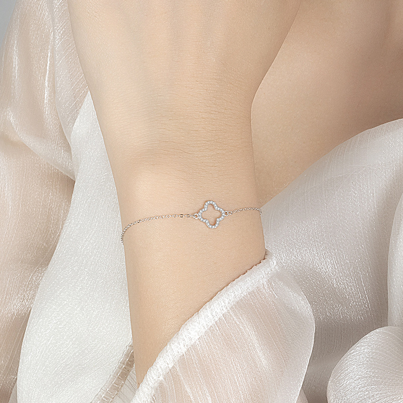 Color: S0648 four-leaf clover bracelet, sterling silver, weight: about 0.9 grams, white gold, chain length: 15.5+4cm