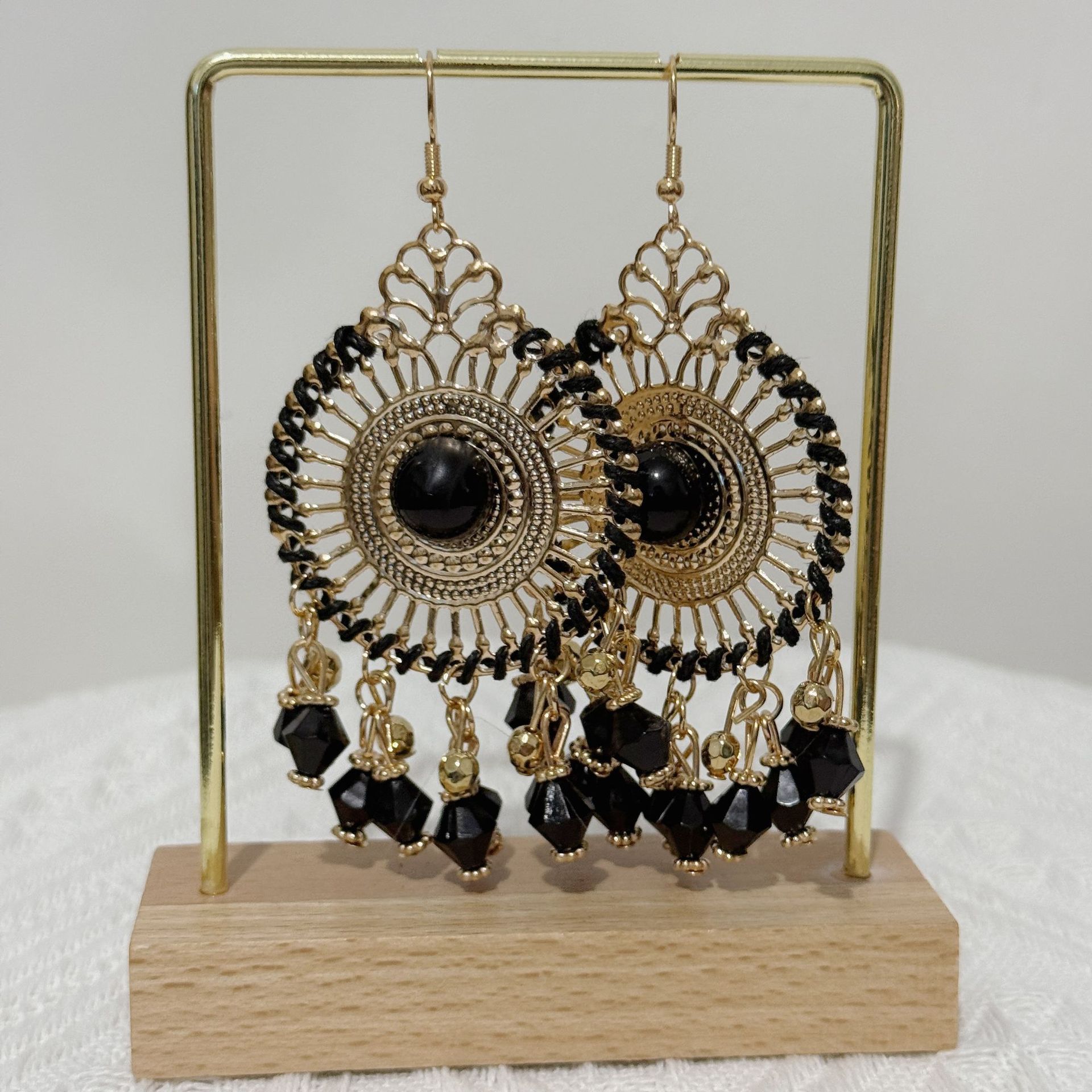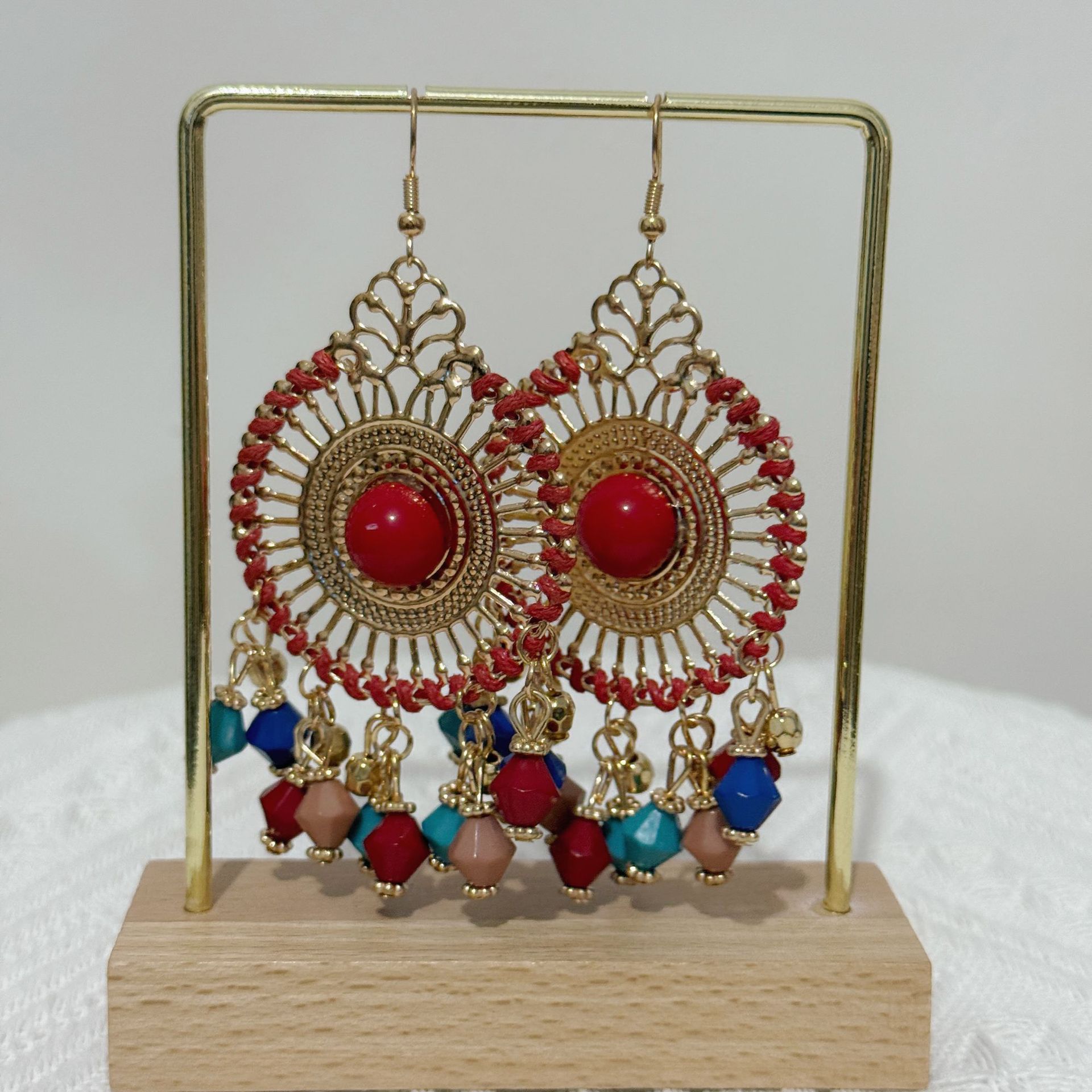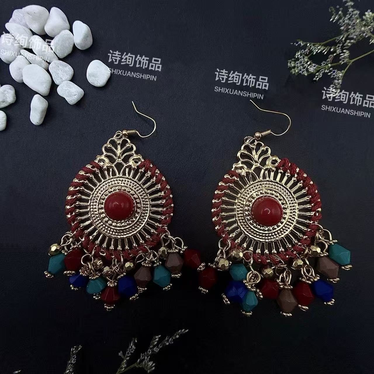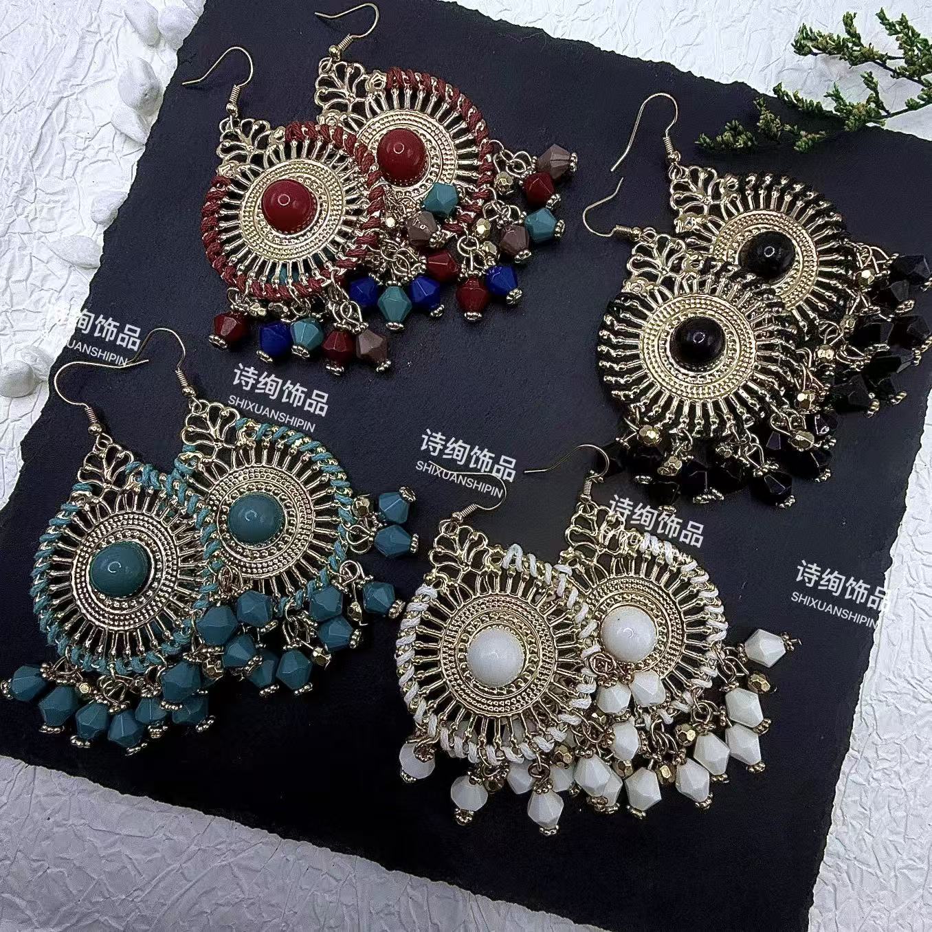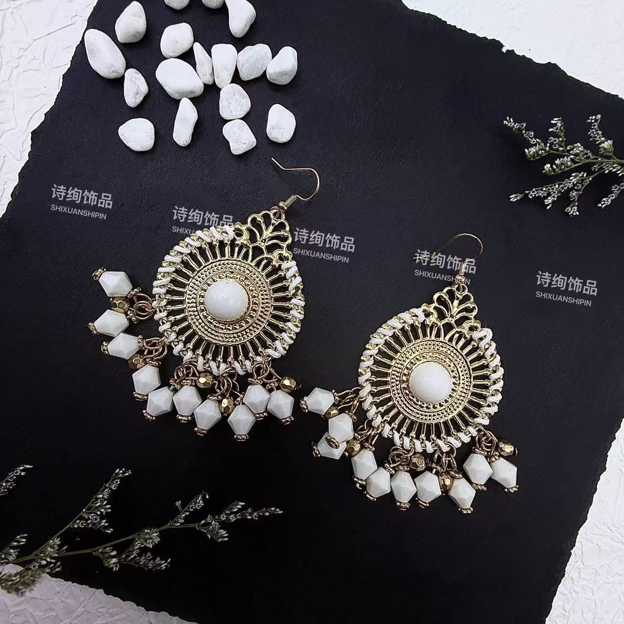 European and American Fashion Retro Style Earrings Ethnic Style Bohemian Exaggerated Disc Tassel Earrings Rice Beads Earrings
