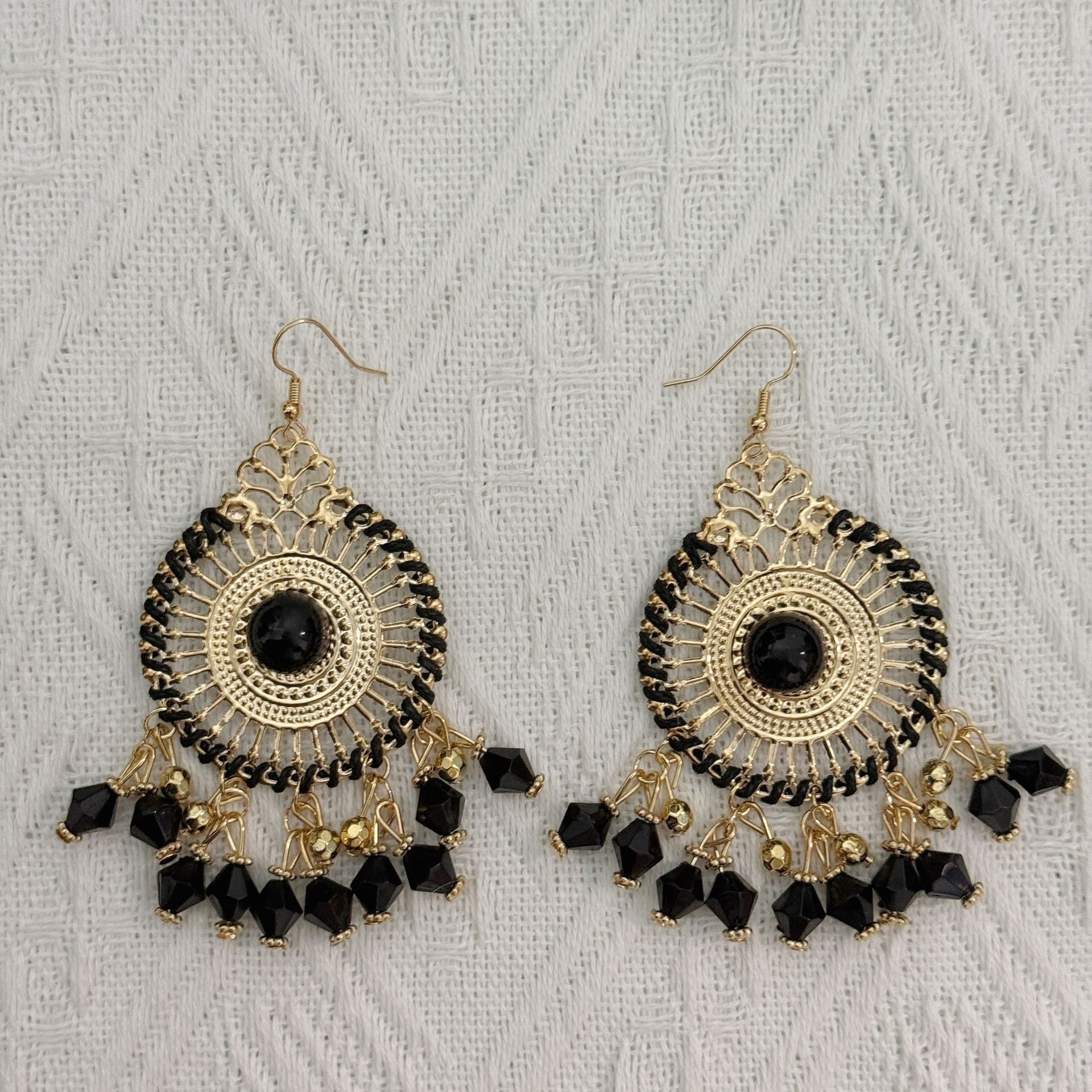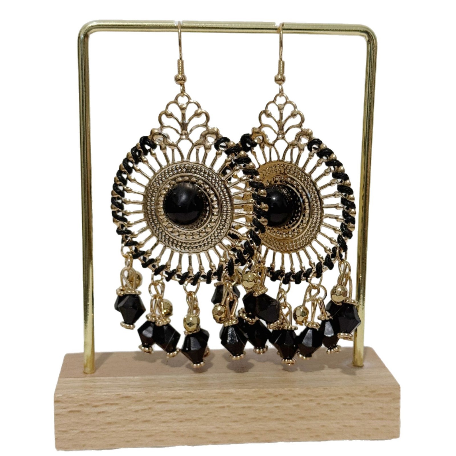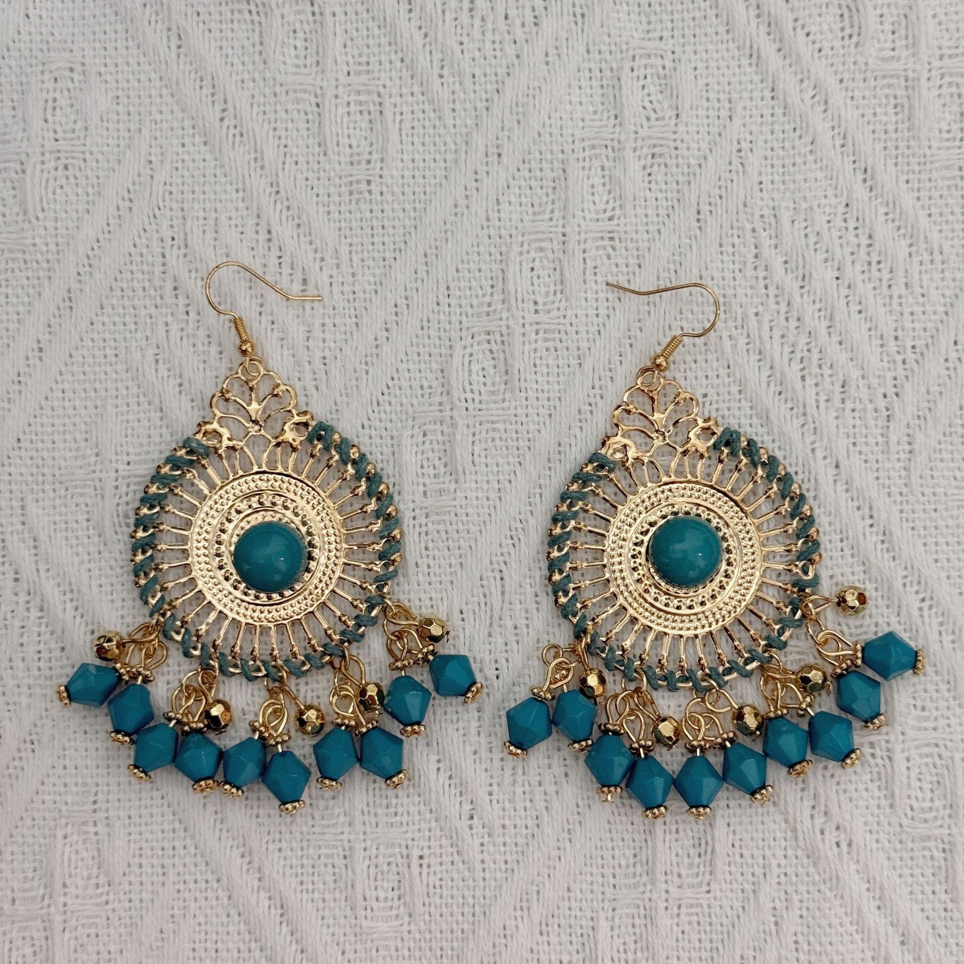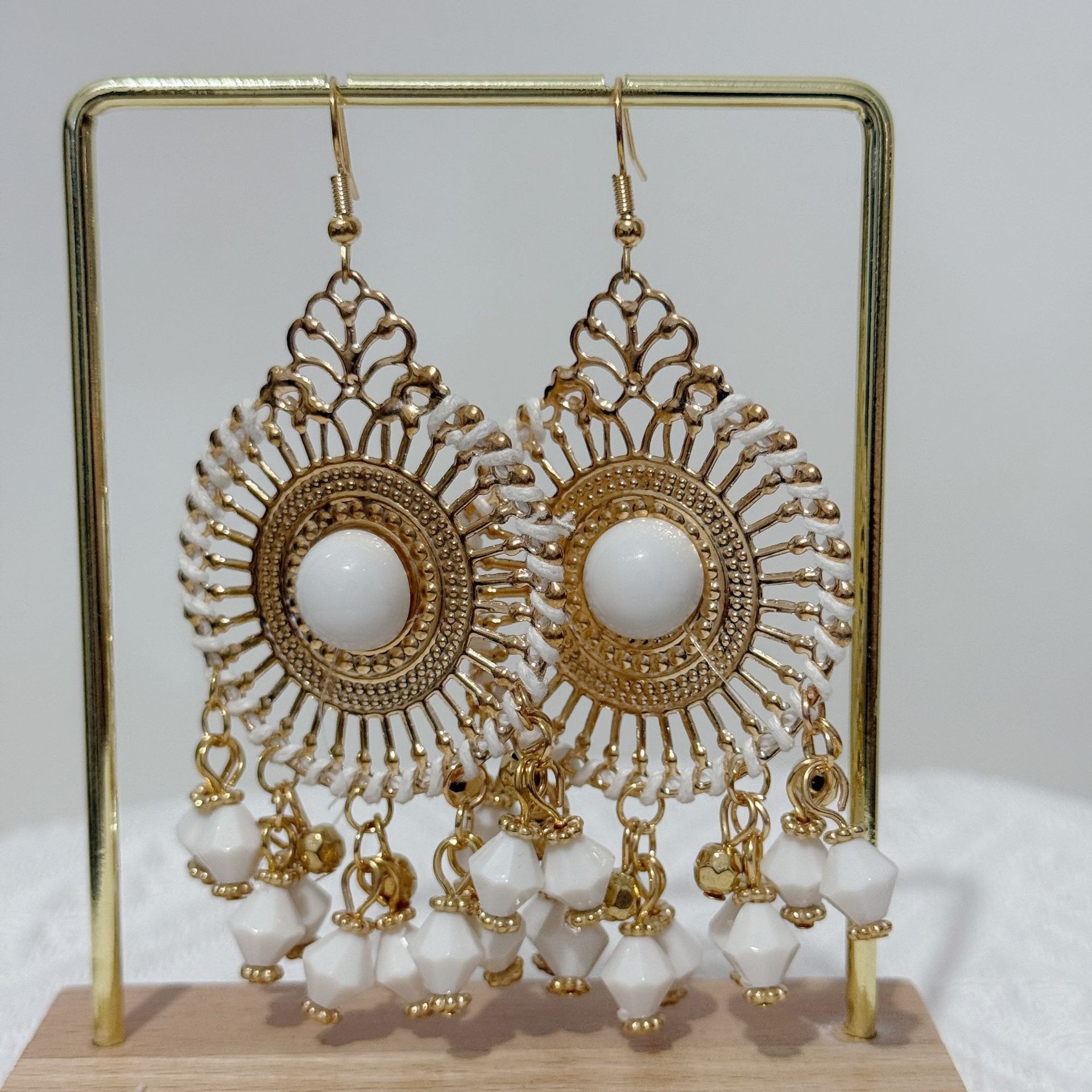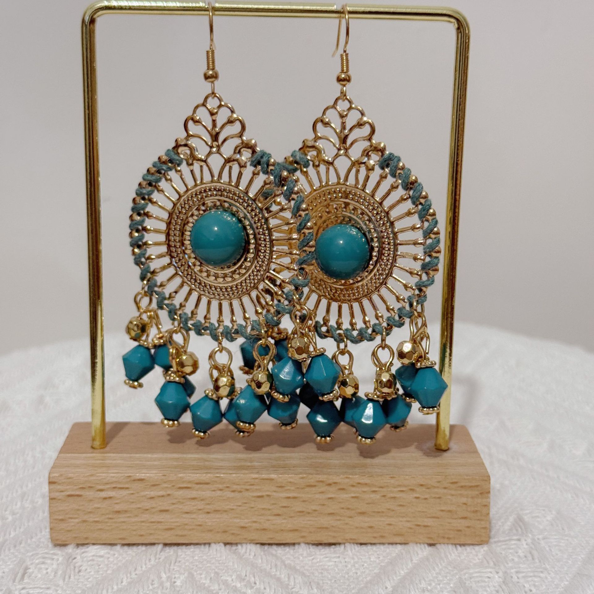 European and American Fashion Retro Style Earrings Ethnic Style Bohemian Exaggerated Disc Tassel Earrings Rice Beads Earrings