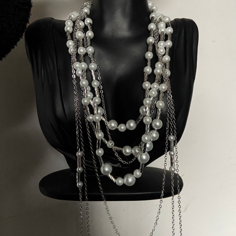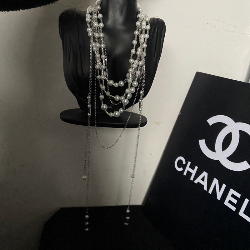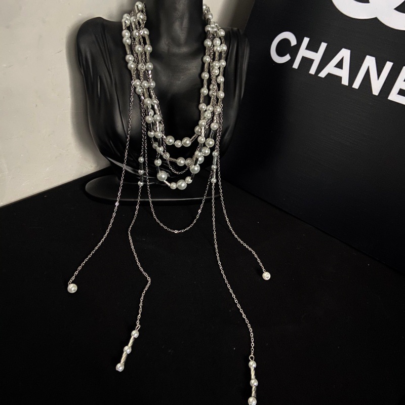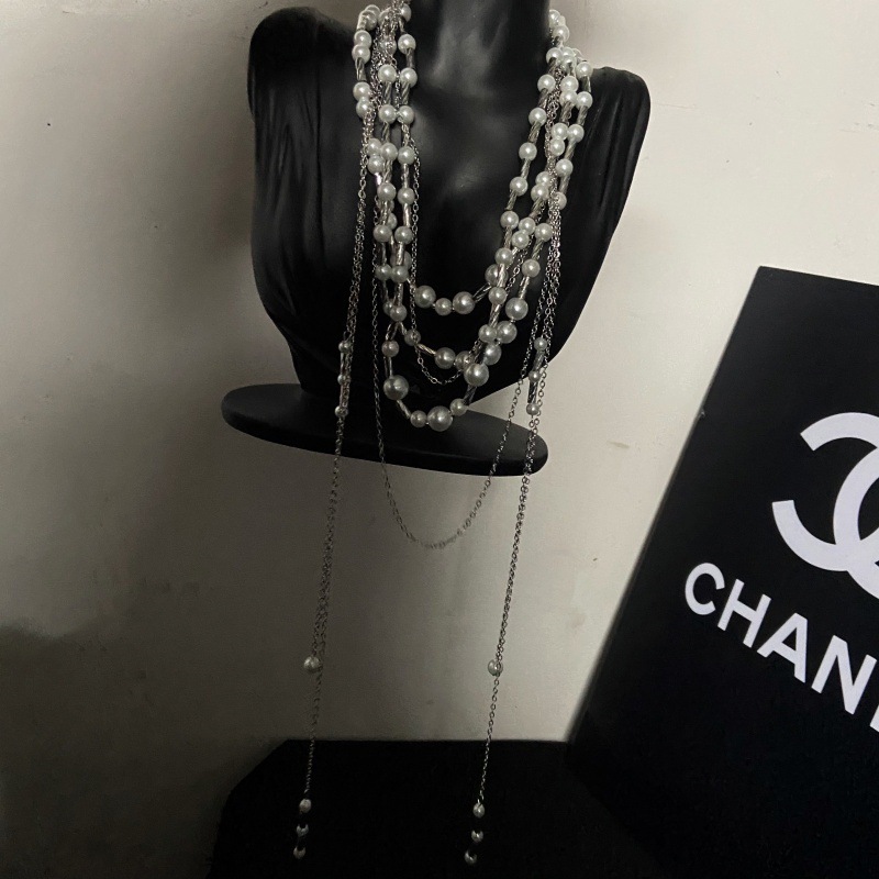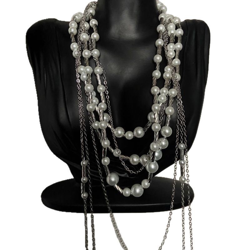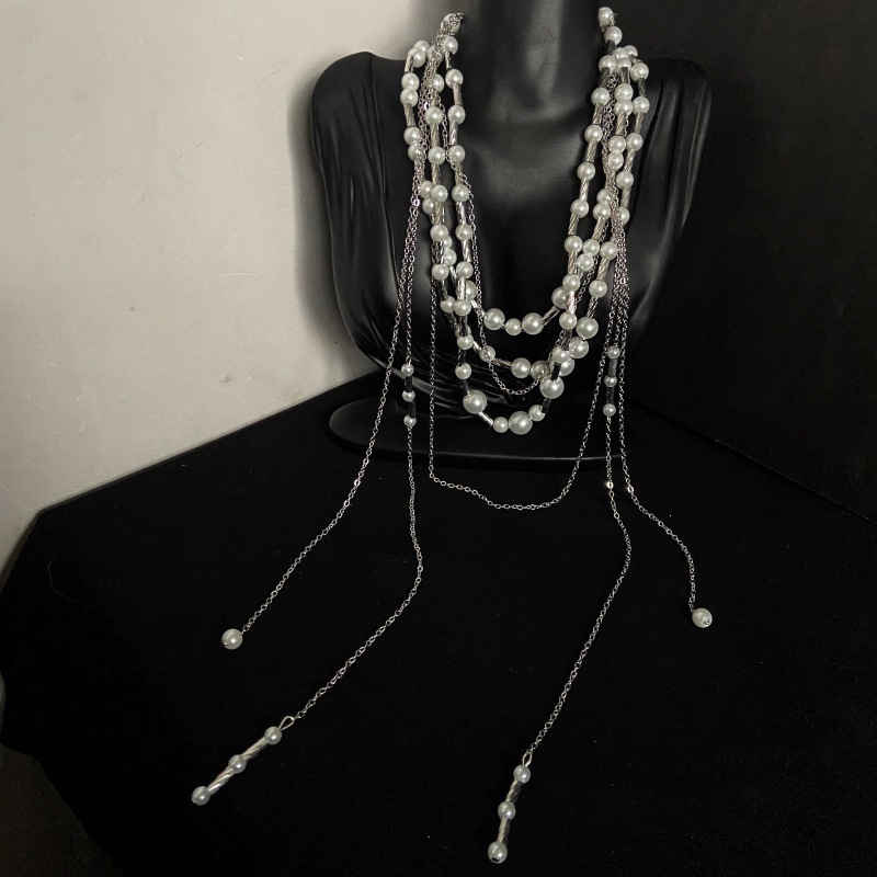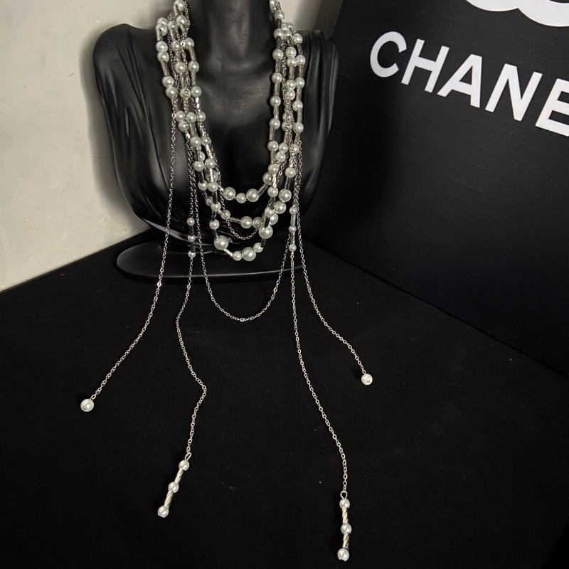 Light Luxury Exquisite Multi-layer Pearl Chain Tassel Long Necklace Women's Niche Fashion Design Neck Chain Women's Collarbone Chain