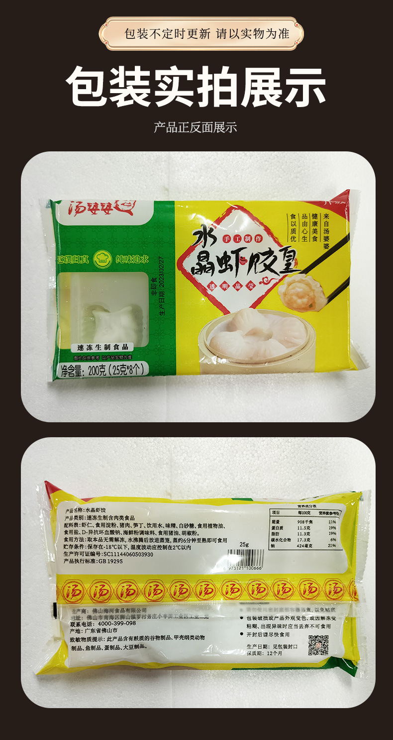 Packaging specifications: Crystal shrimp dumplings 200g/pack