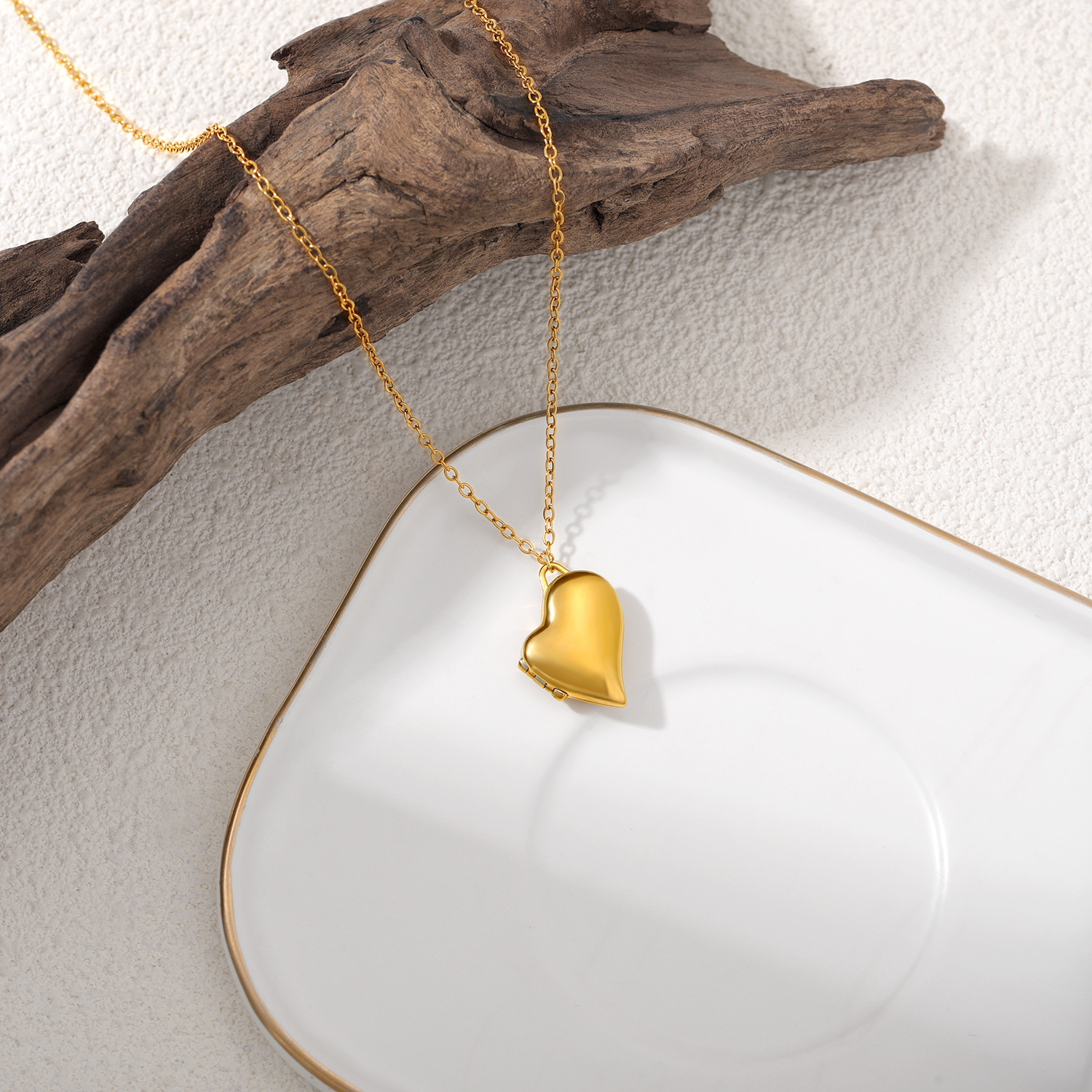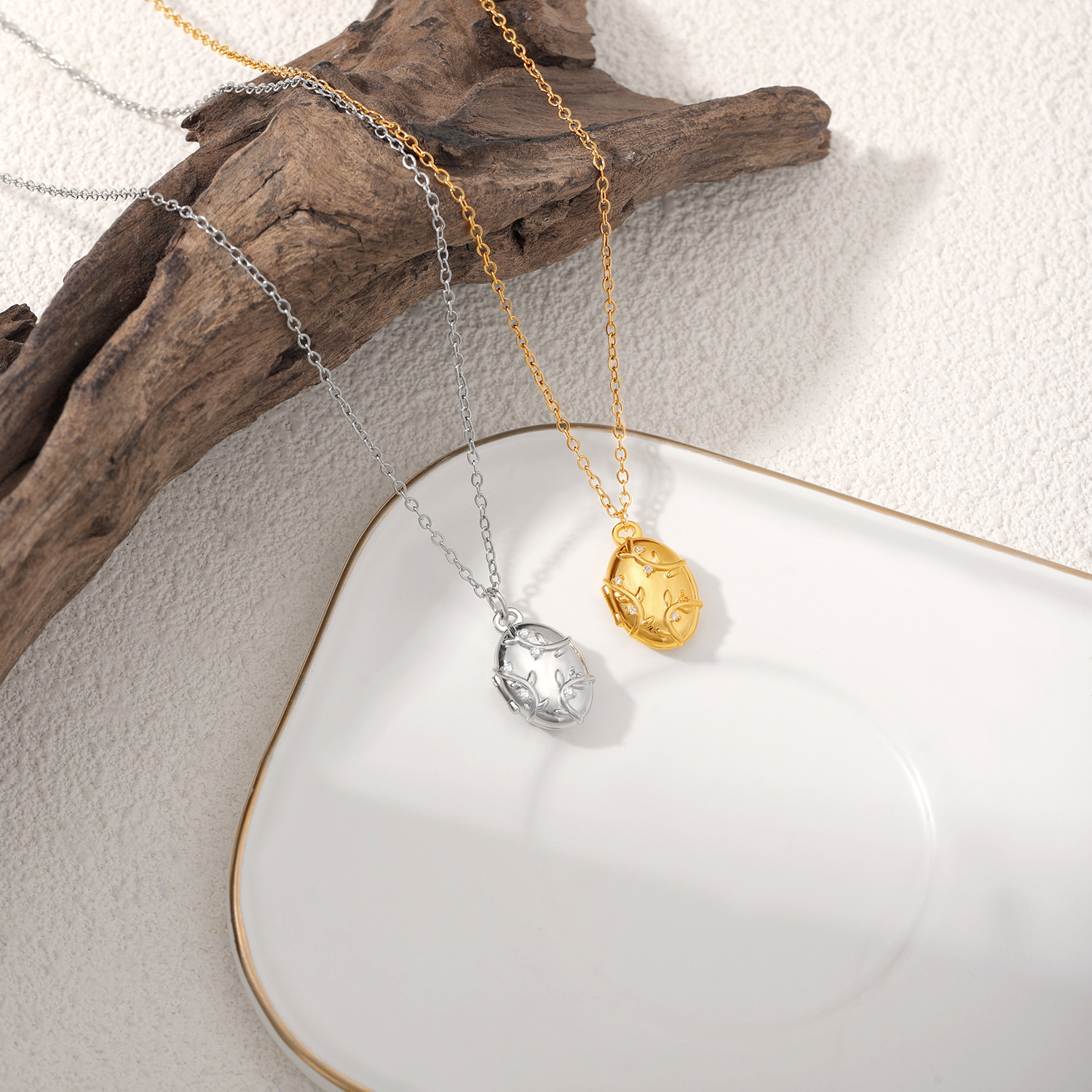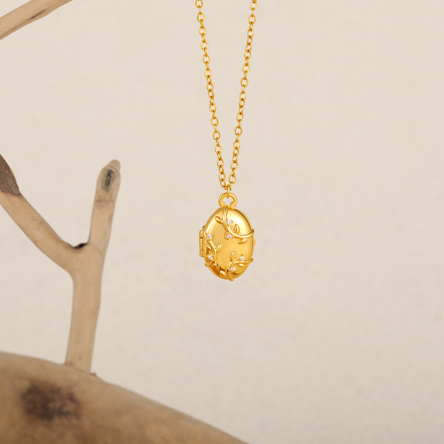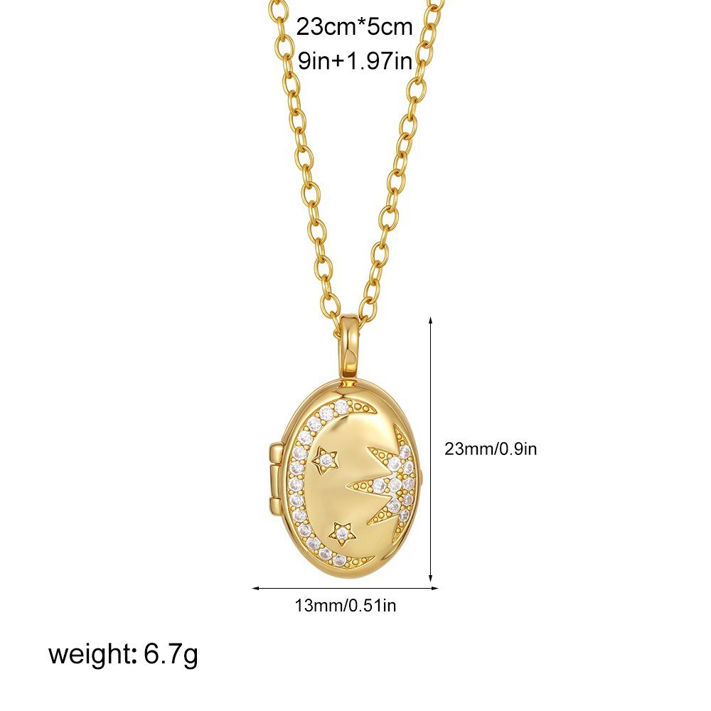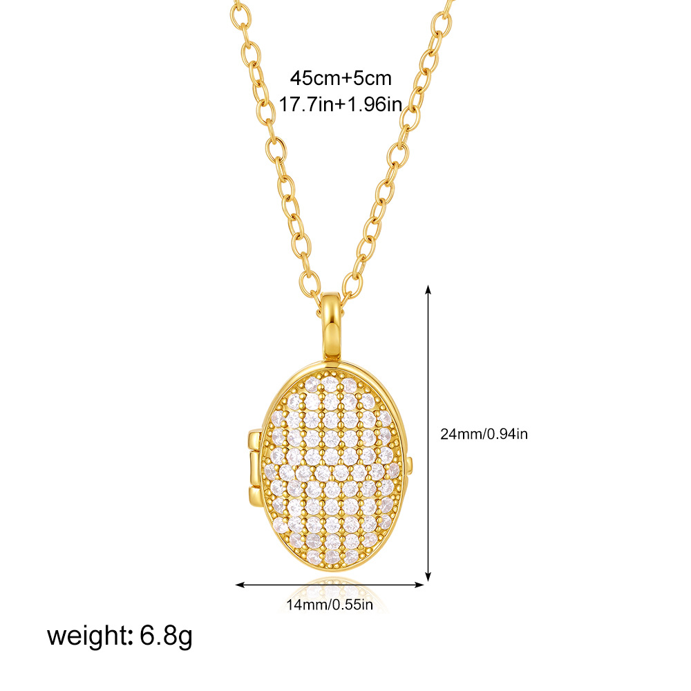 European and American Cross-border Stainless Steel 18K Gold Photo Necklace Openable Retro Photo Frame Pendant Zircon Love Clavicle Chain