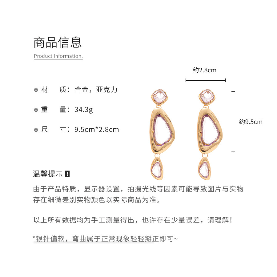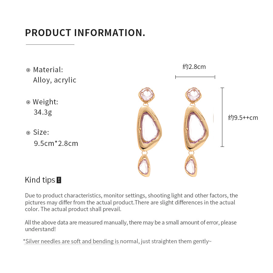 Personality Exaggerated Acrylic Triangle Geometric Silver Pin Earrings European and American Retro Niche Elegant High-end Earrings for Women