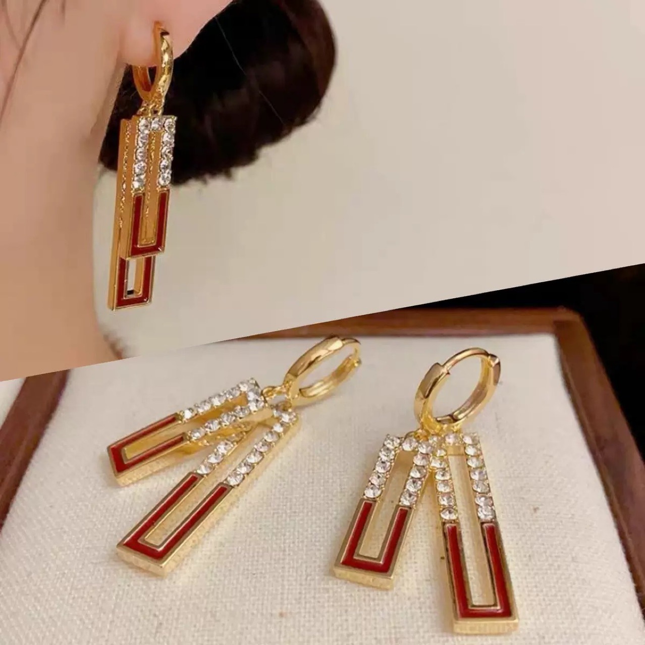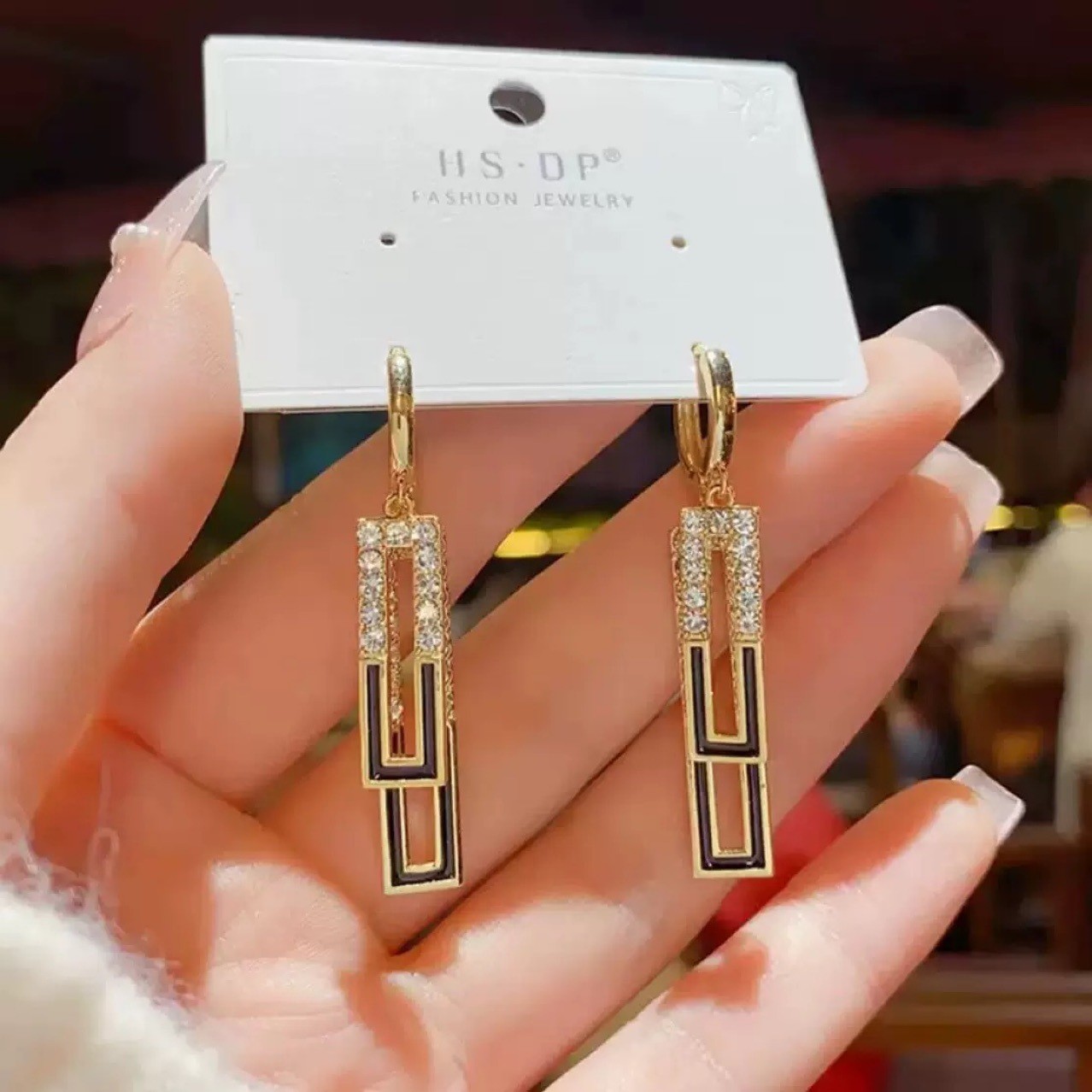 Spring Geometric Square Full Diamond Ear Buckle New Trendy Niche Design Sense Earrings Light Luxury High-end Sense Earrings for Women