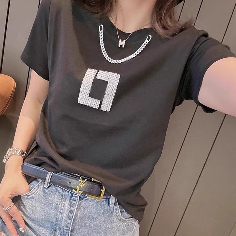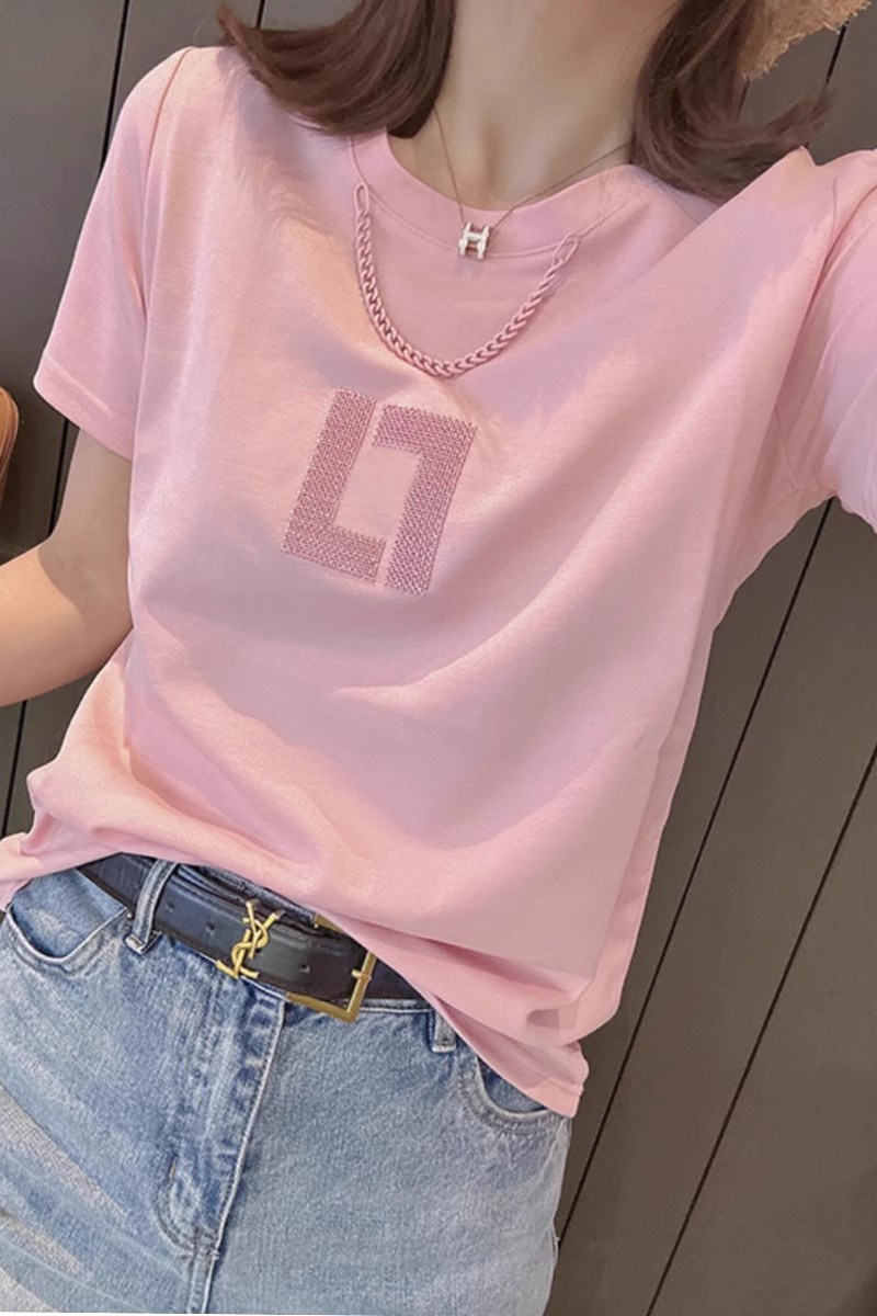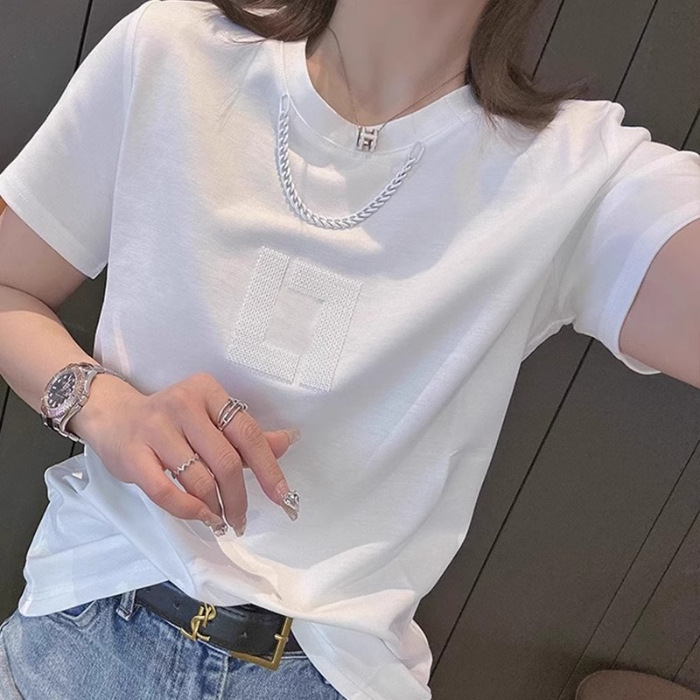 Summer 210g 92 cotton 8 spandex 40 new loose embroidered necklace jacket short sleeve T-shirt bag shoulder bag collar