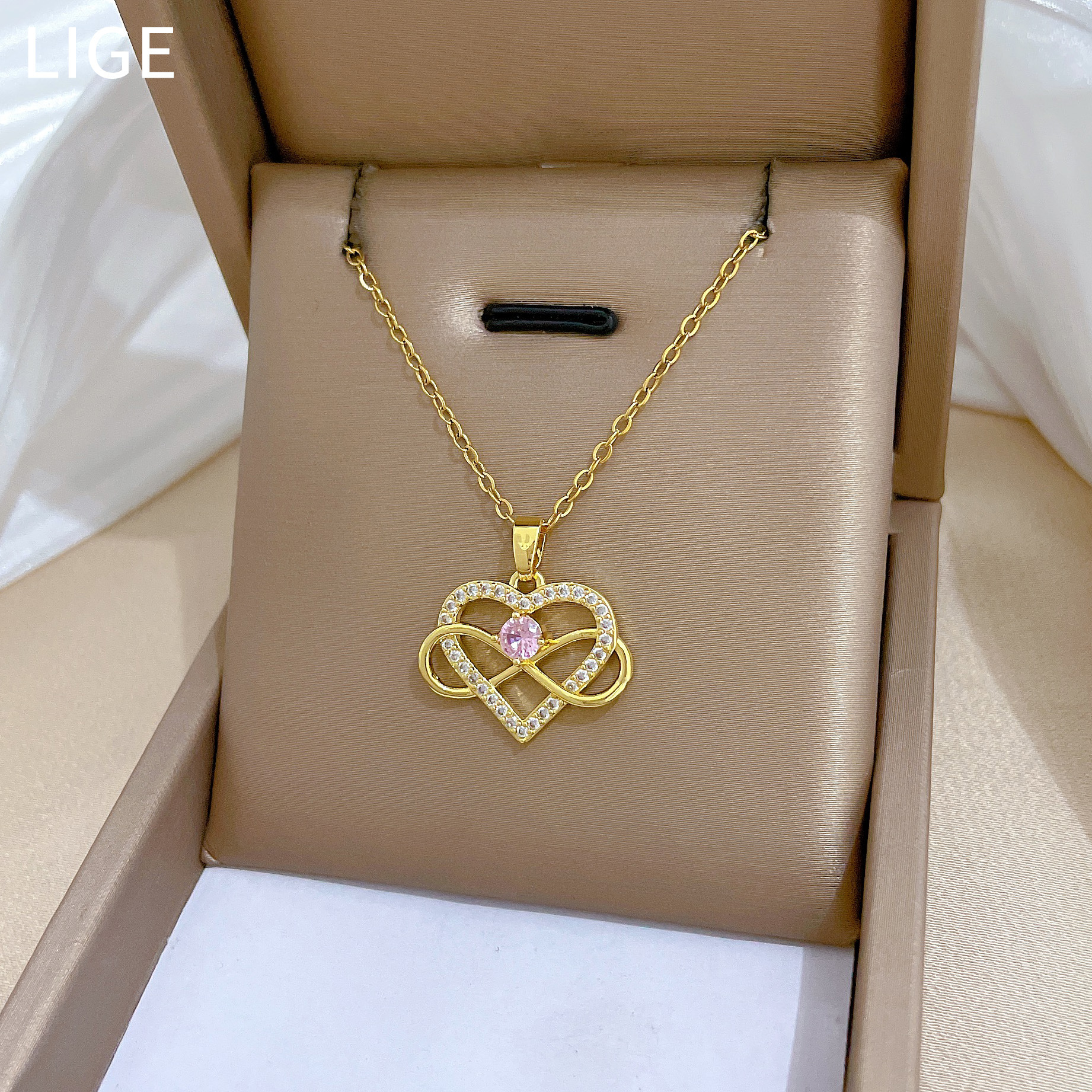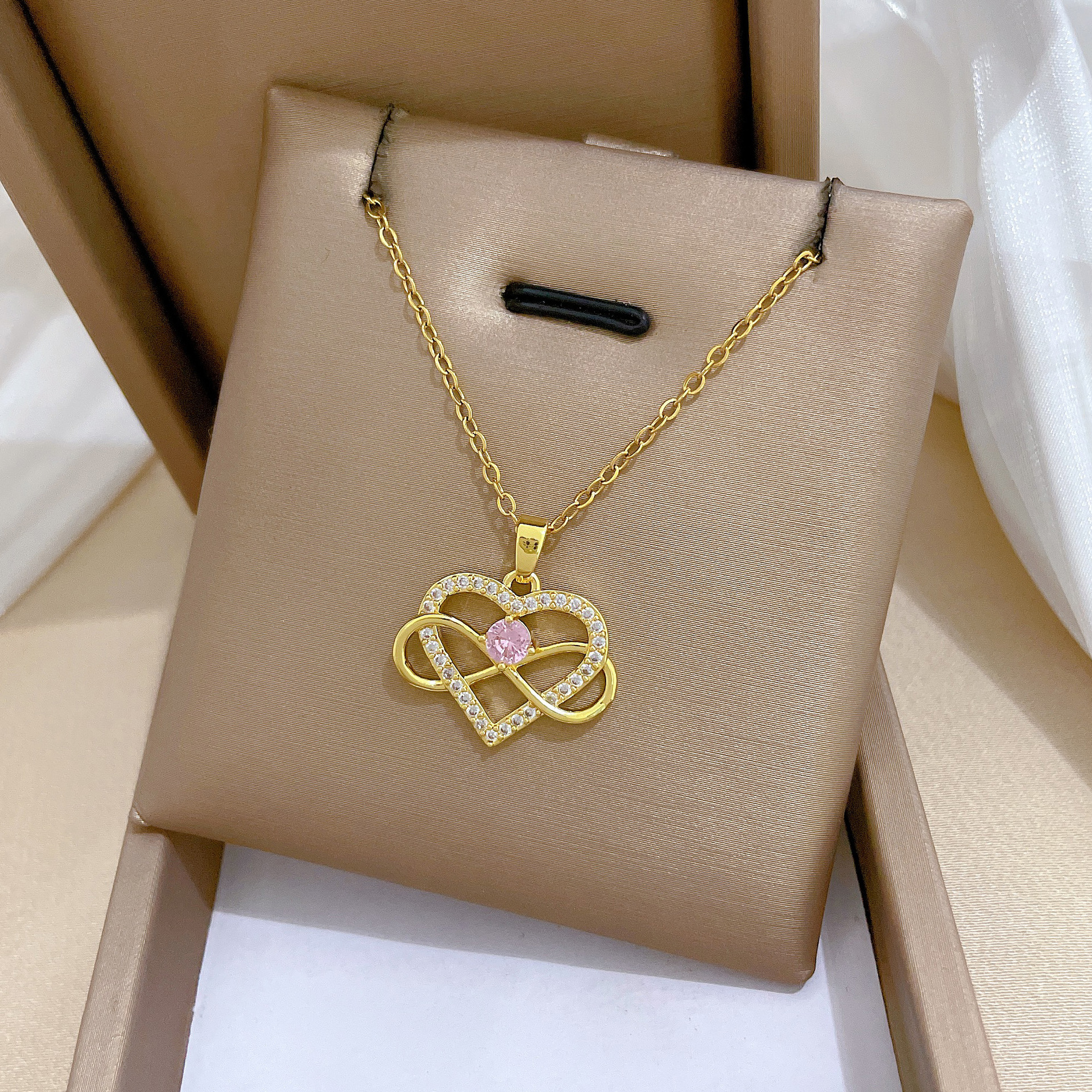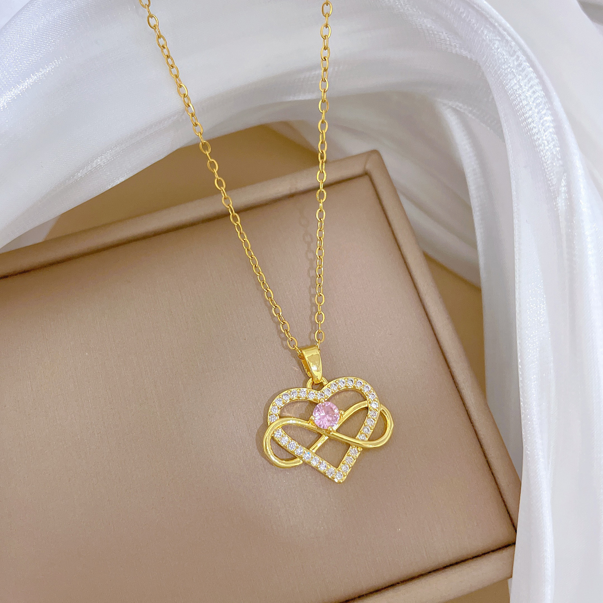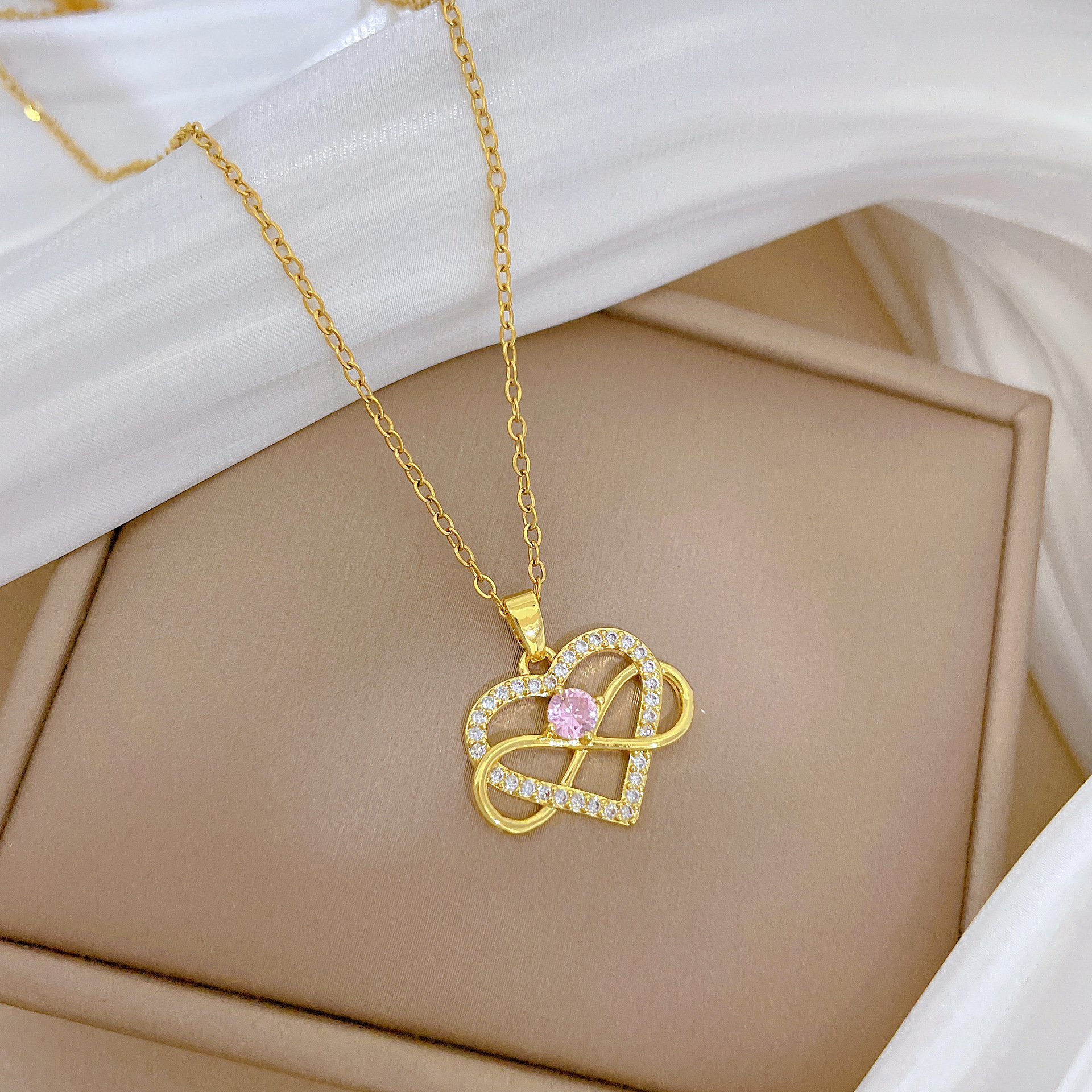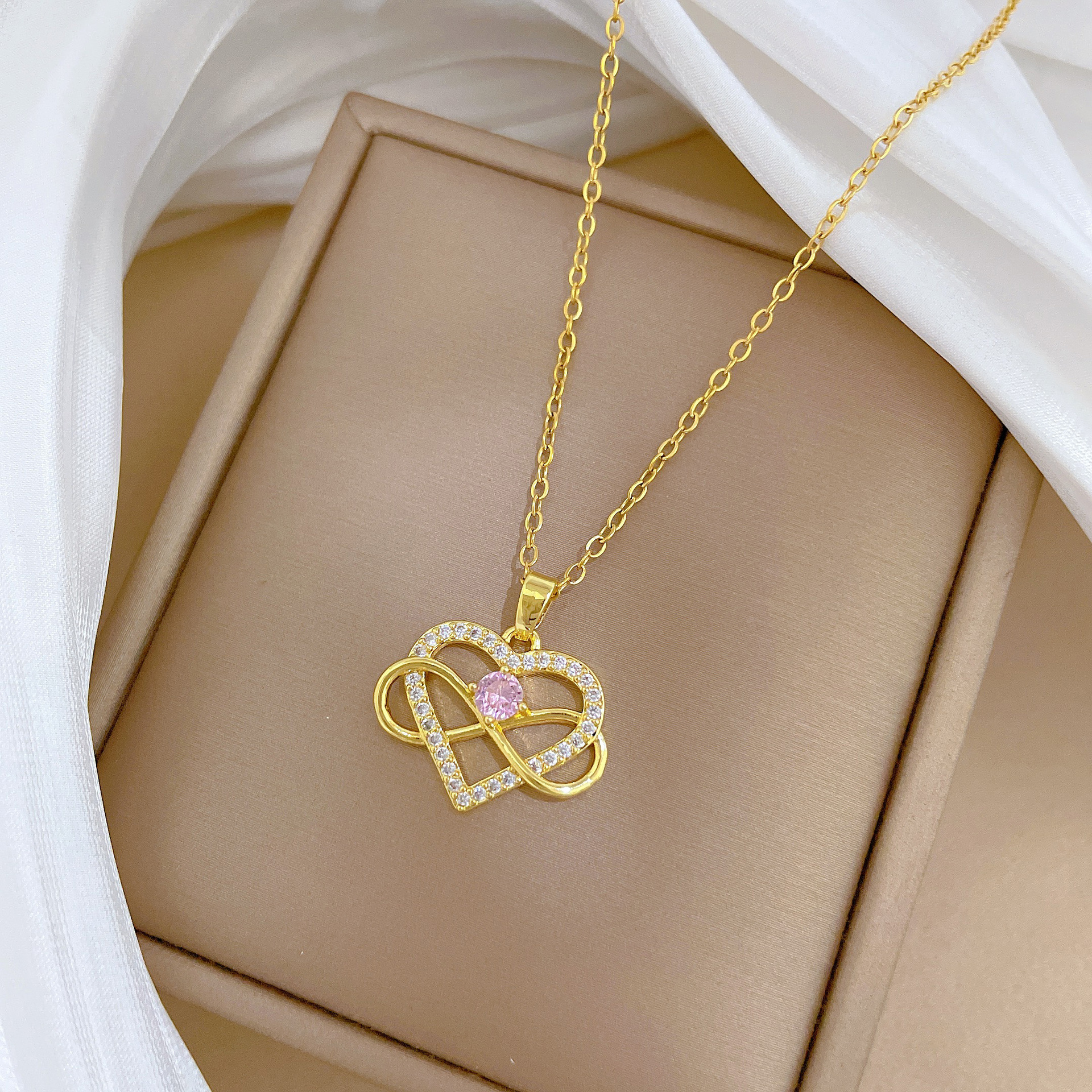 [Titanium Steel] Full Diamond Winding Love Fashion Light Luxury Temperament Gorgeous Full Diamond Necklace Women's All-match Clavicle Chain Titanium Steel
