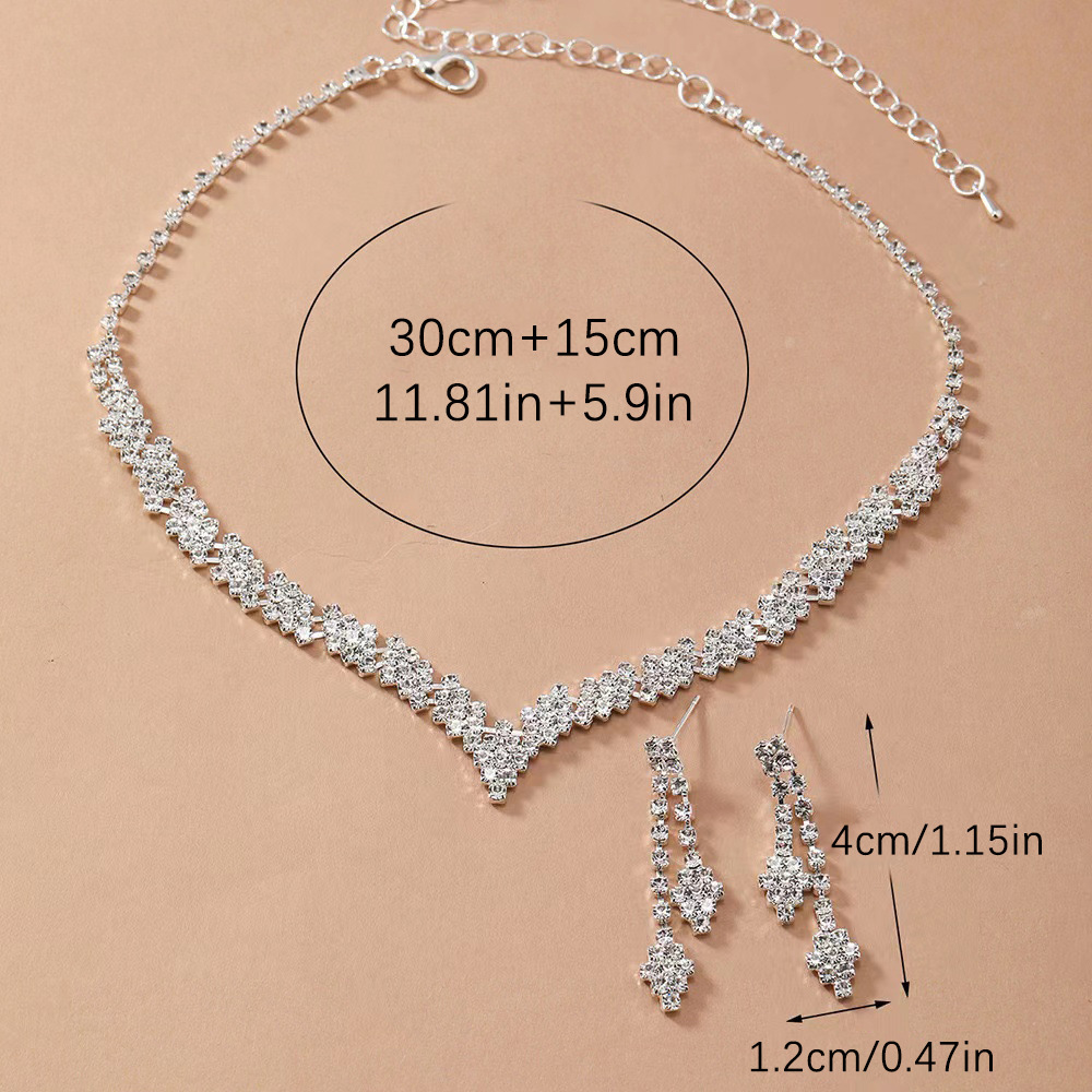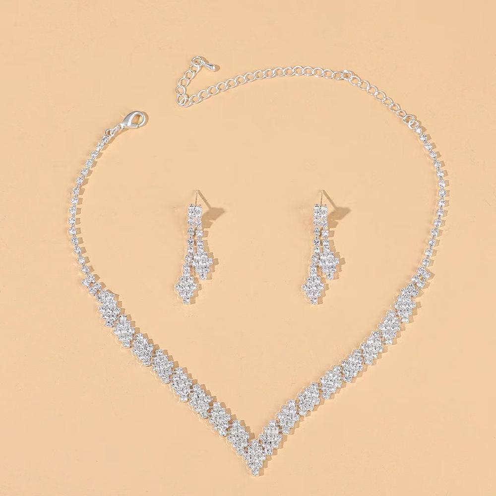 2025 New Cross-border Full Diamond Necklace Earrings Two-piece Bridal Wedding Jewelry Fashion Banquet Wear