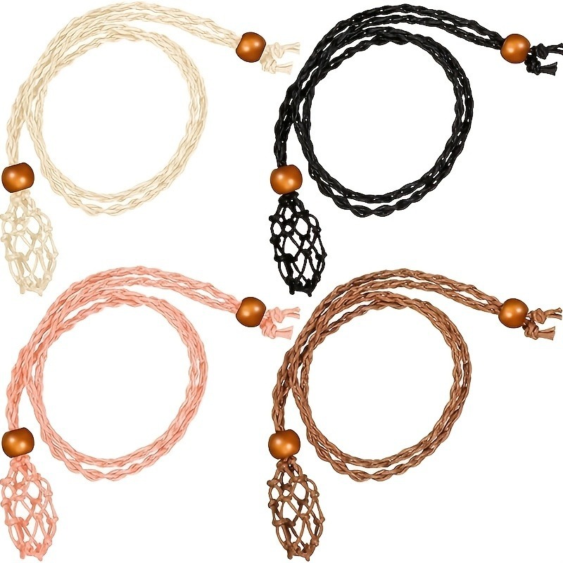 Cross-border Hot Sale Natural Stone Mesh Bag Woven Men's Necklace Women's Niche All-match Pendant Handmade Adjustable Mesh Bag