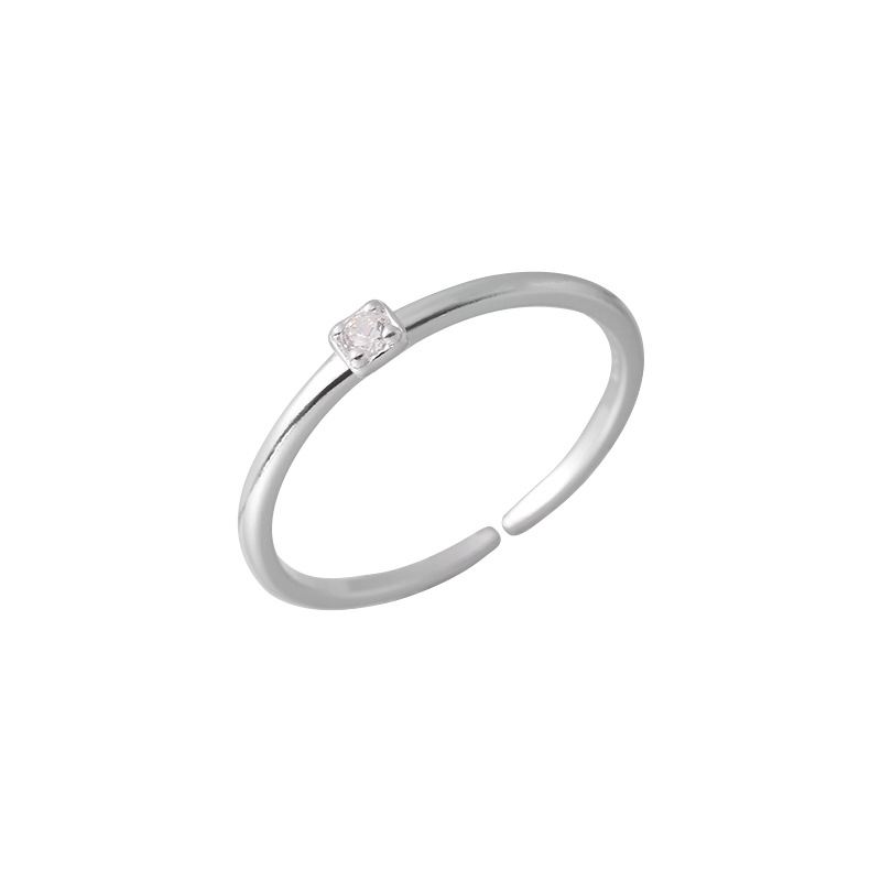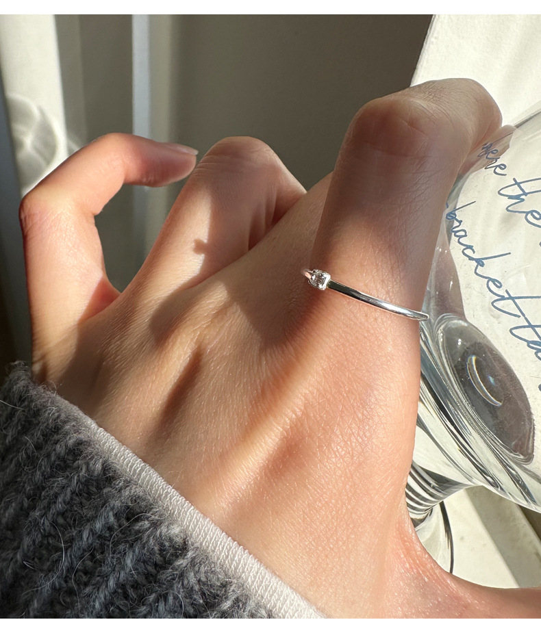 925 Sterling Silver Square Zircon Ring Women's Simple Compact Mini Personality Light Luxury Exquisite Open Ring 0052B