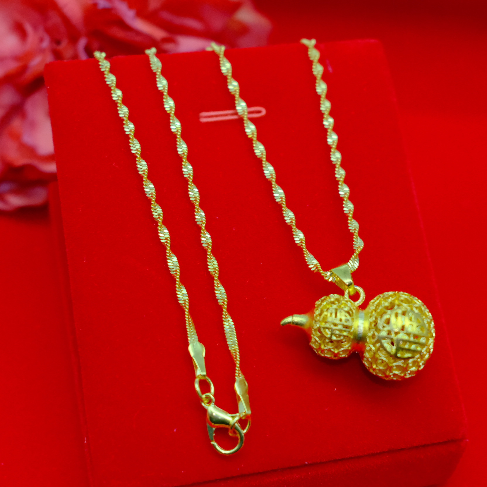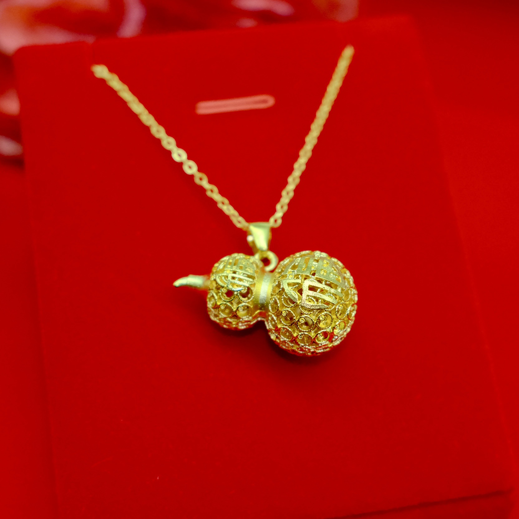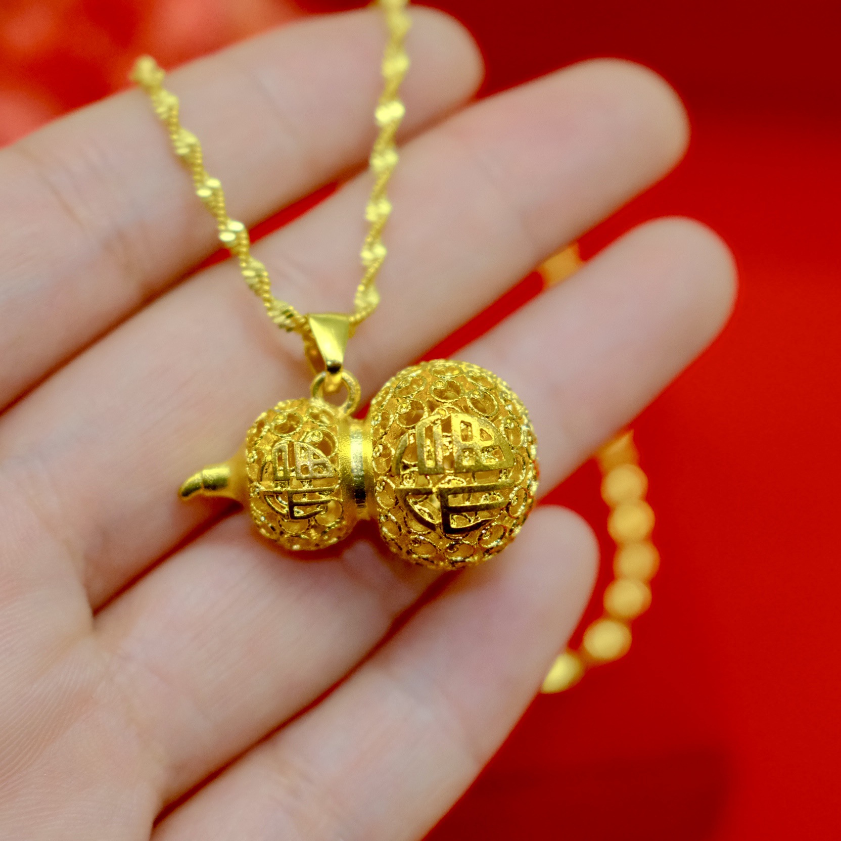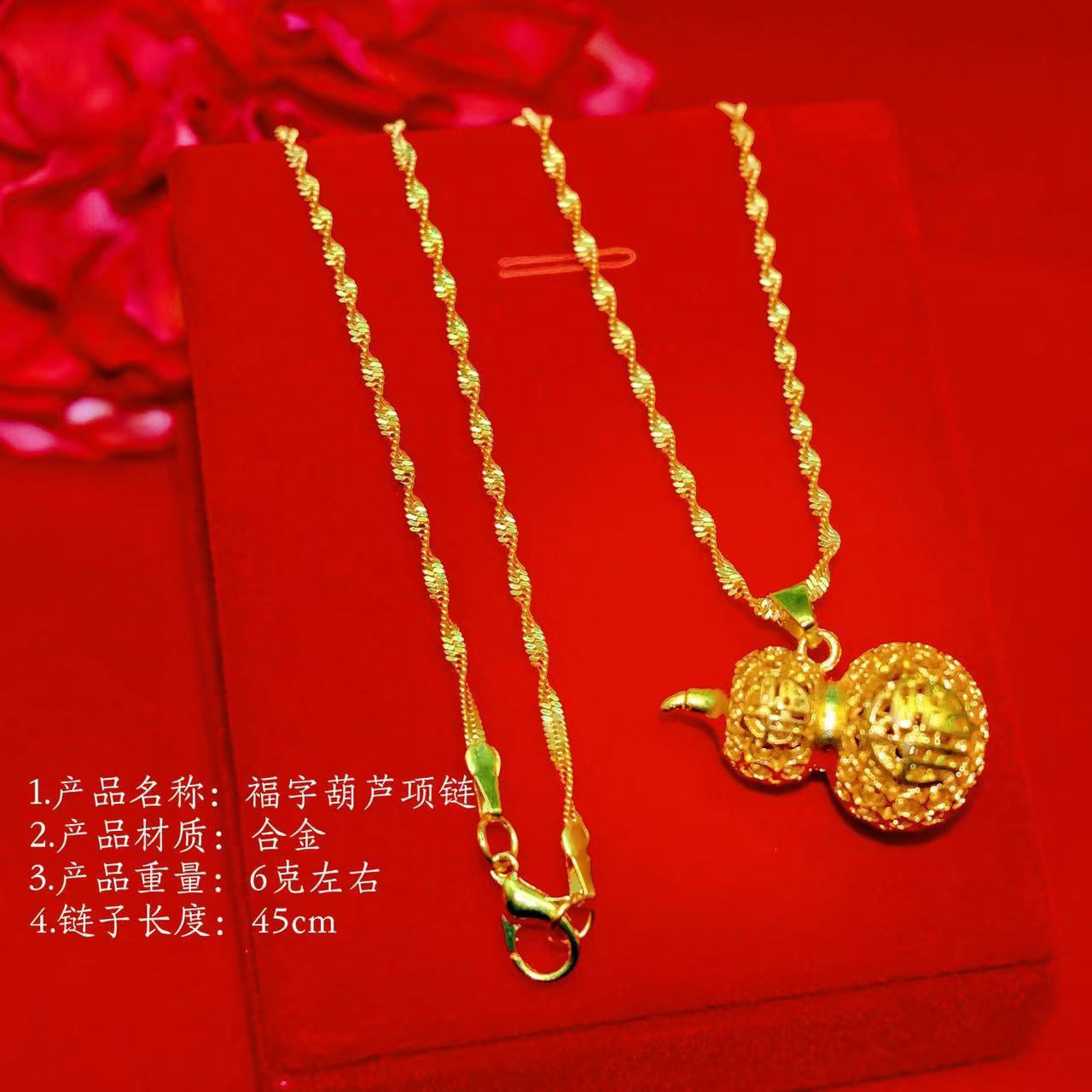 Live supply lucky word gold gourd necklace women's new Chinese heritage craft hollow gourd clavicle chain jewelry wholesale