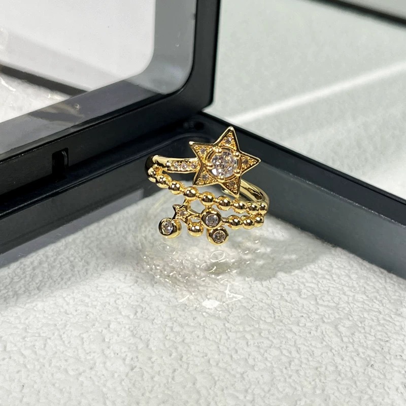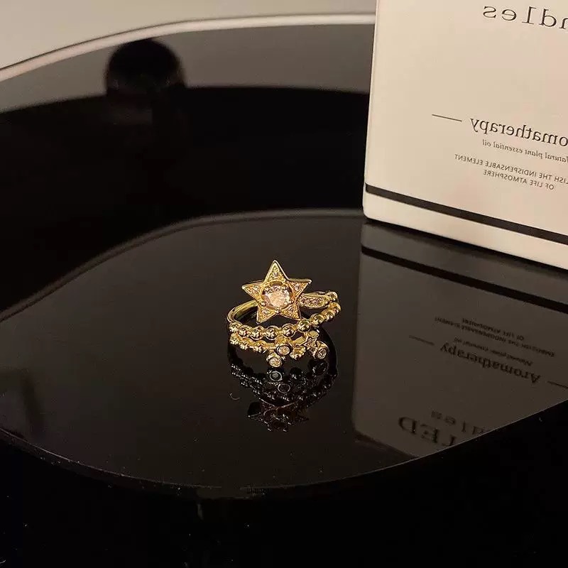 New Five-pointed Star Ring Women's Fashion Distinctive Internet Celebrity Same Style Finger Ring High-grade Light Luxury Niche Design Ring