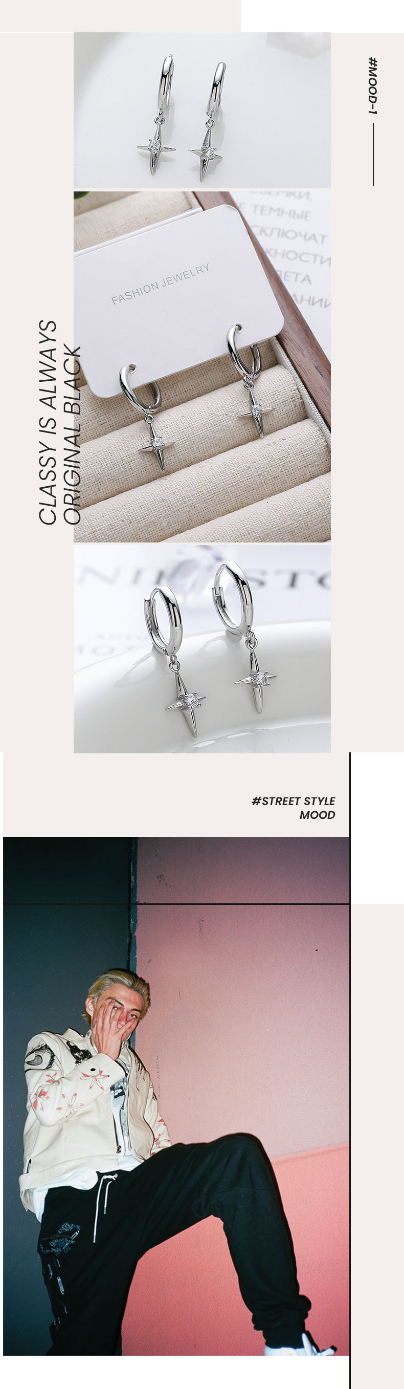 Cross awn star earrings men's high-end fashion personality ruffian handsome niche design earrings female tassel earrings wholesale