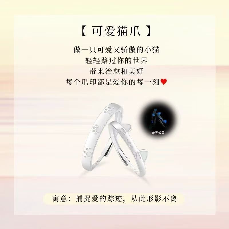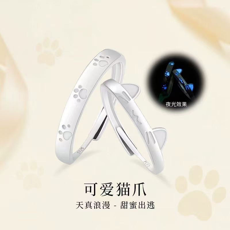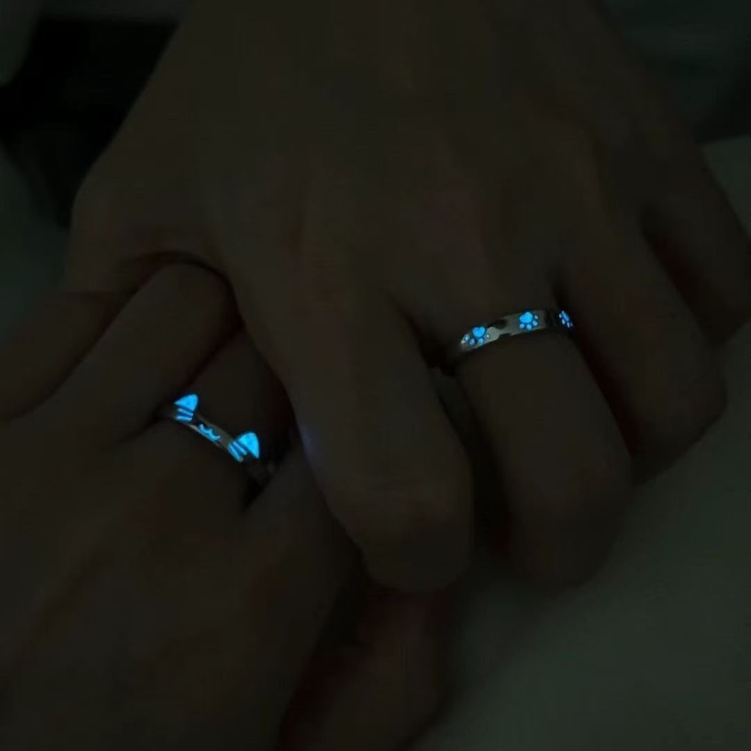 Luminous Cat and Dog Diary Couple Ring Niche Design Casual Cartoon Ring Pair Ring Open Finger Valentine's Day Gift