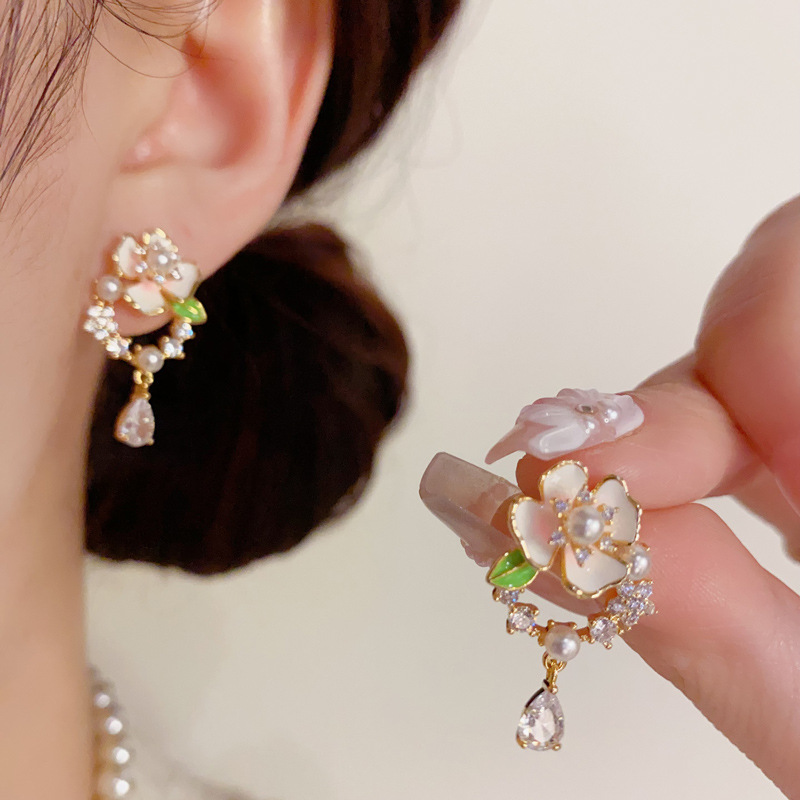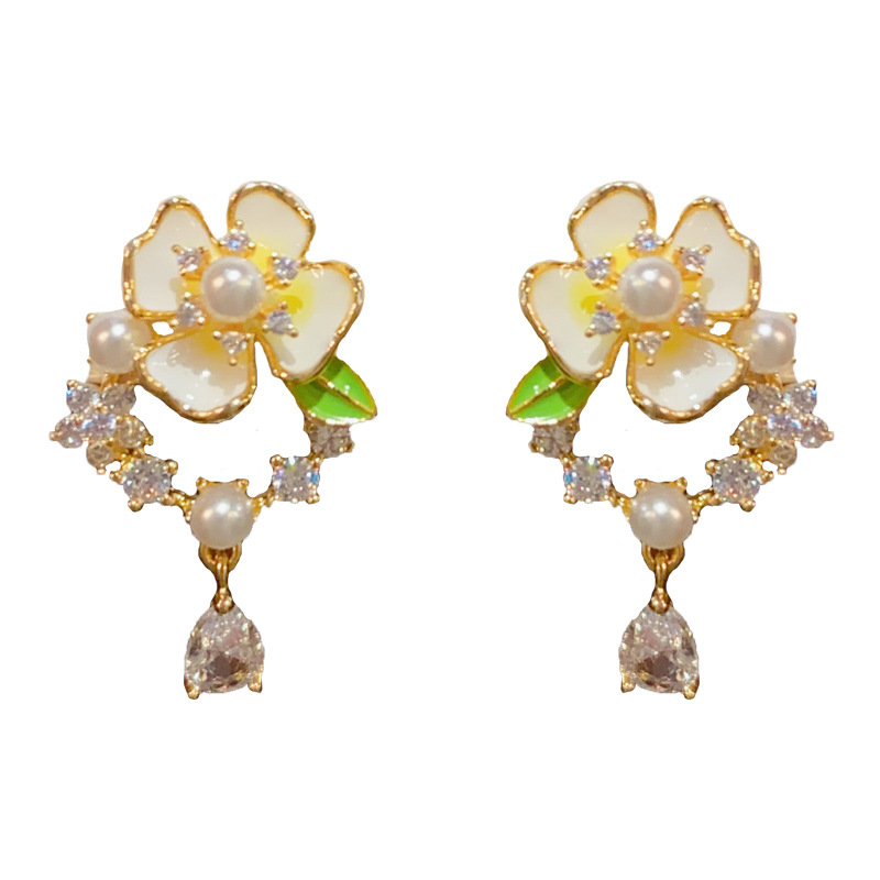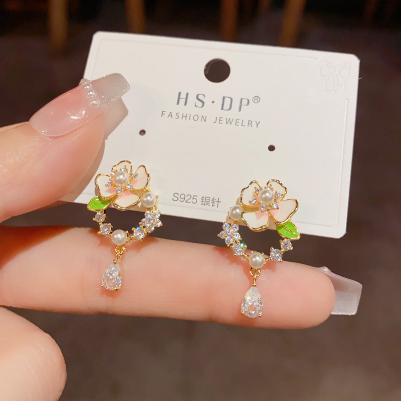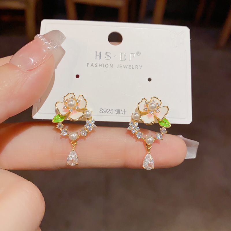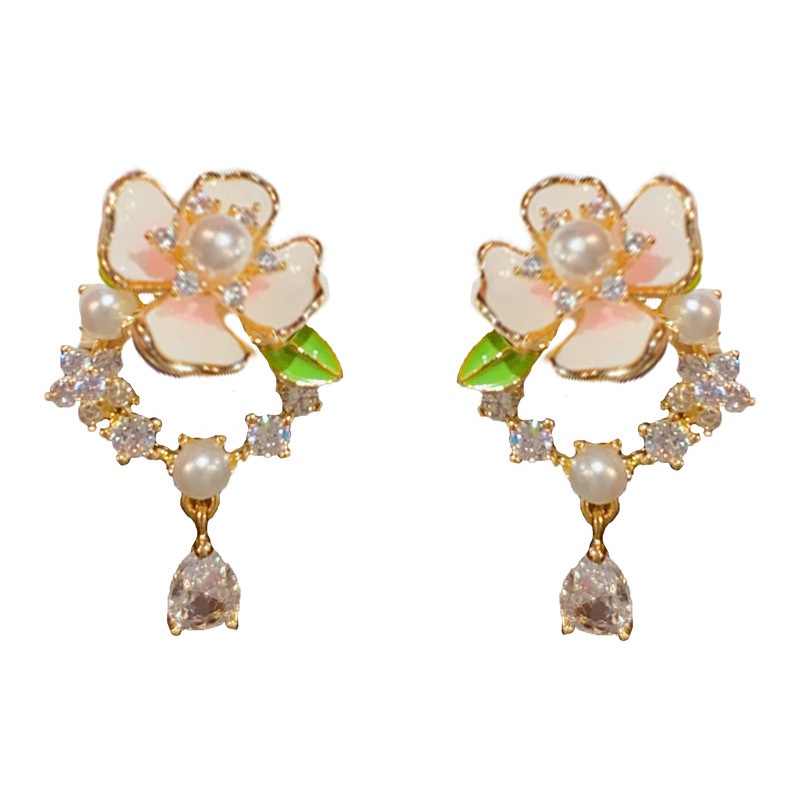 Color: Pink-flower zircon ring drop earrings (thick gold plating)