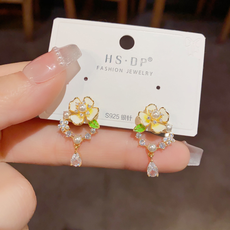 Color: Yellow-flower zircon ring drop earrings (thick gold plating)