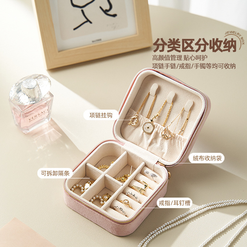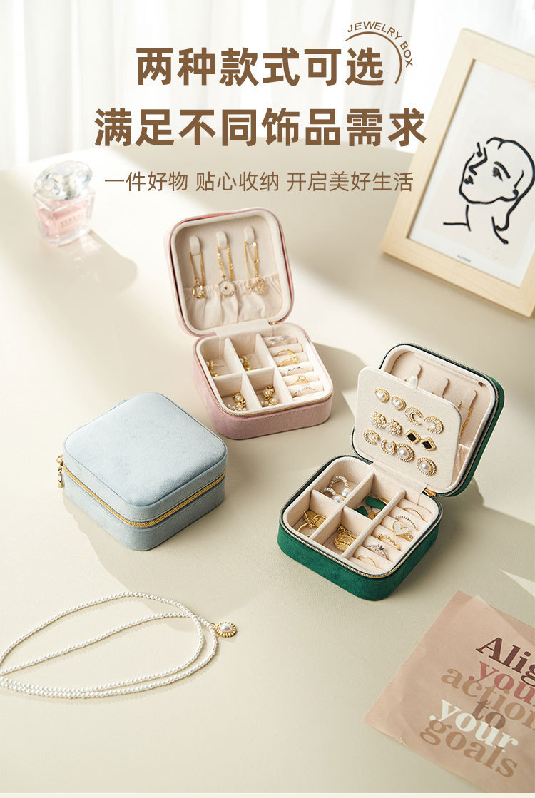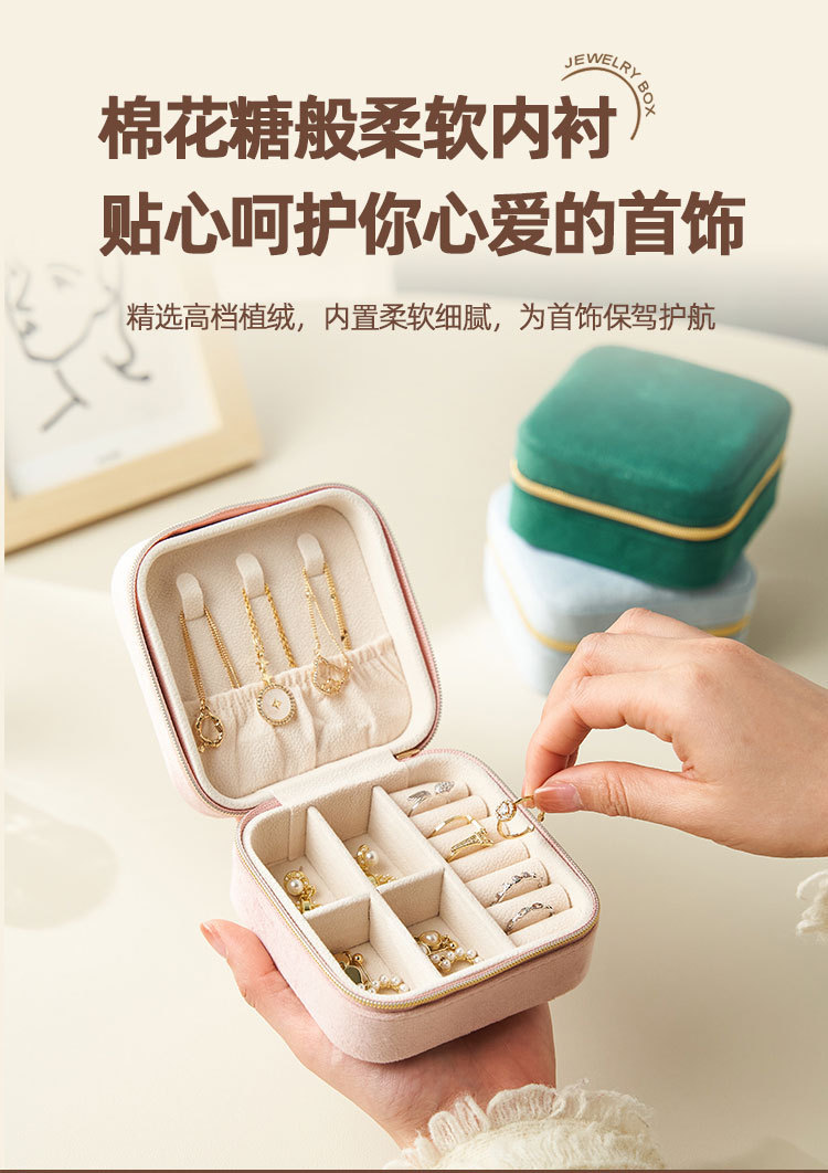 Flannel Zipper Bag Jewelry Box Small Portable Jewelry Storage Box Wholesale Necklace Ring Earrings Jewelry Box