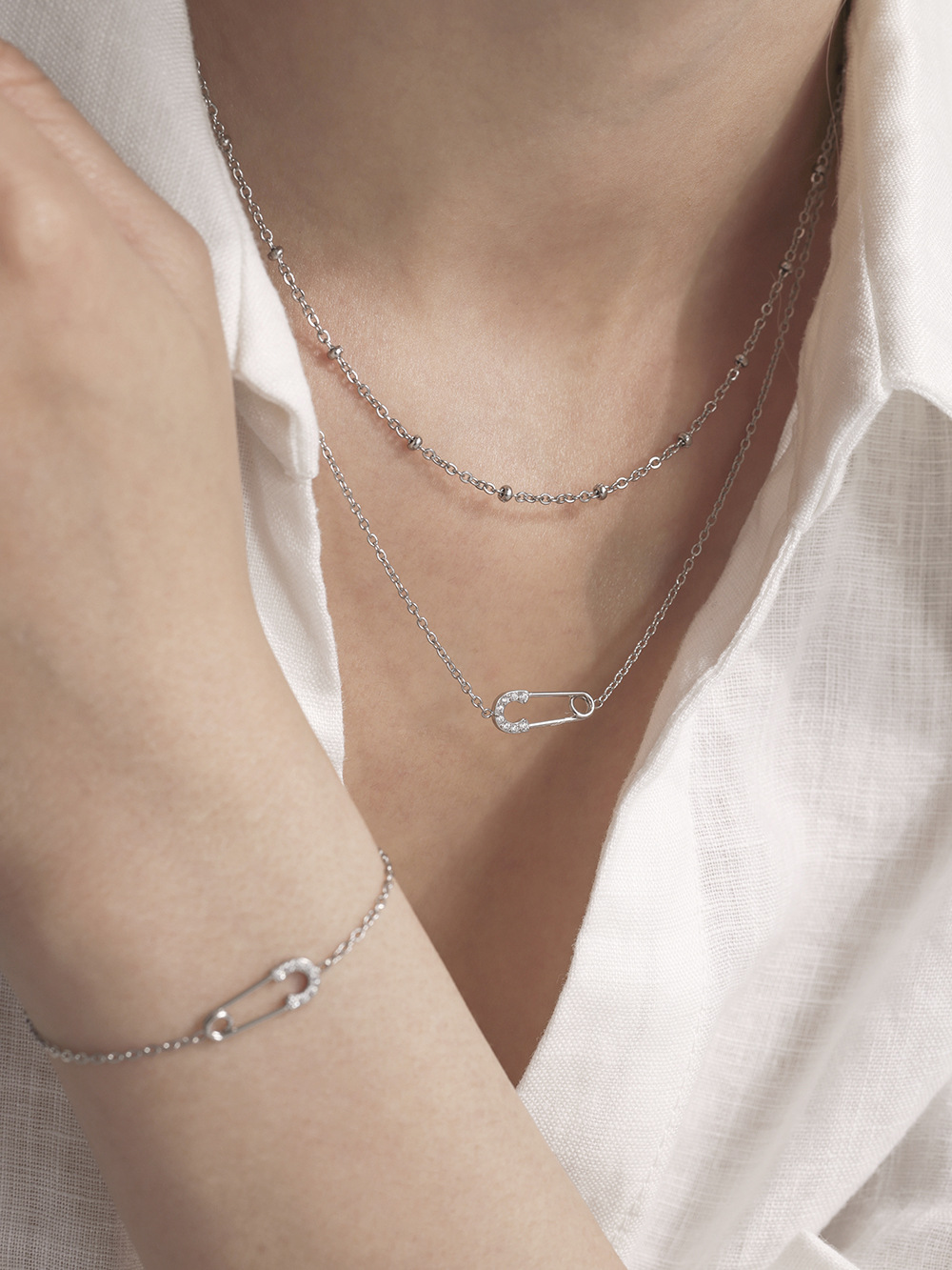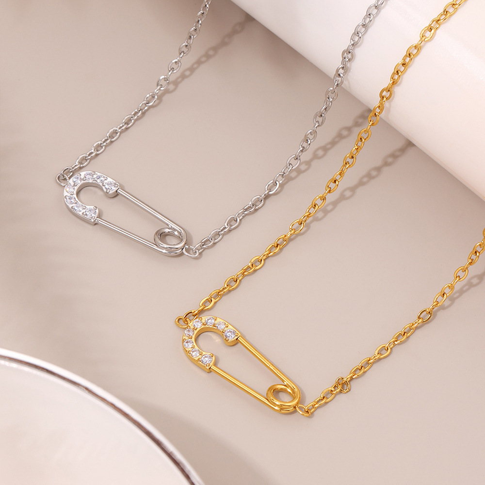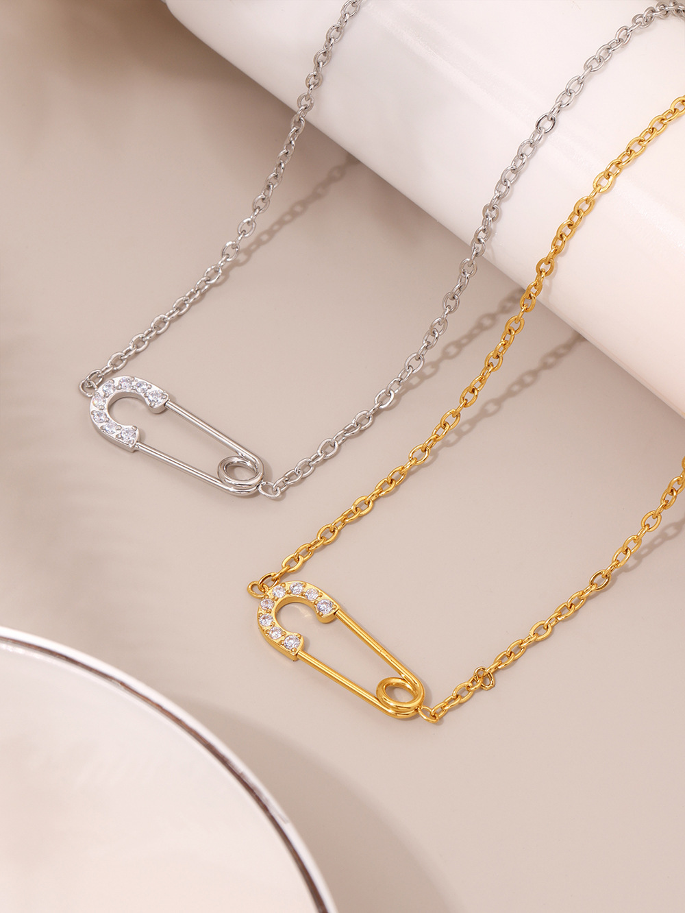 Color: TXP233-steel color paper clip zircon necklace 40 5cm