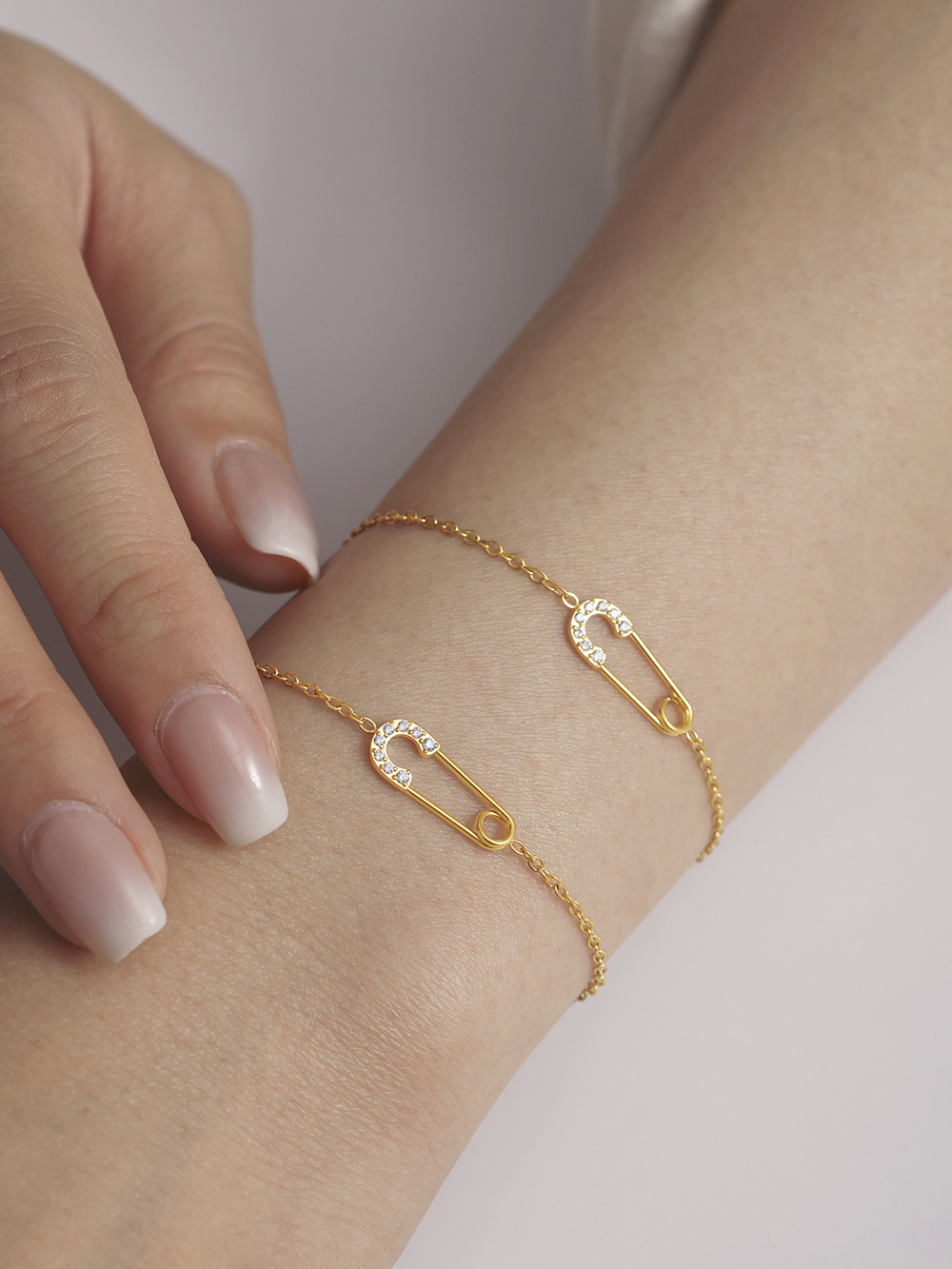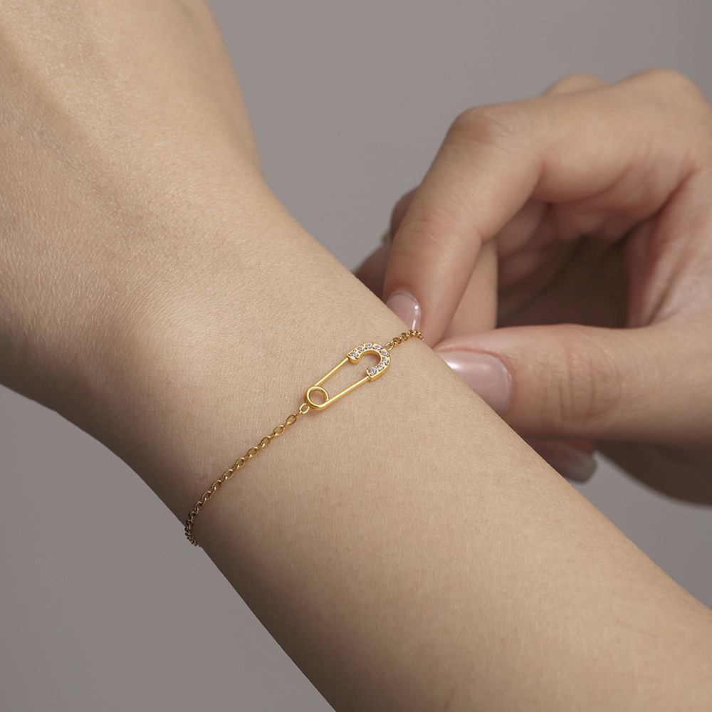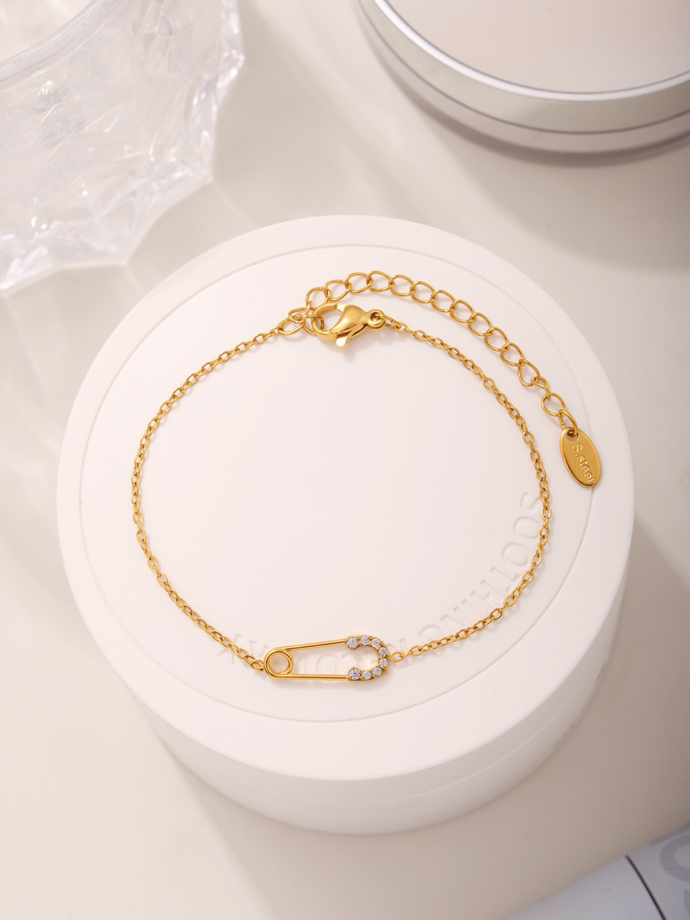 Color: TXE233-gold paper clip zircon bracelet 16 5cm