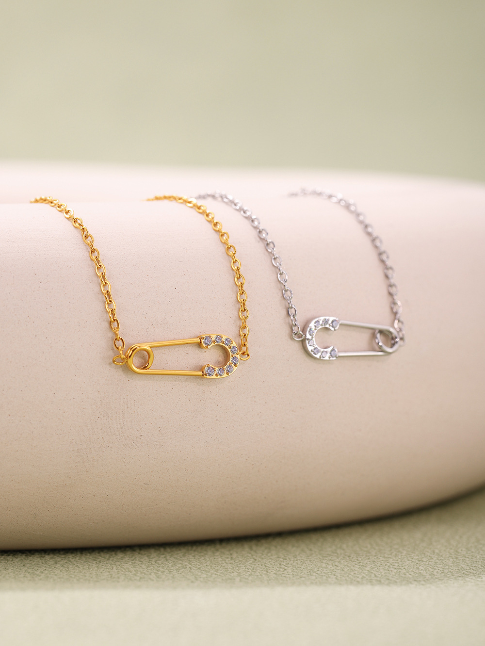 Color: TXP233-gold paper clip zircon necklace 40 5cm