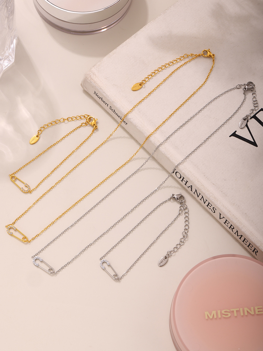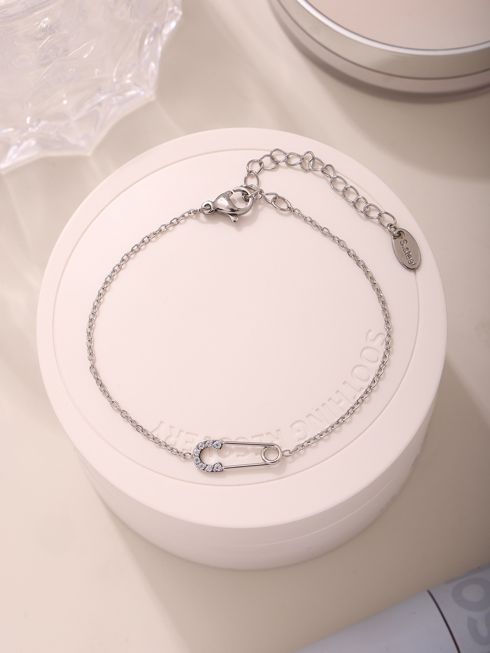 Color: TXE233-steel color paper clip zircon bracelet 16 5cm