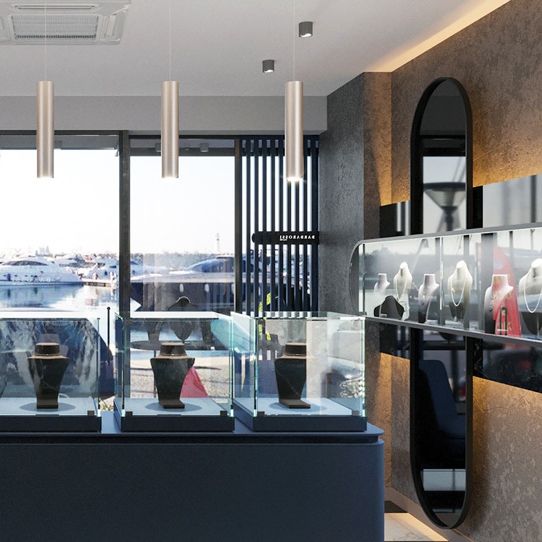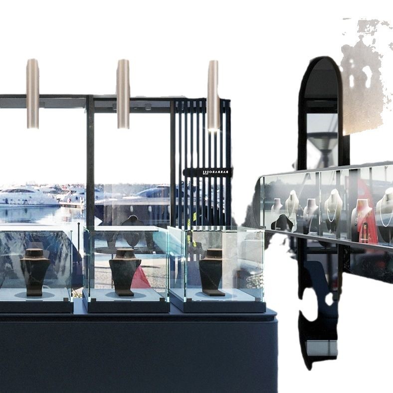 Customized Jewelry Counter Stainless Steel Jewelry Display Counter Production of Classy Luxury Curved Glass Island Cabinet