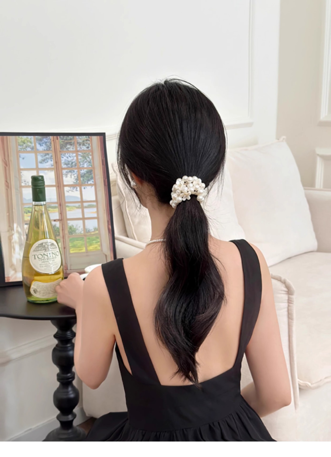 Color: Fq010-3#White pearl hair tie