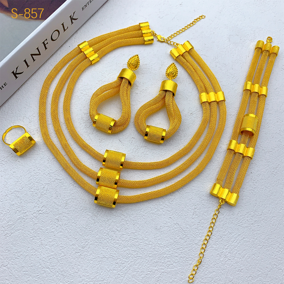 New african jewelry four-piece dubai indian ladies necklace bracelet earrings ring jewelry set
