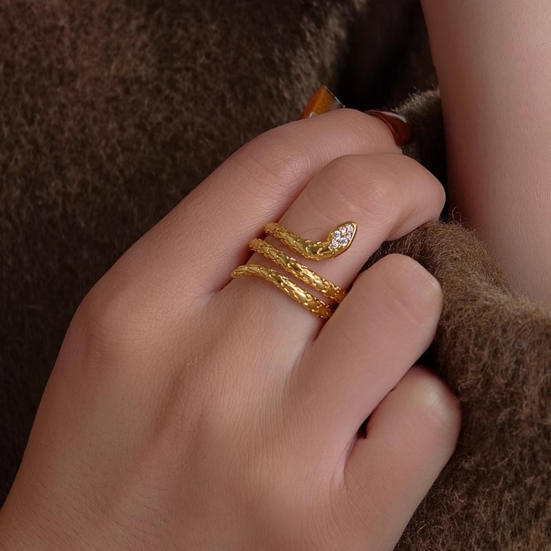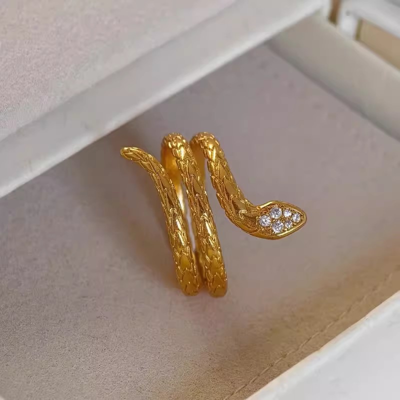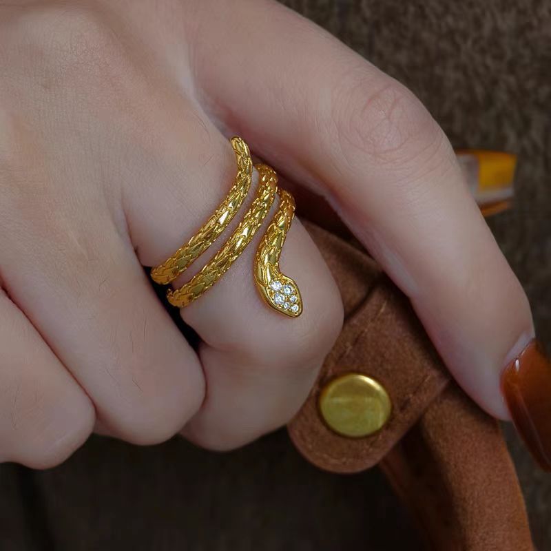 Gold Diamond Snake Ring Women's Personalized Fashion Year of the Snake Zodiac Golden Snake Open Finger Ring Ancient Method Jewelry Wholesale