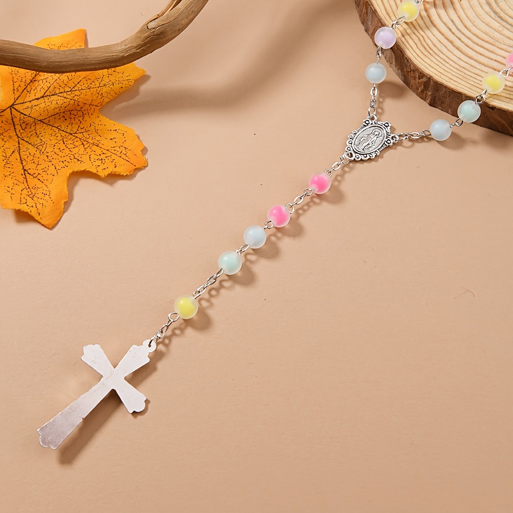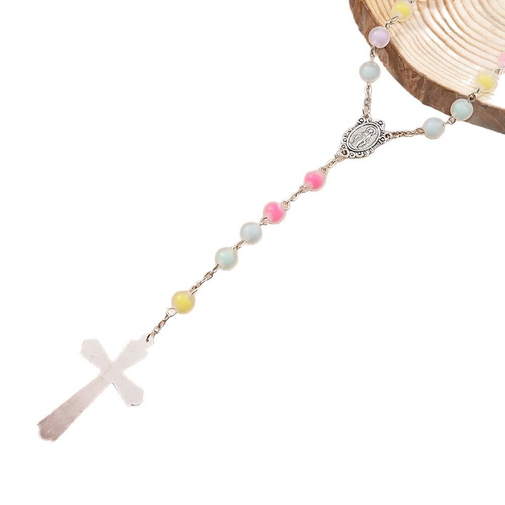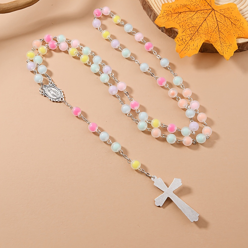 Cross-border Hot Sale 8mm Frosted Beads in Beads Cross Necklace Prayer Baptism Cross Rosary Beads