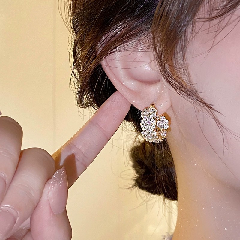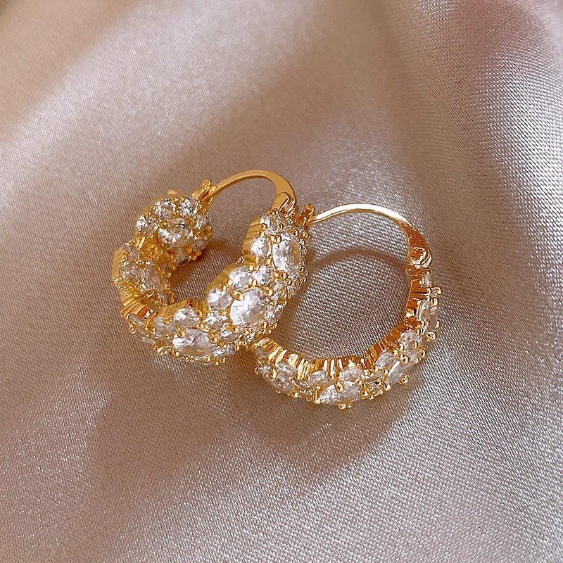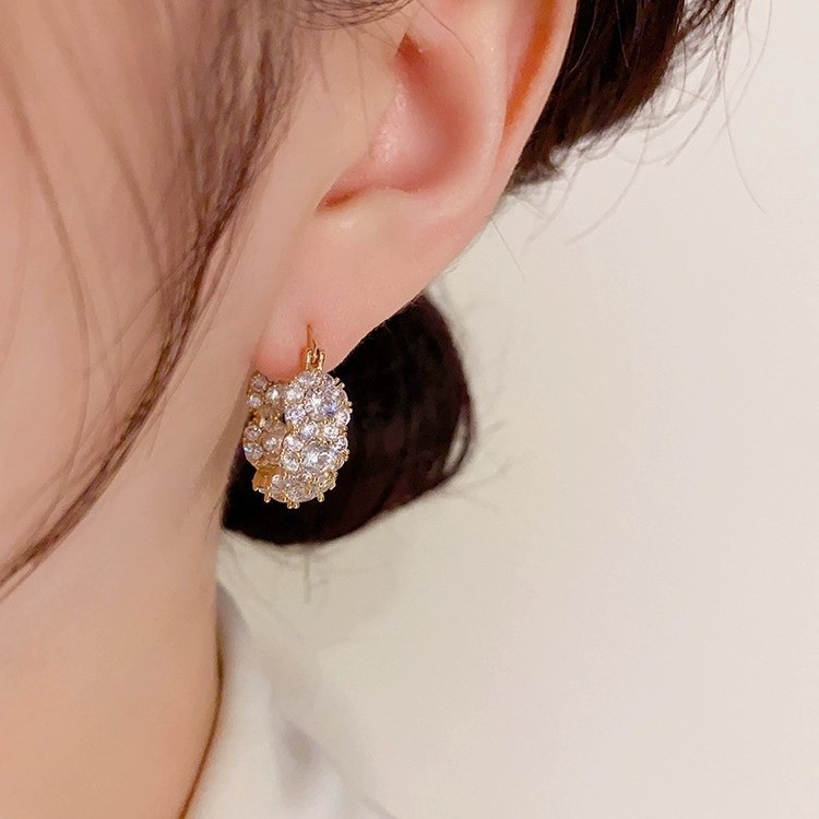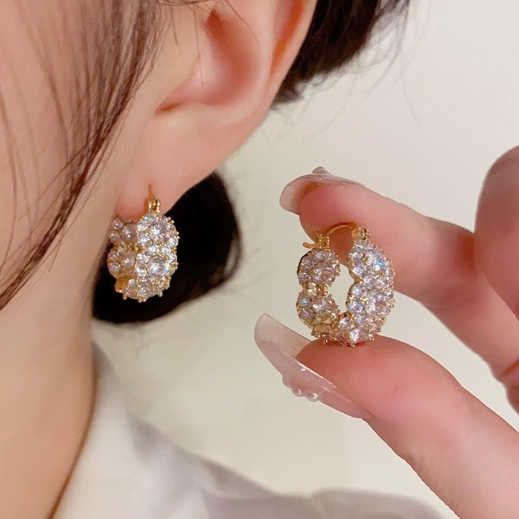 Light Luxury, Exquisite, Super Shiny, Fashionable Zircon Hoop Earrings for Women, Korean Niche Design, High-End Elegant Earrings 1310