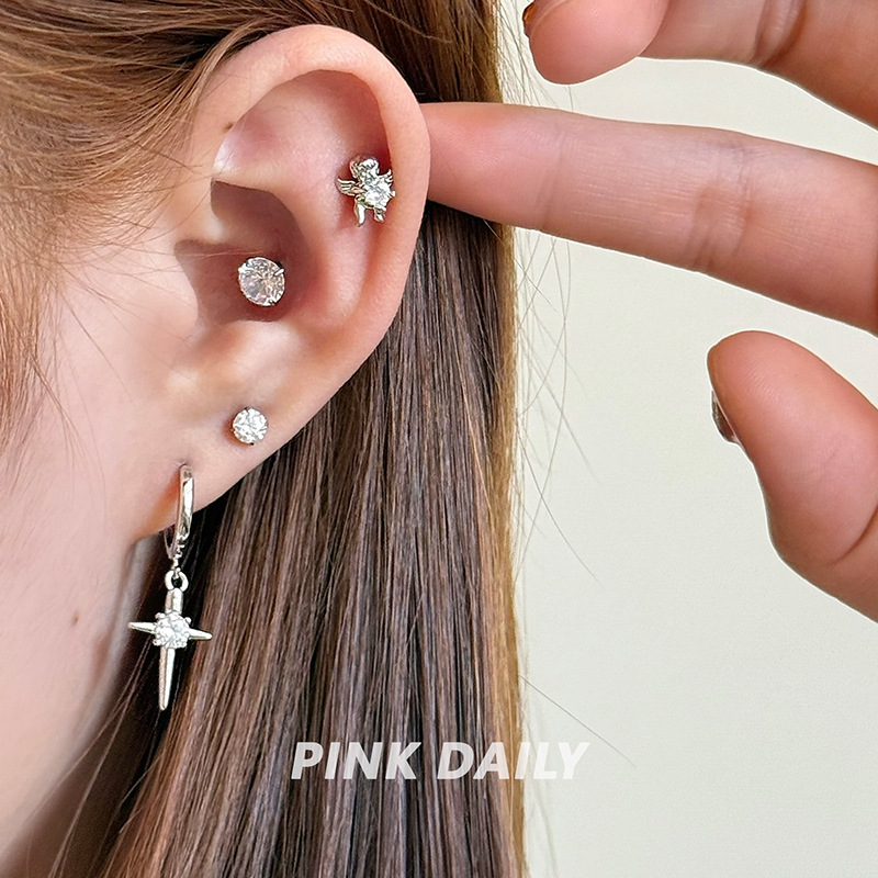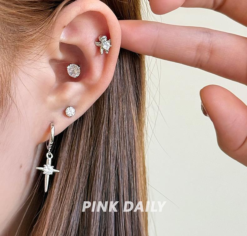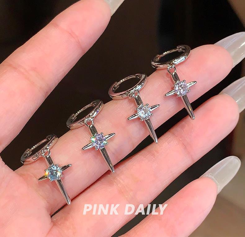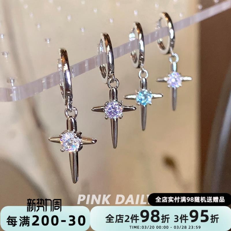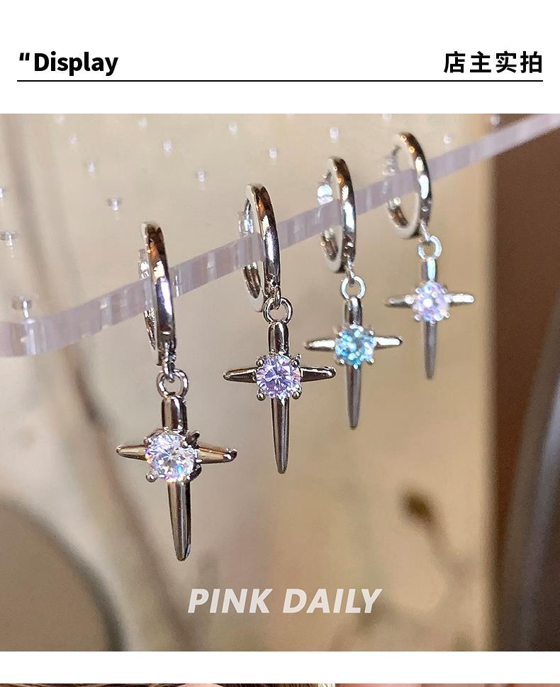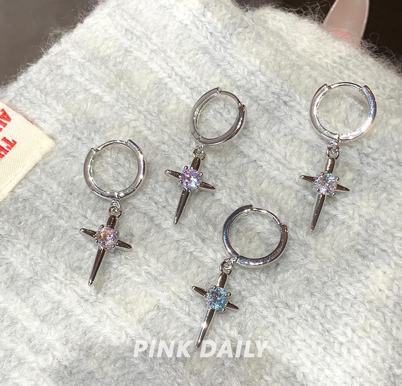 Mangxing Zircon Cross Pendant Ear Ring Women's Flash Diamond Advanced Sense Niche Ear Buckle All-match Earrings Earrings Female Elegant
