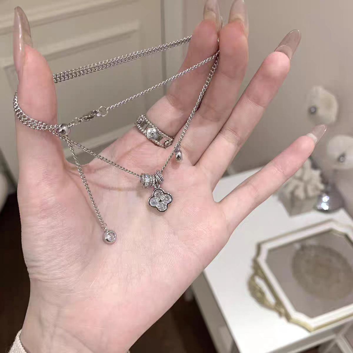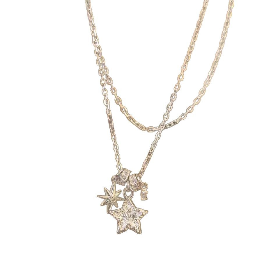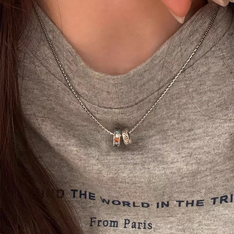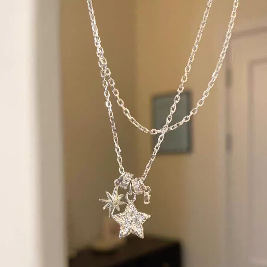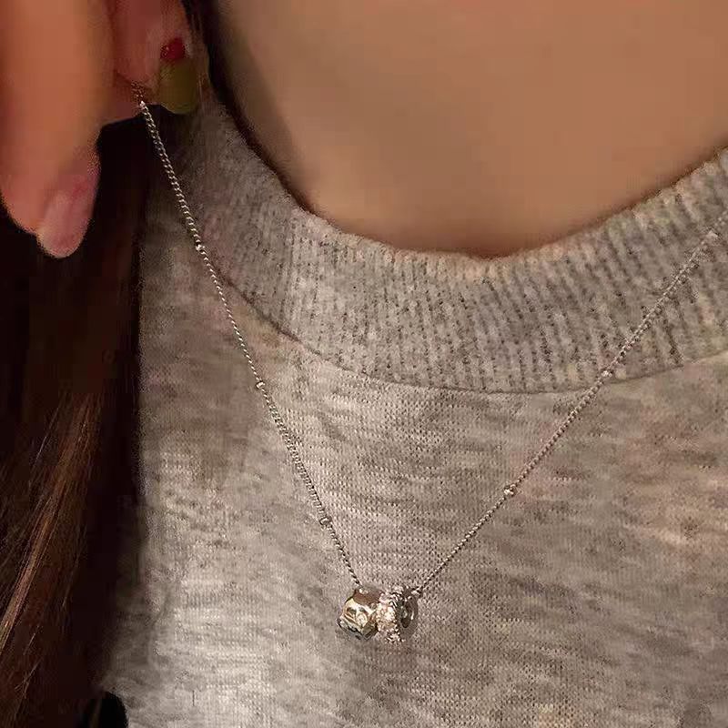 Color: Zircon double circle sparkling diamond necklace x4647