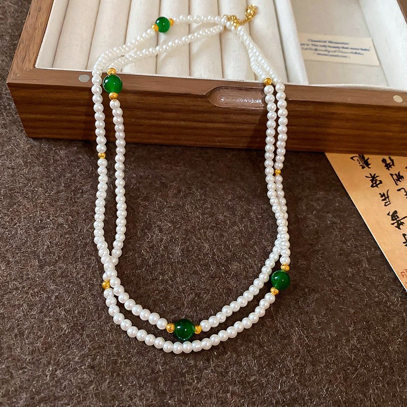 Color: 71#Necklace - gold - green - glass pearl 4mm