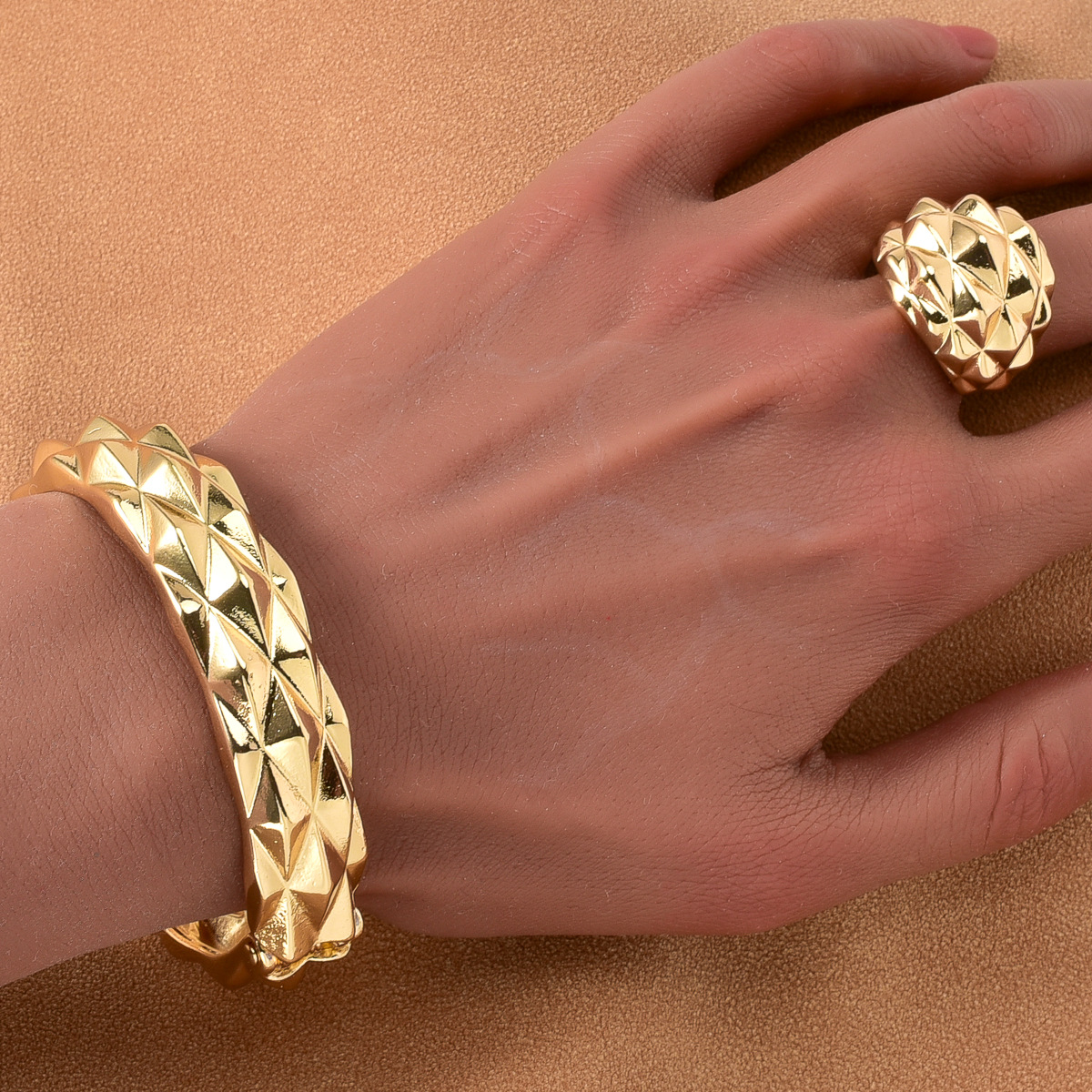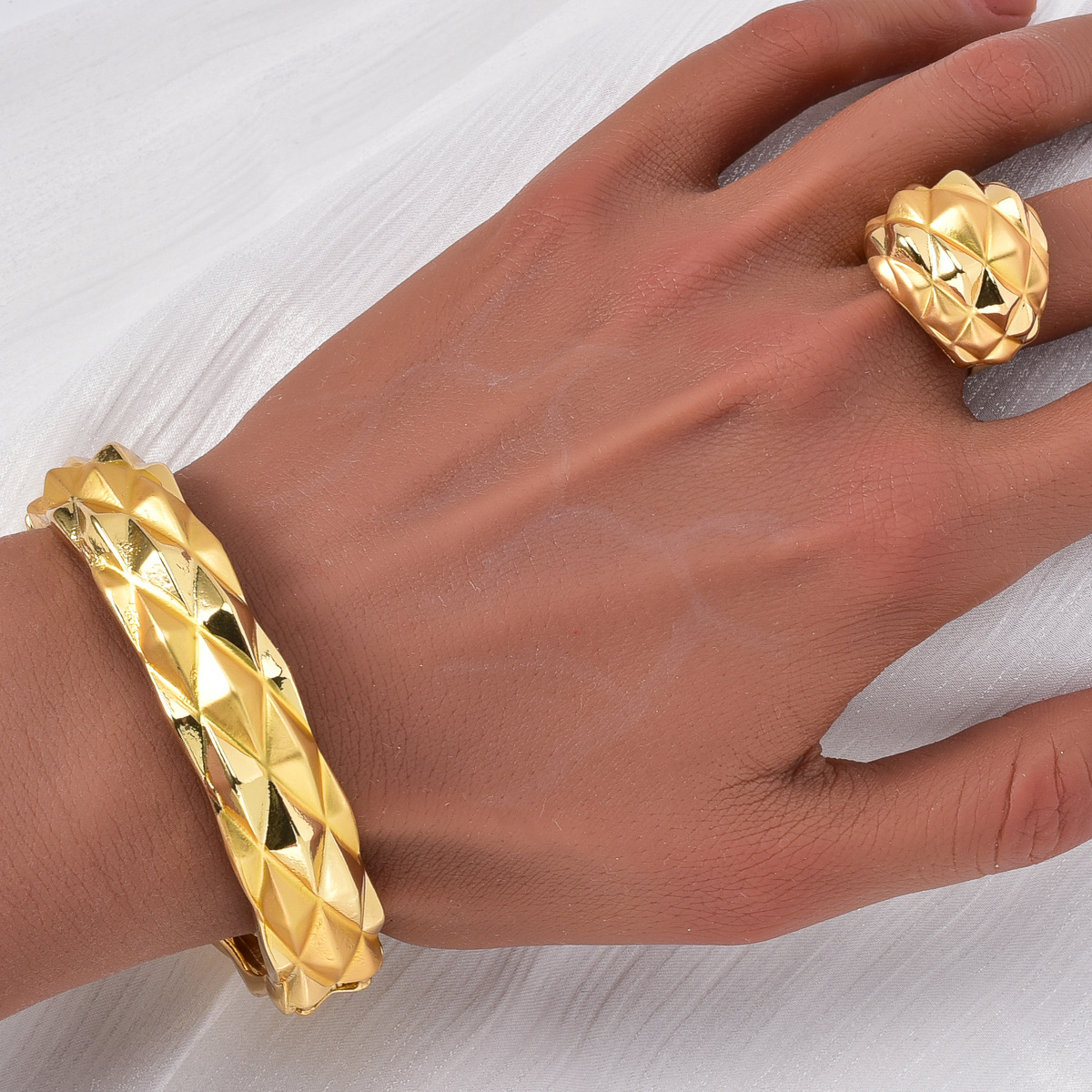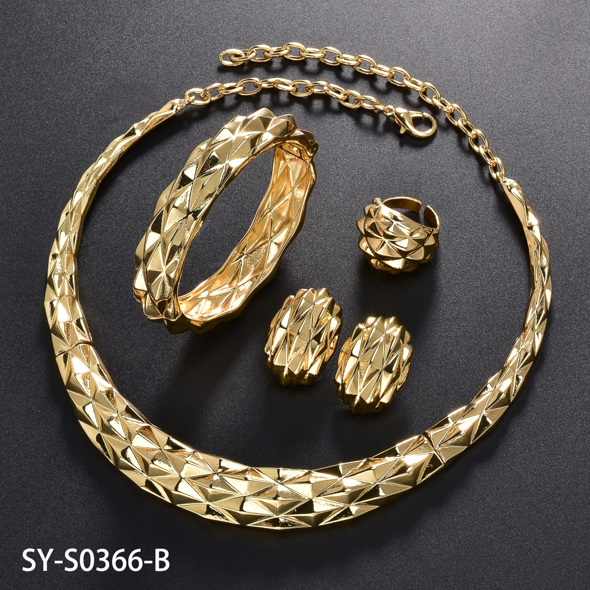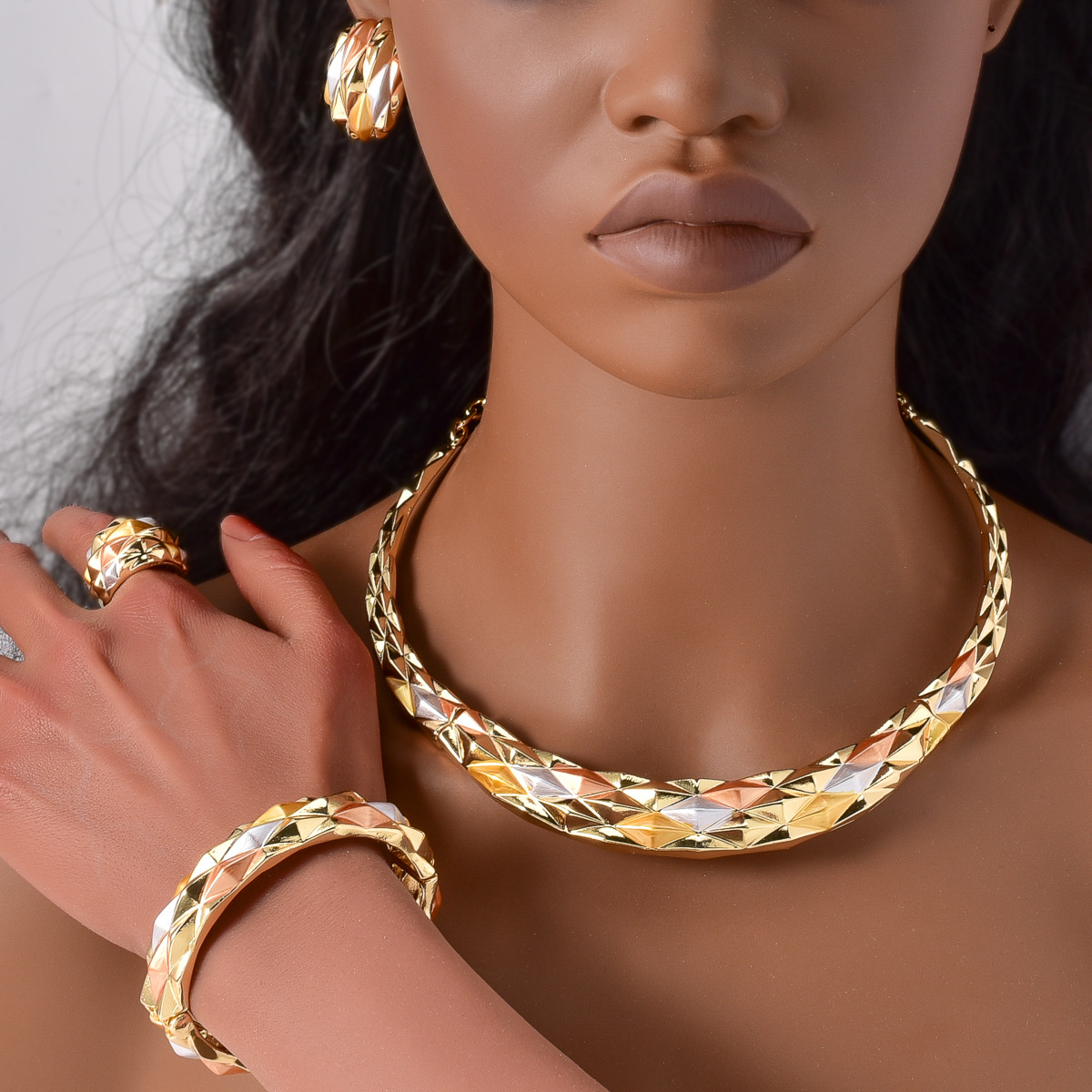 Hot Selling European and American Cross-border 18K Gold Cohesion Pique Ring Necklace Earrings Bracelet Indian Women's Banquet Jewelry Set