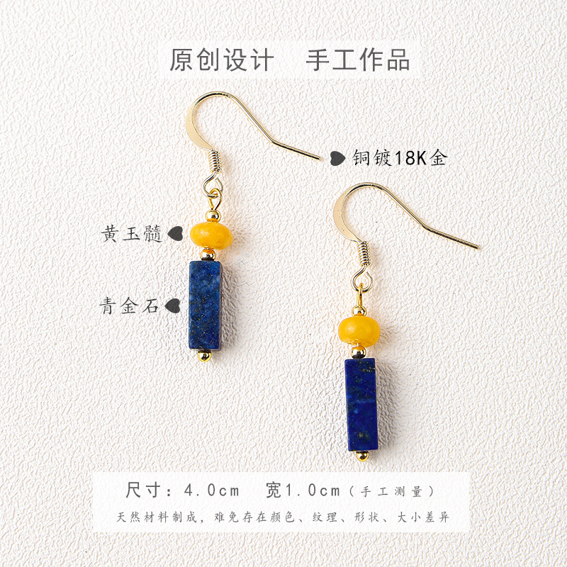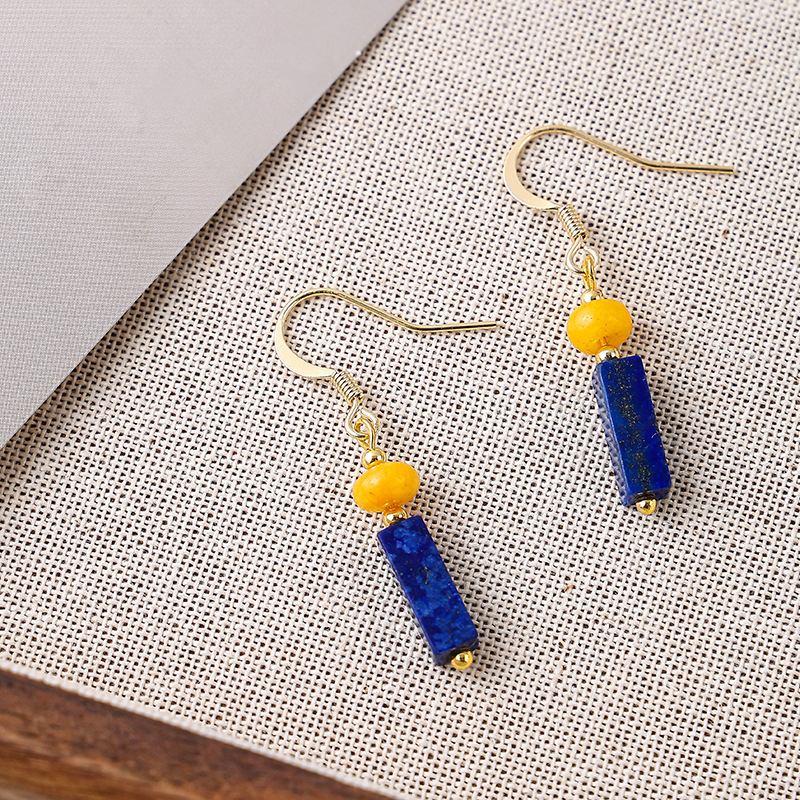 Natural Lapis Lazuli Earrings, Simple Deep Blue Handmade Earrings, Retro Chinese Style Earrings, Wholesale by Manufacturer, National Style