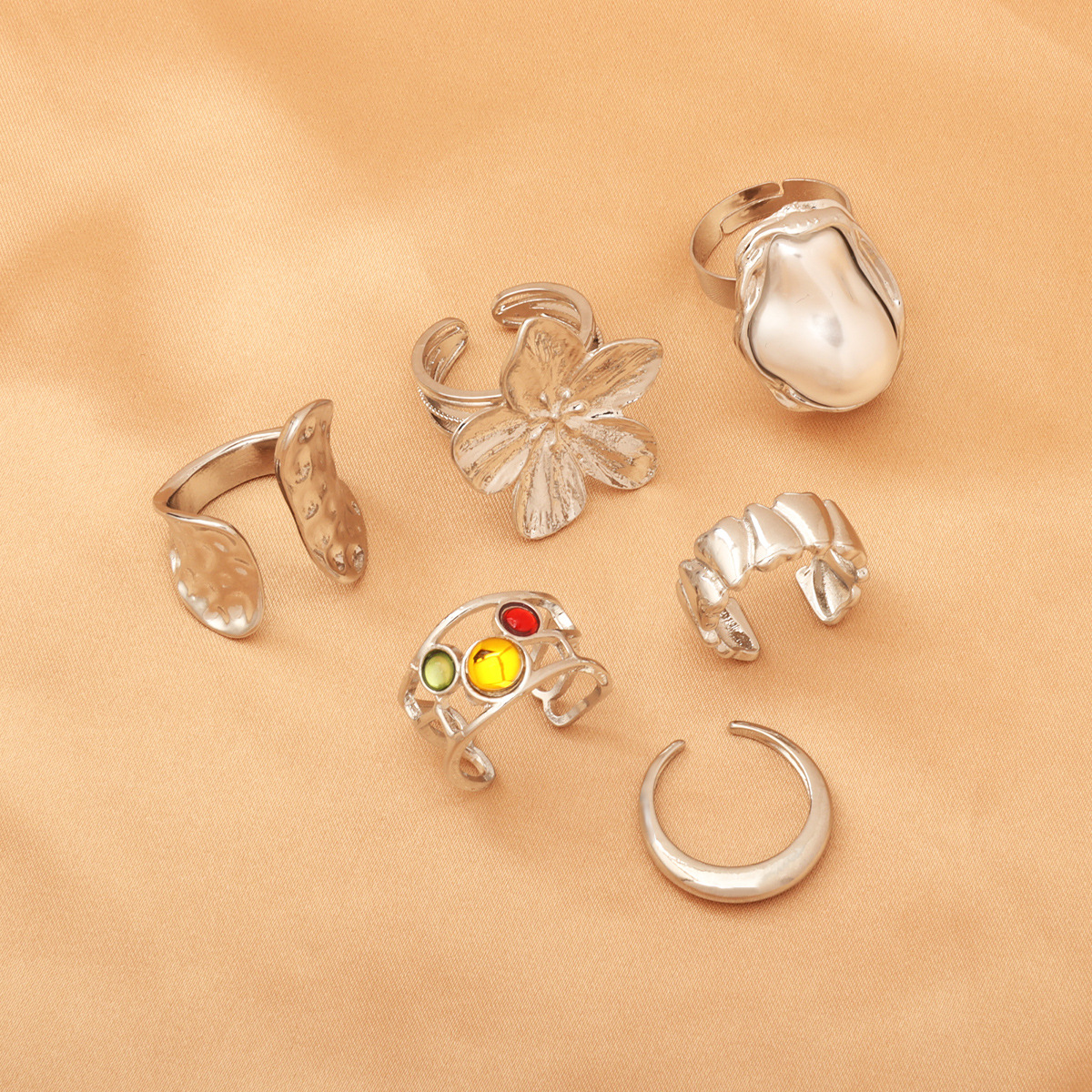 Amazon Cross-Border Niche French Ring Plated Light Luxury High-End Natural Stone Open Ring Women's Hand Jewelry Wholesale
